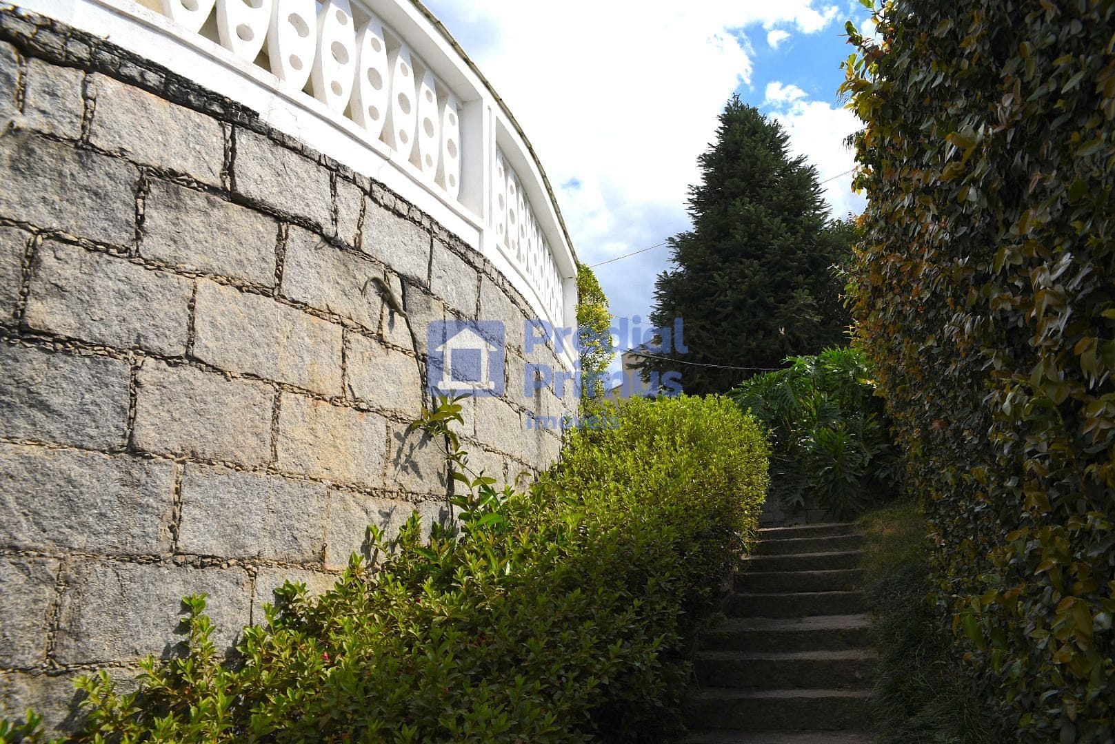 Terreno amplo com jardins bem cuidados