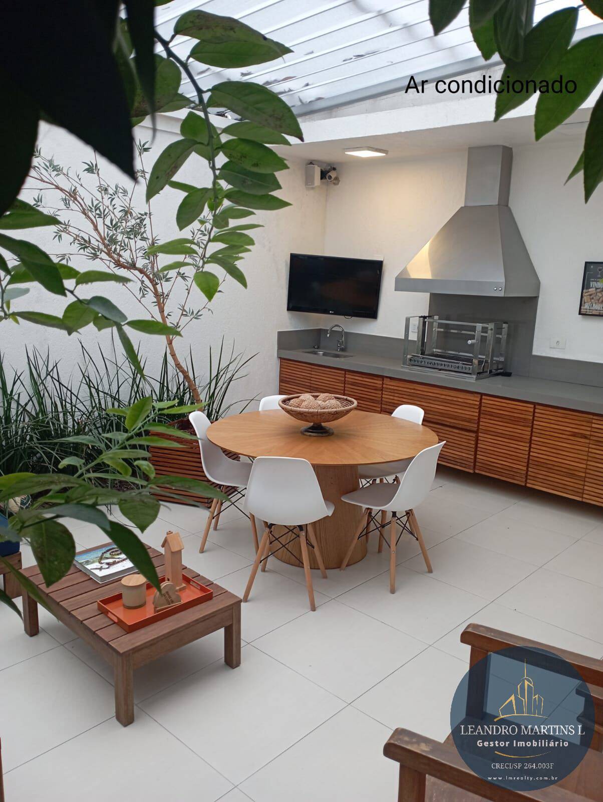O imóvel conta com 3 dormitórios, sendo 1 suíte com closet, todos climatizados com ar-condicionado, além de um escritório perfeito para home office. A área social é um destaque à parte: sala de estar integrada à área gourmet, equipada com churrasqueira, ar-condicionado split e cobertura retrátil — um espaço ideal para reunir a família e receber amigos.