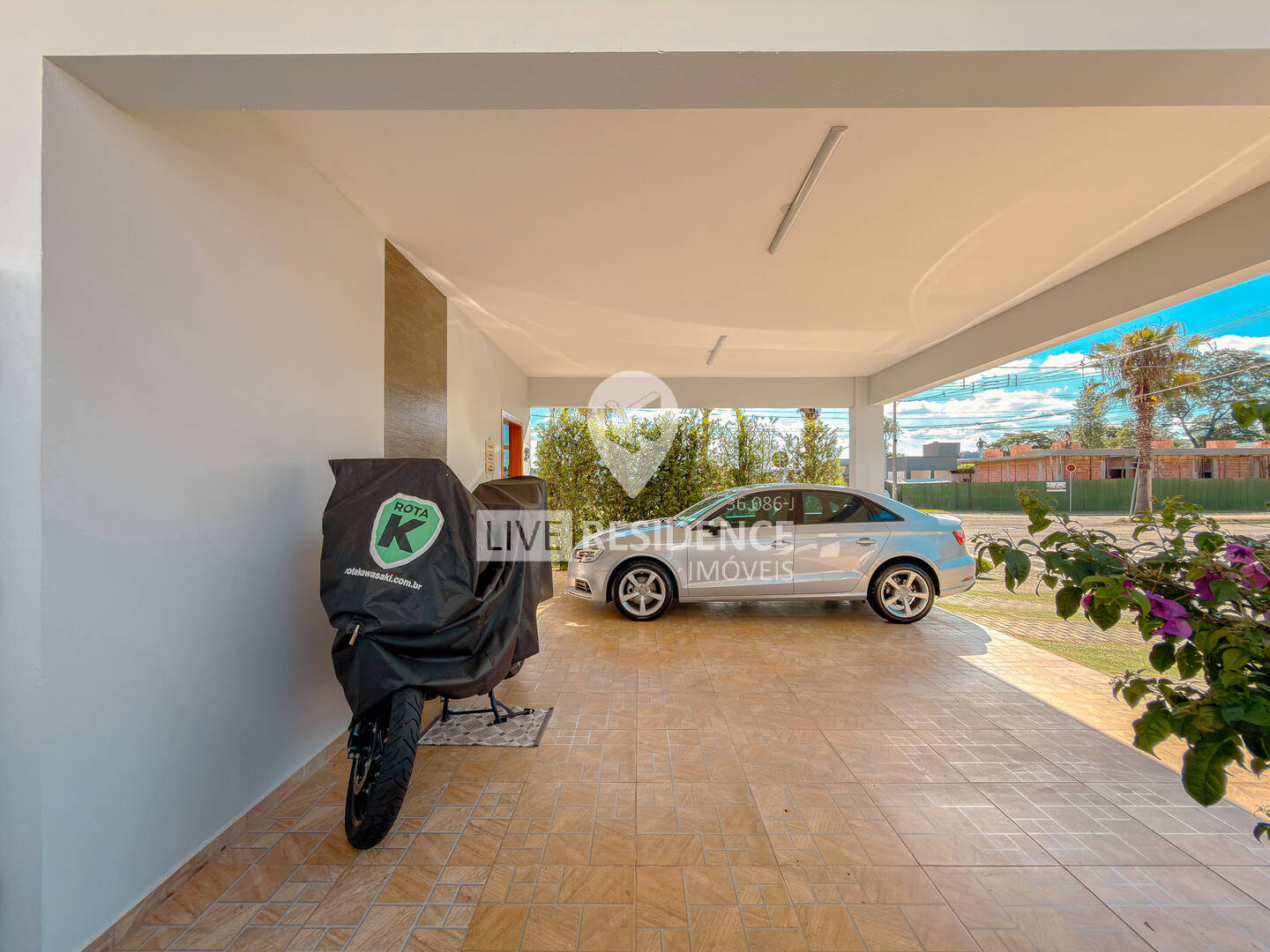 Topografia totalmente plana, jardim encantador e garagem para 4 carros (2 cobertos).