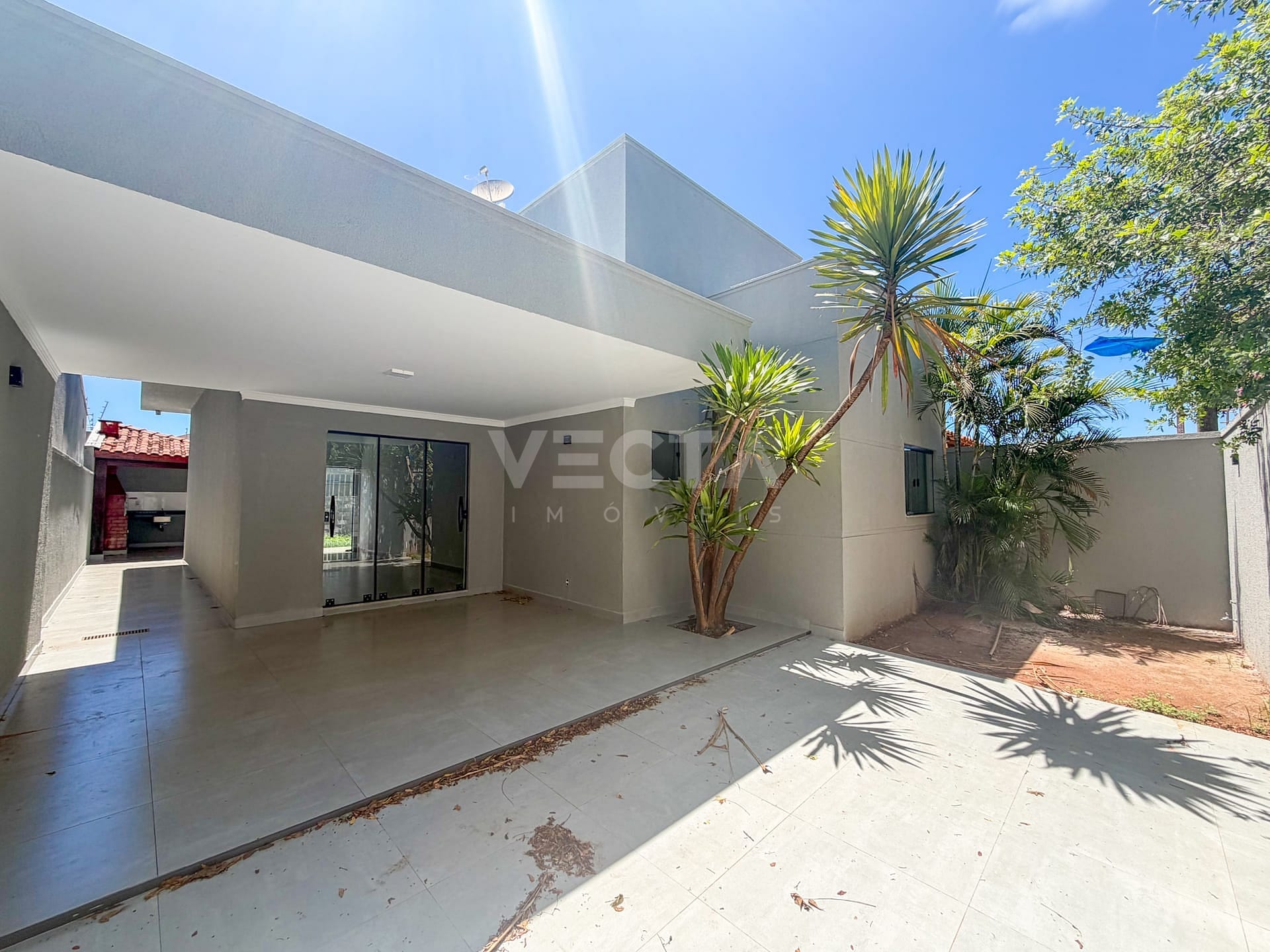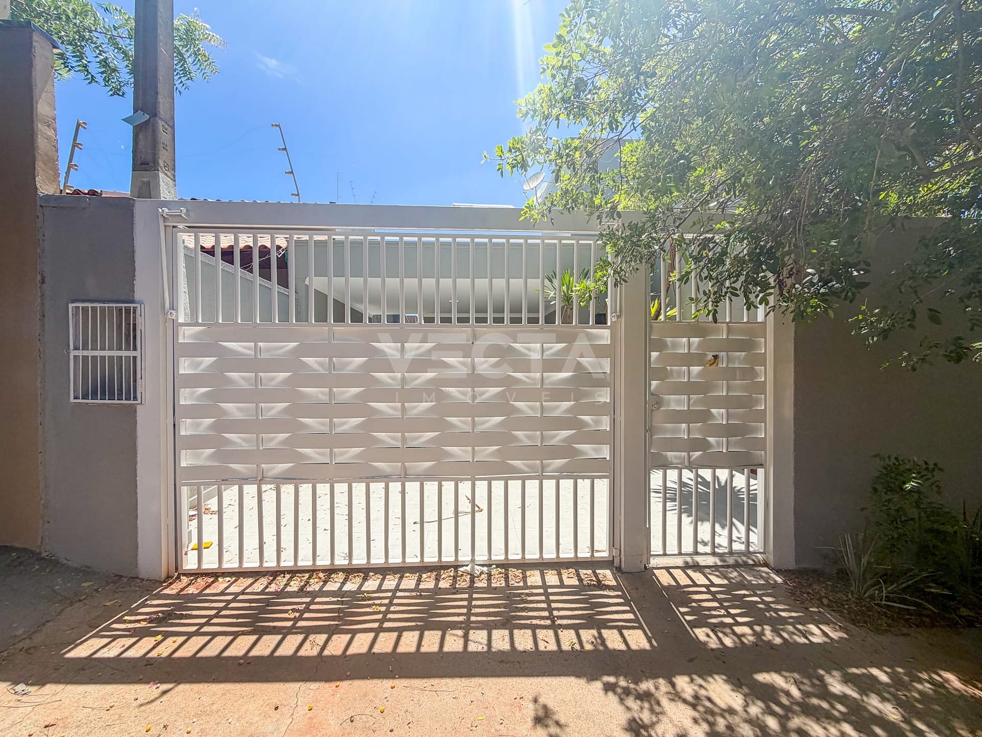 O imóvel está todo reformado, com piso em porcelanato e acabamento alinhado ao uso residencial. Na suíte, a área de luz contribui para ventilação e iluminação natural. A parte externa conta com área coberta com churrasqueira, criando um espaço de apoio para convivência. Segurança com cerca elétrica e portão eletrônico.