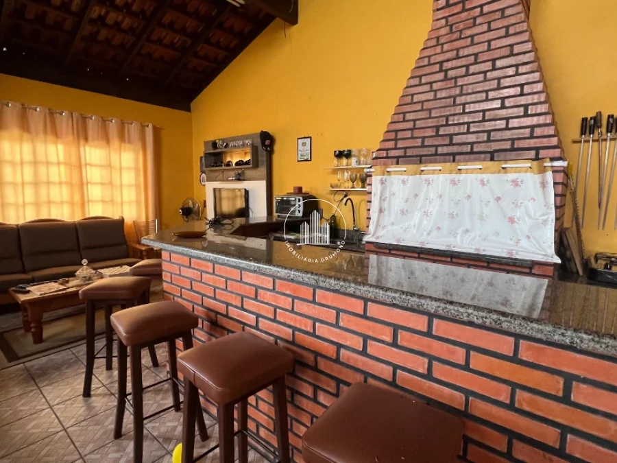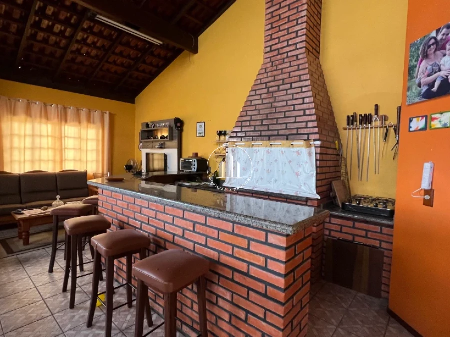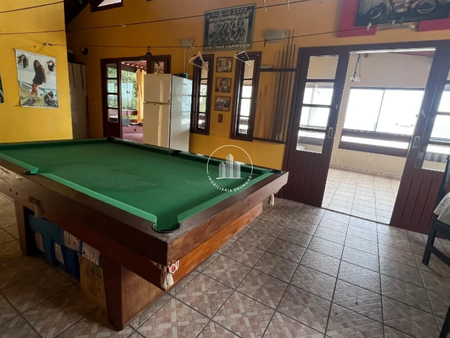 Salão de festas com churrasqueira e sala de jogos no andar superior oferecendo conforto e espaço adequado para sua família desfrutar.
