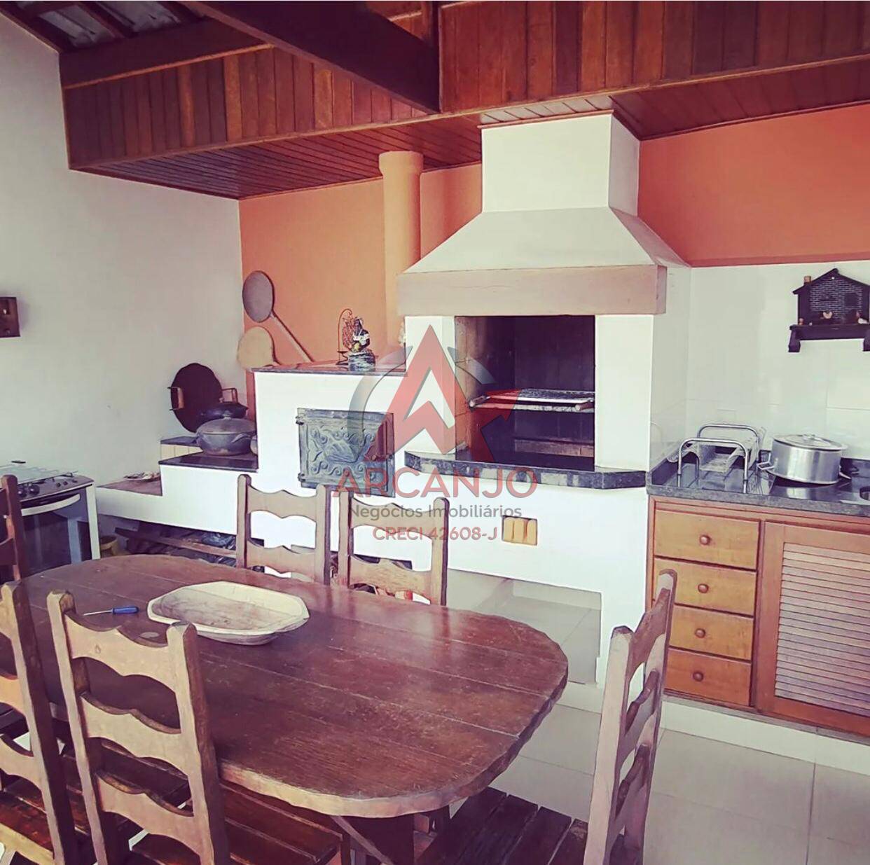 Possui 01 banheiro externo conectado a área de serviço. Nos fundos da casa possui mais um quarto , que pode ser utilizado como escritório , com 2 cômodos e 1 banheiro. Área gourmet com churrasqueira, forno e fogão a lenha.