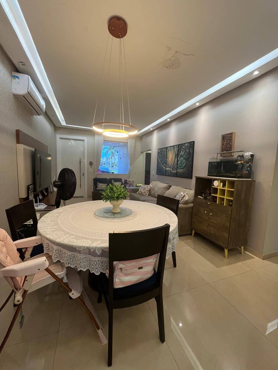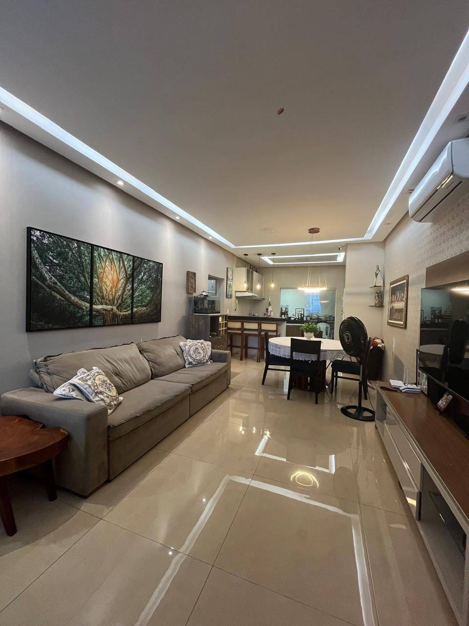 Sala integrada, sofá, TV, split