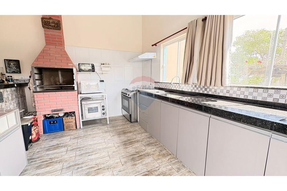 Cozinha com churrasqueira e armários embutidos