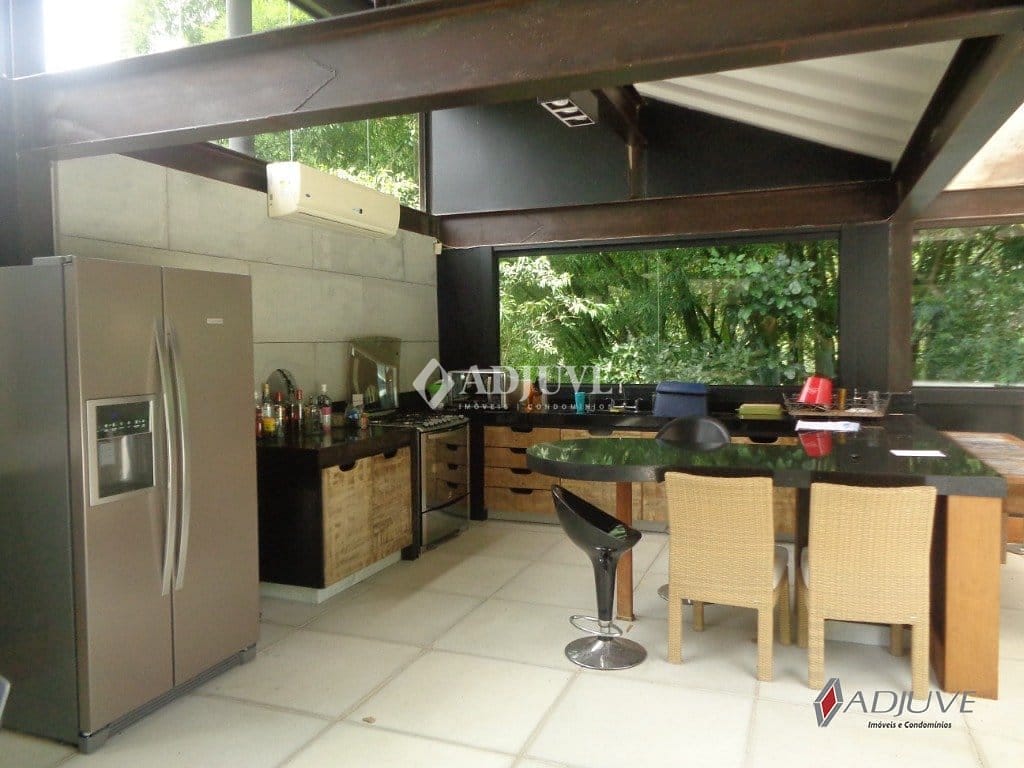 Casa linear em terreno com 3.200m², projeto de arquiteto renomado, com sala de estar envidraçada, 3 suítes (2 com closet e 1 máster com hidro), lavabo, sala de jantar, copa/cozinha modulada, área de serviço com banheiro, lavanderia, garagem coberta para 4 carros, jardim gramado, piscina, área gourmet com churrasqueira, forno de pizza e 2 suítes externas. Condomínio com portaria 24 horas.