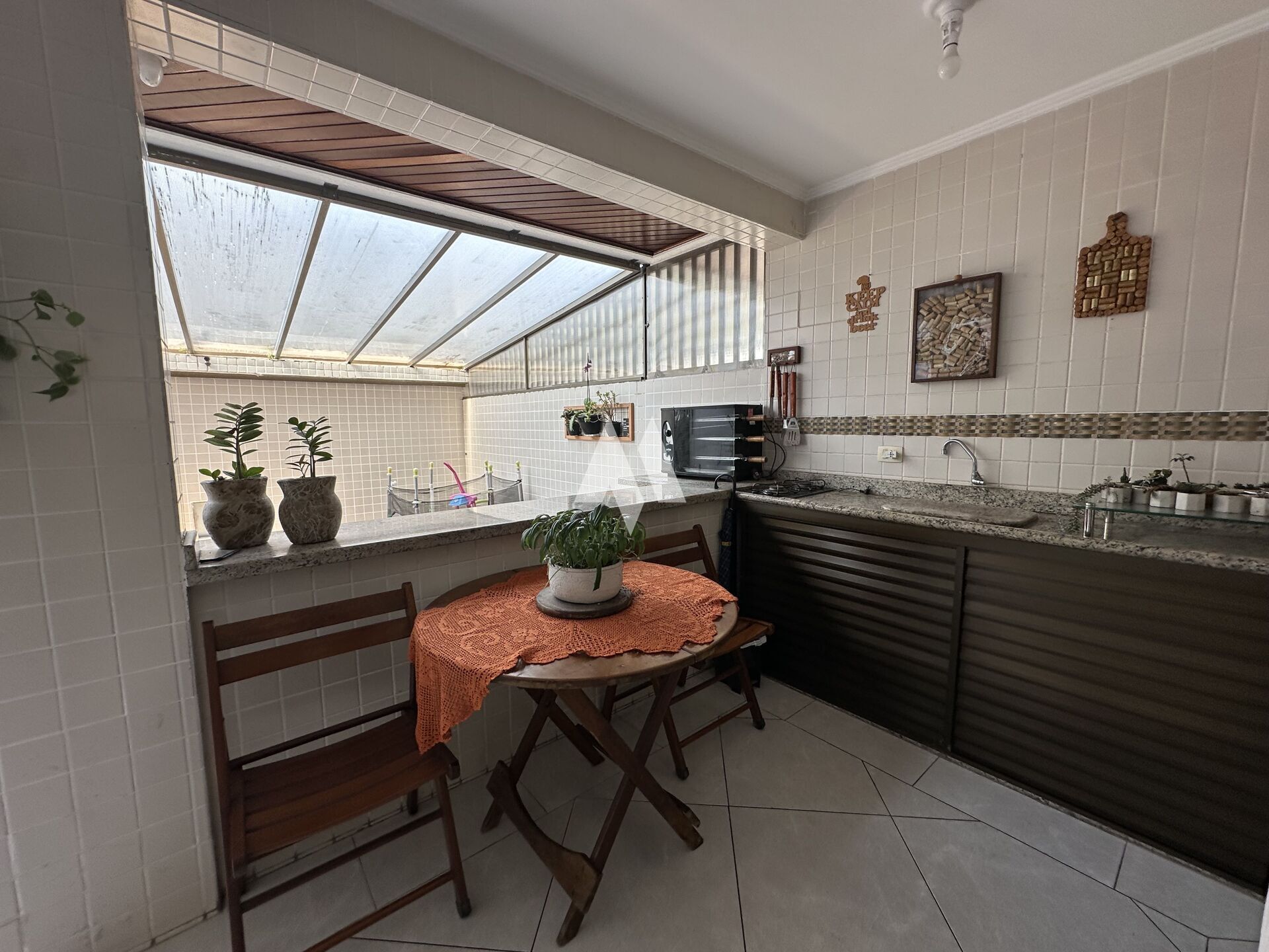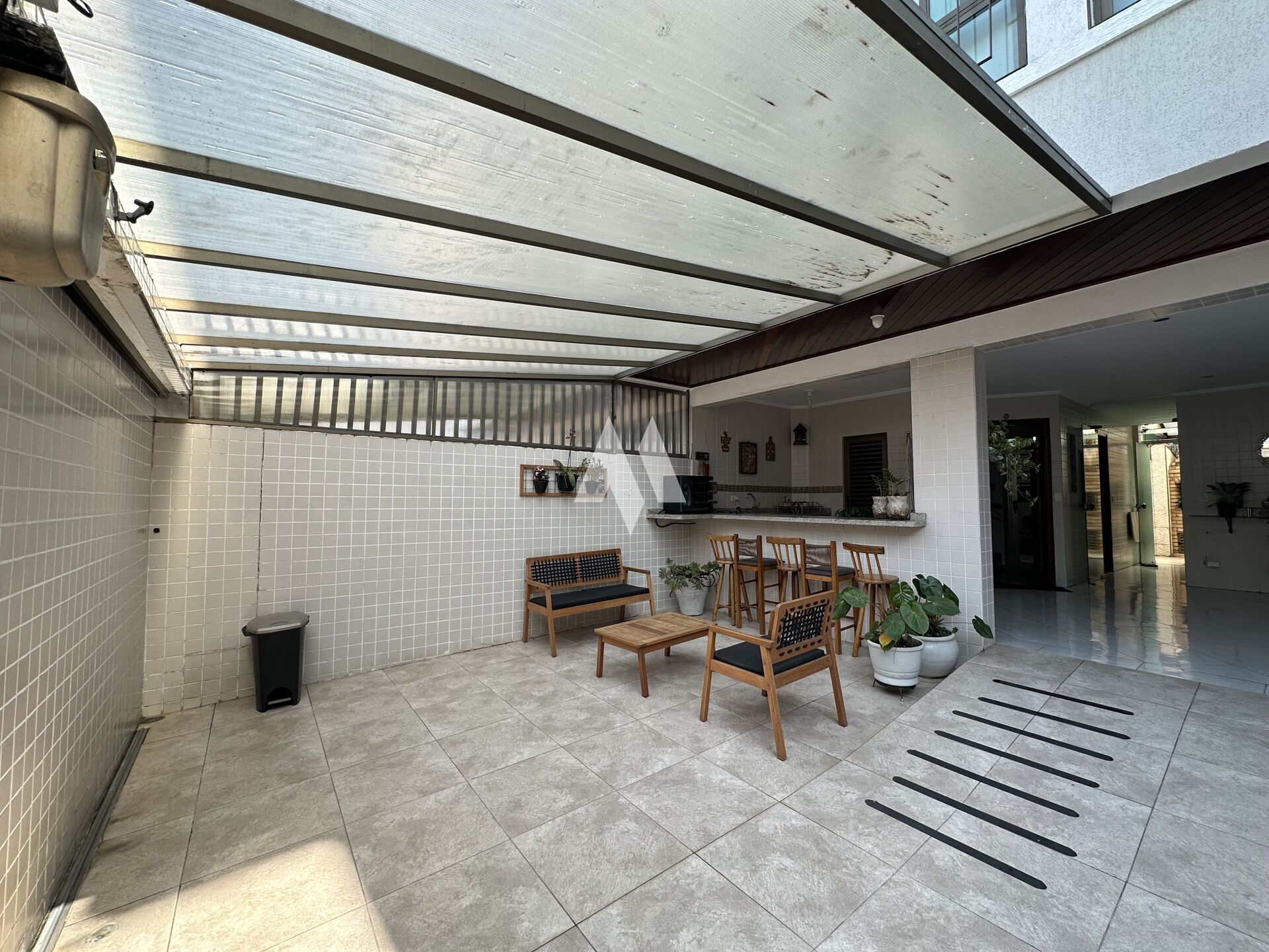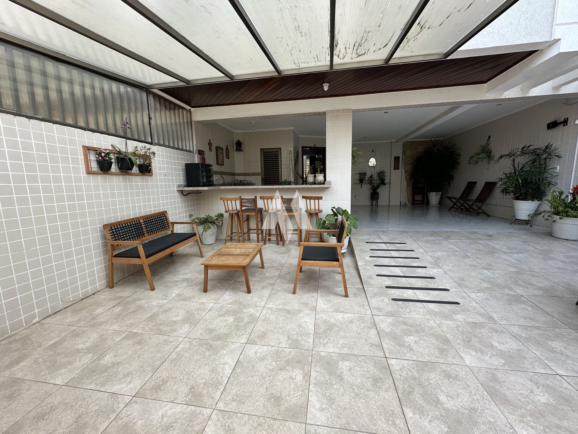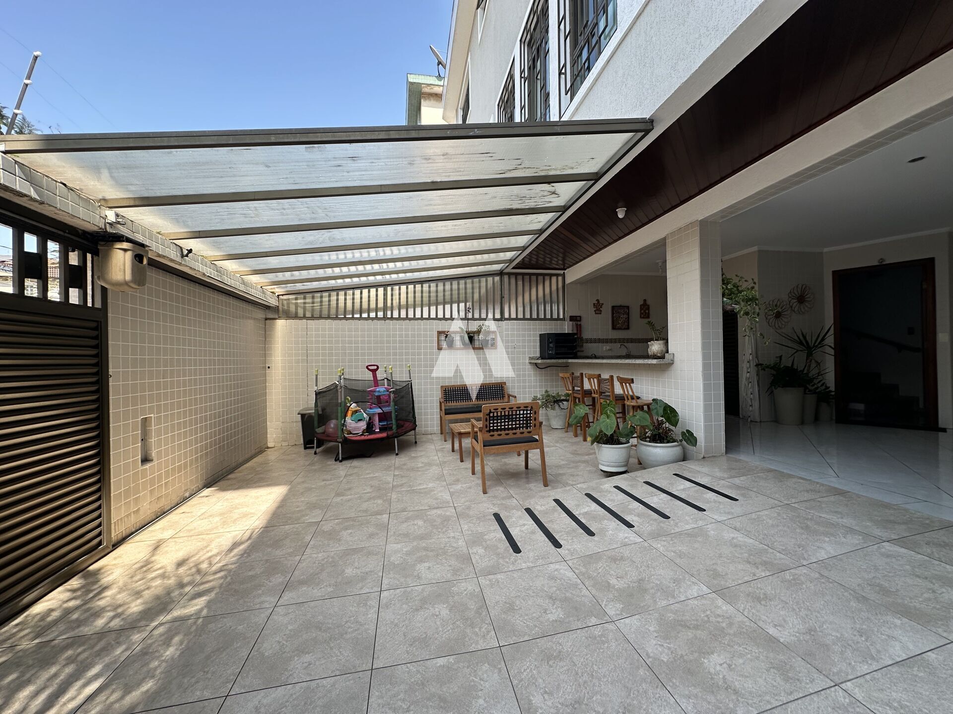Com 159 metros de área construída, o imóvel oferece no térreo três vagas de garagem, além de um espaço versátil que pode ser usado como quarto extra, escritório ou dependência. Há ainda um banheiro, espaço gourmet com churrasqueira e forno de pizza, depósito e um ambiente adicional que hoje funciona como oficina, mas pode ser adaptado ao seu estilo de vida.