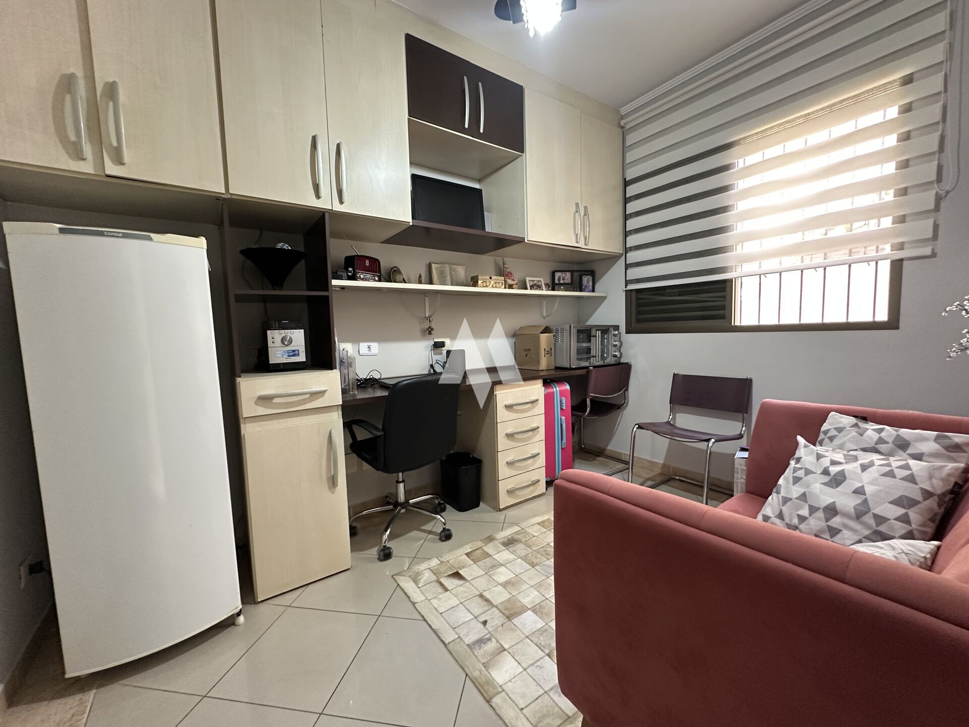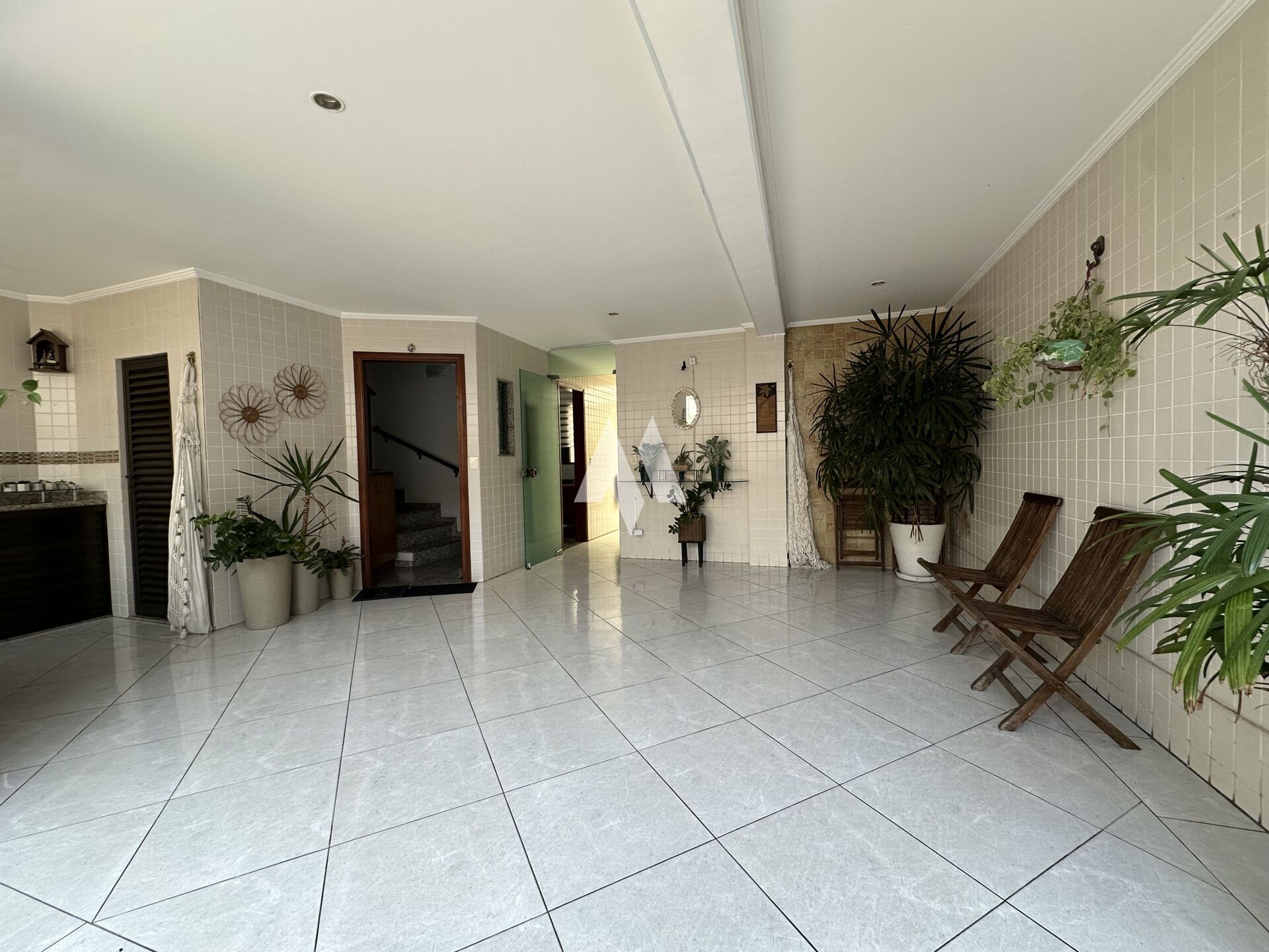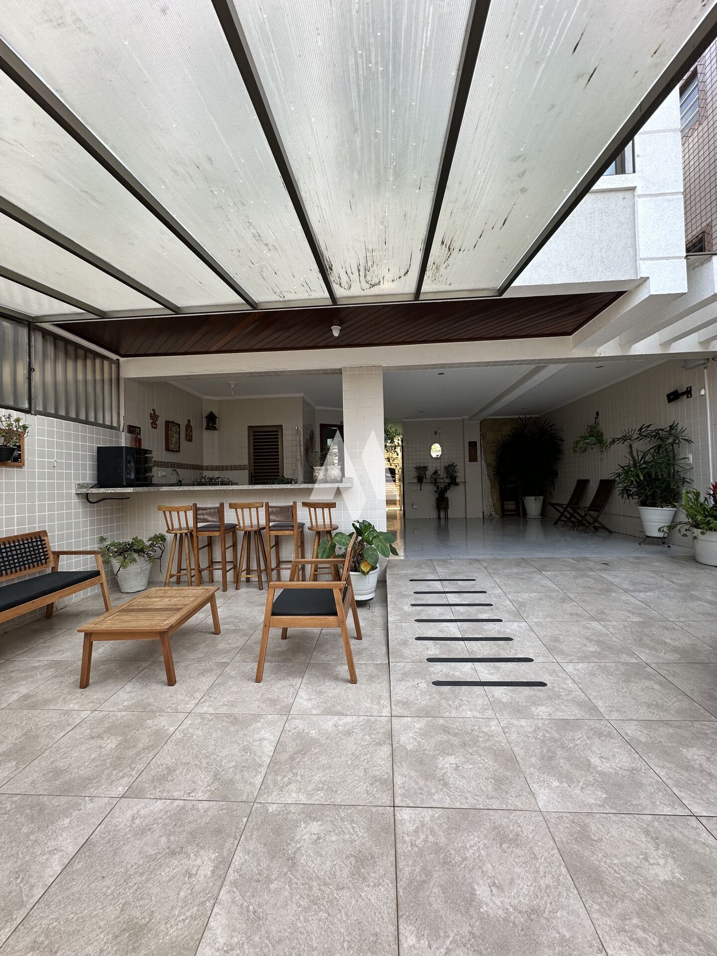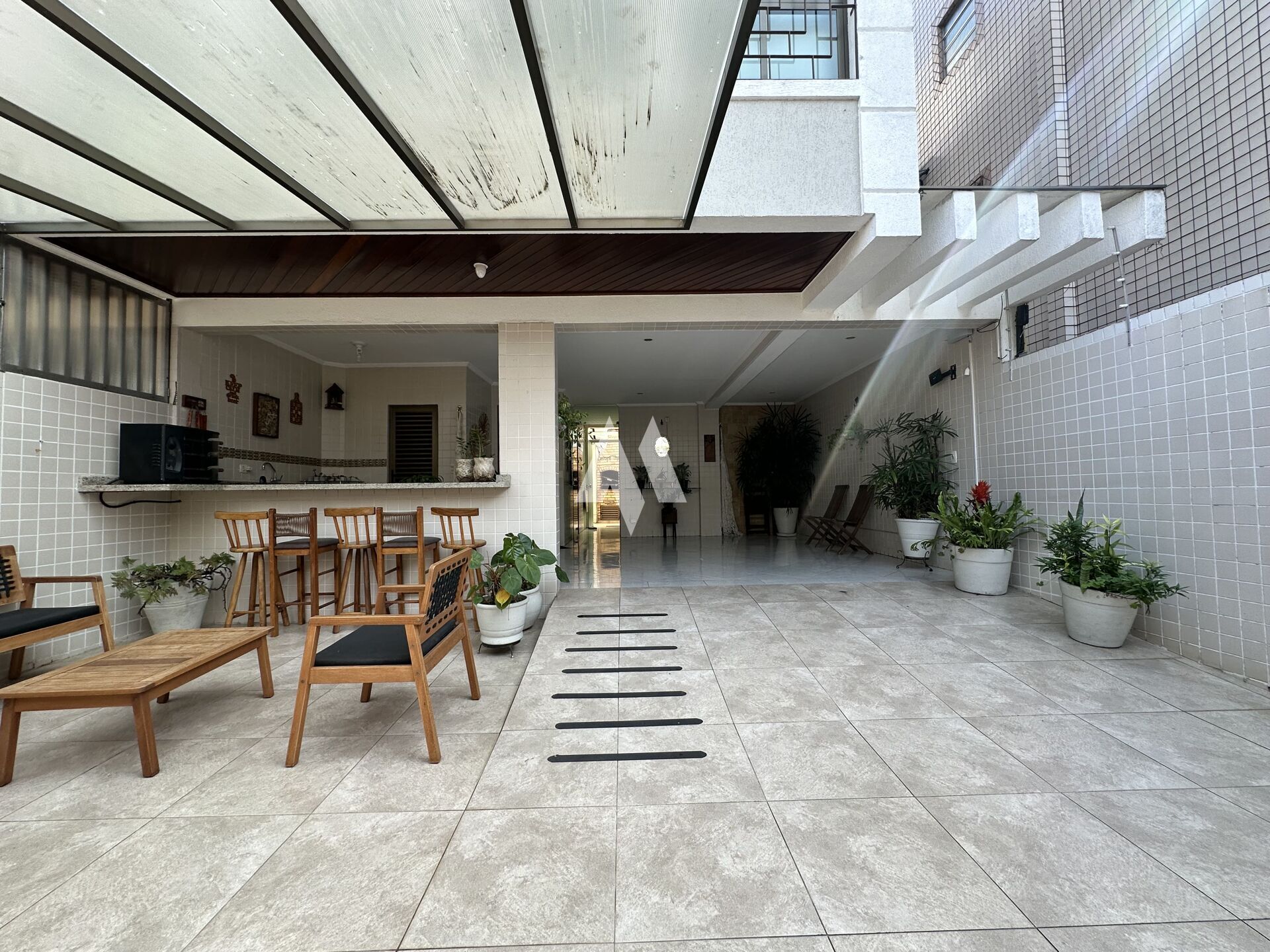 Com 159 metros de área construída, o imóvel oferece no térreo três vagas de garagem, além de um espaço versátil que pode ser usado como quarto extra, escritório ou dependência. Há ainda um banheiro, espaço gourmet com churrasqueira e forno de pizza, depósito e um ambiente adicional que hoje funciona como oficina, mas pode ser adaptado ao seu estilo de vida.