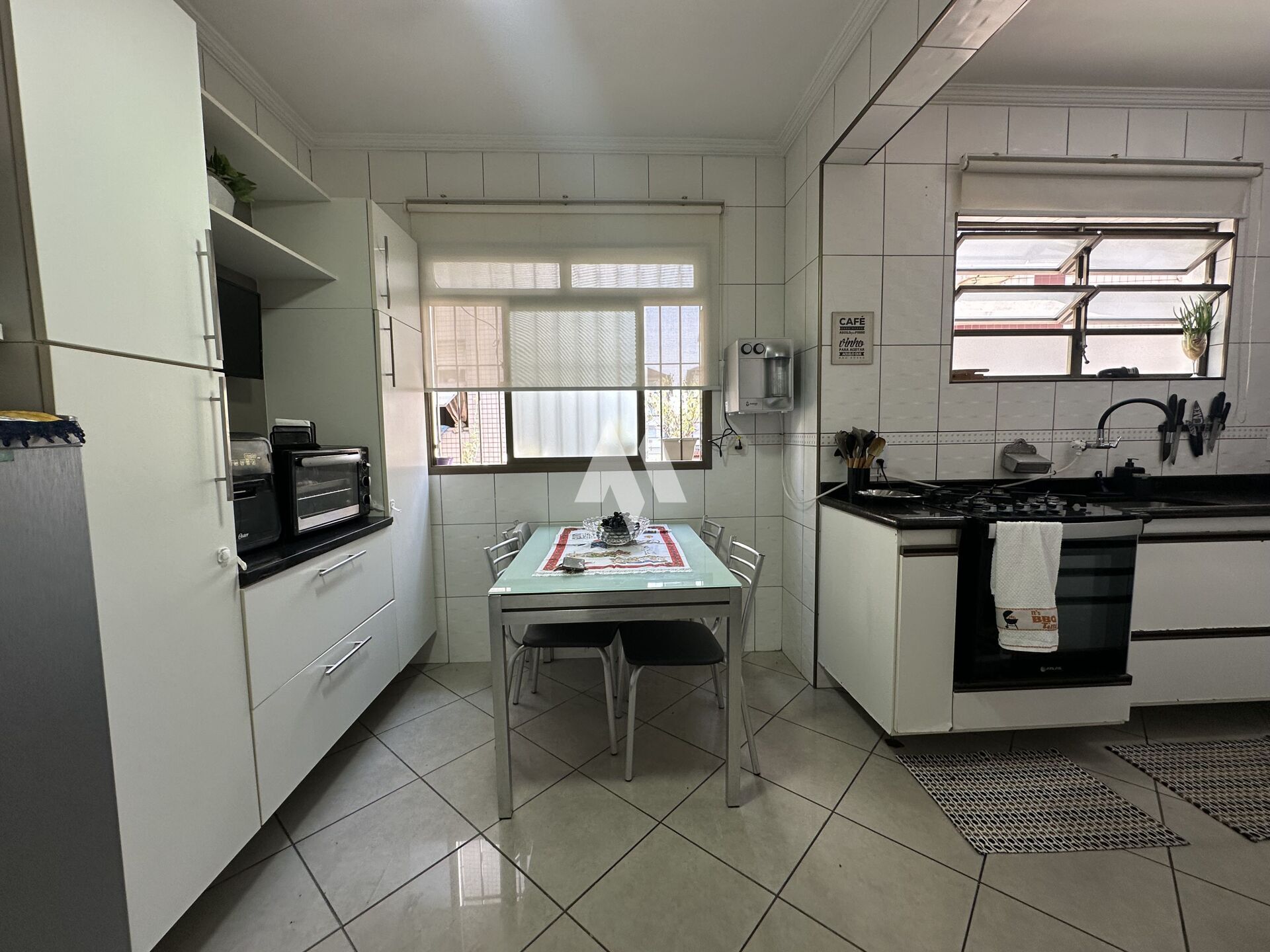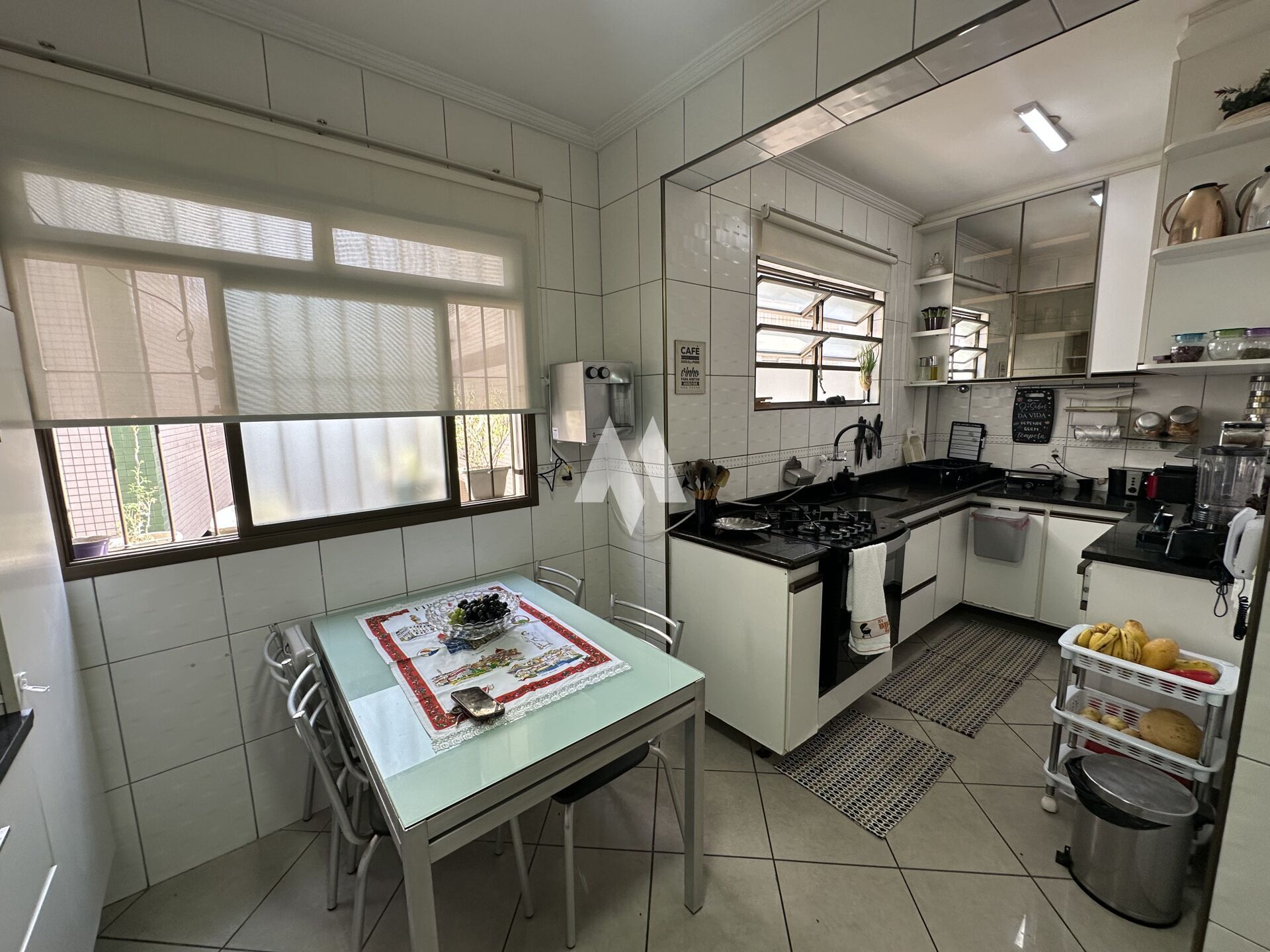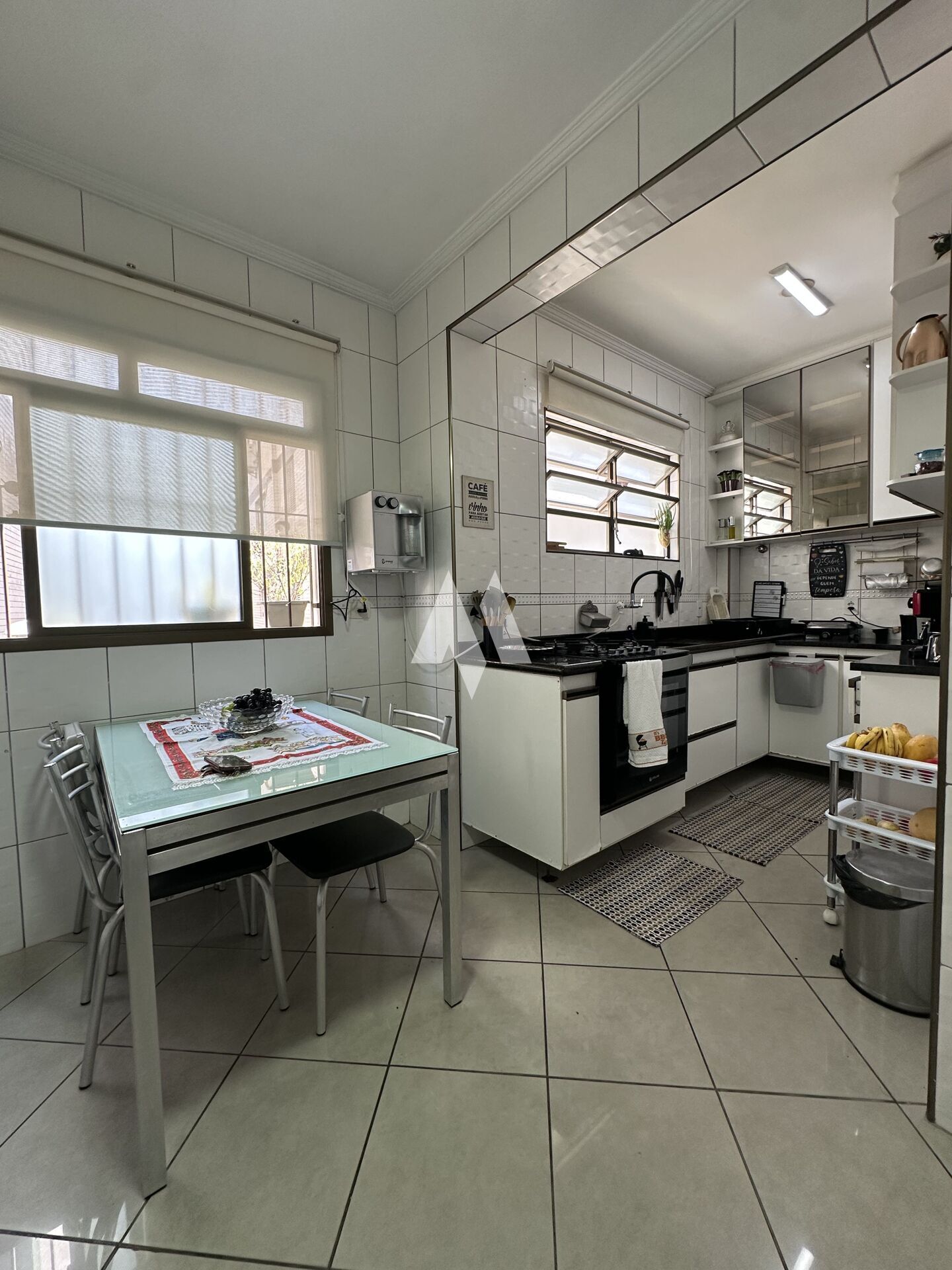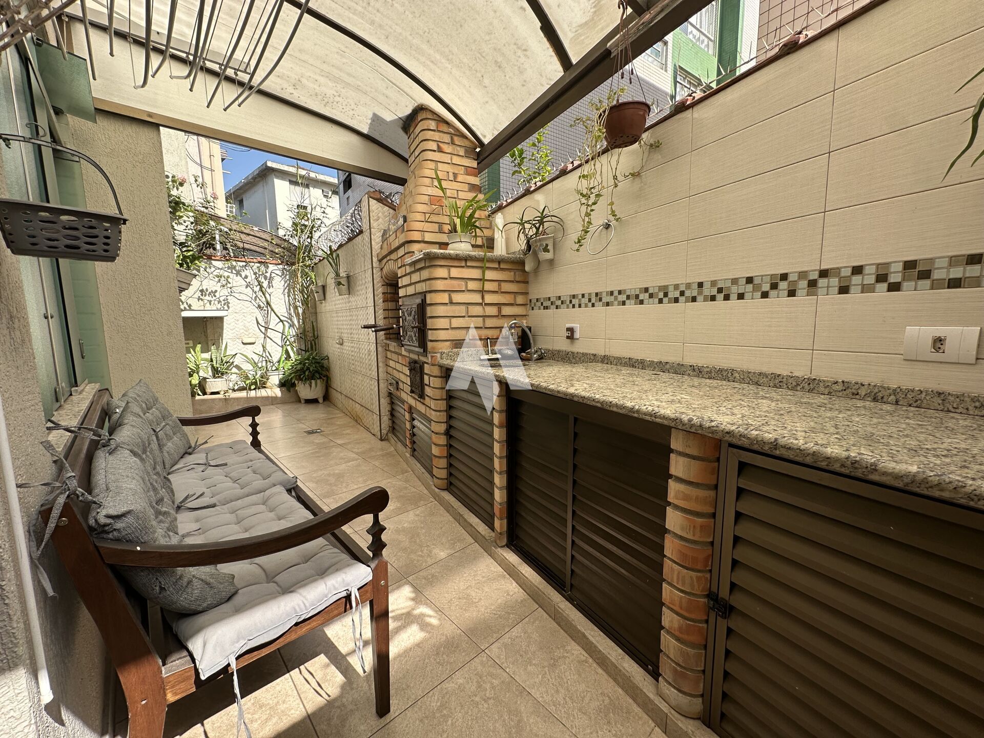 Com 159 metros de área construída, o imóvel oferece no térreo três vagas de garagem, além de um espaço versátil que pode ser usado como quarto extra, escritório ou dependência. Há ainda um banheiro, espaço gourmet com churrasqueira e forno de pizza, depósito e um ambiente adicional que hoje funciona como oficina, mas pode ser adaptado ao seu estilo de vida.