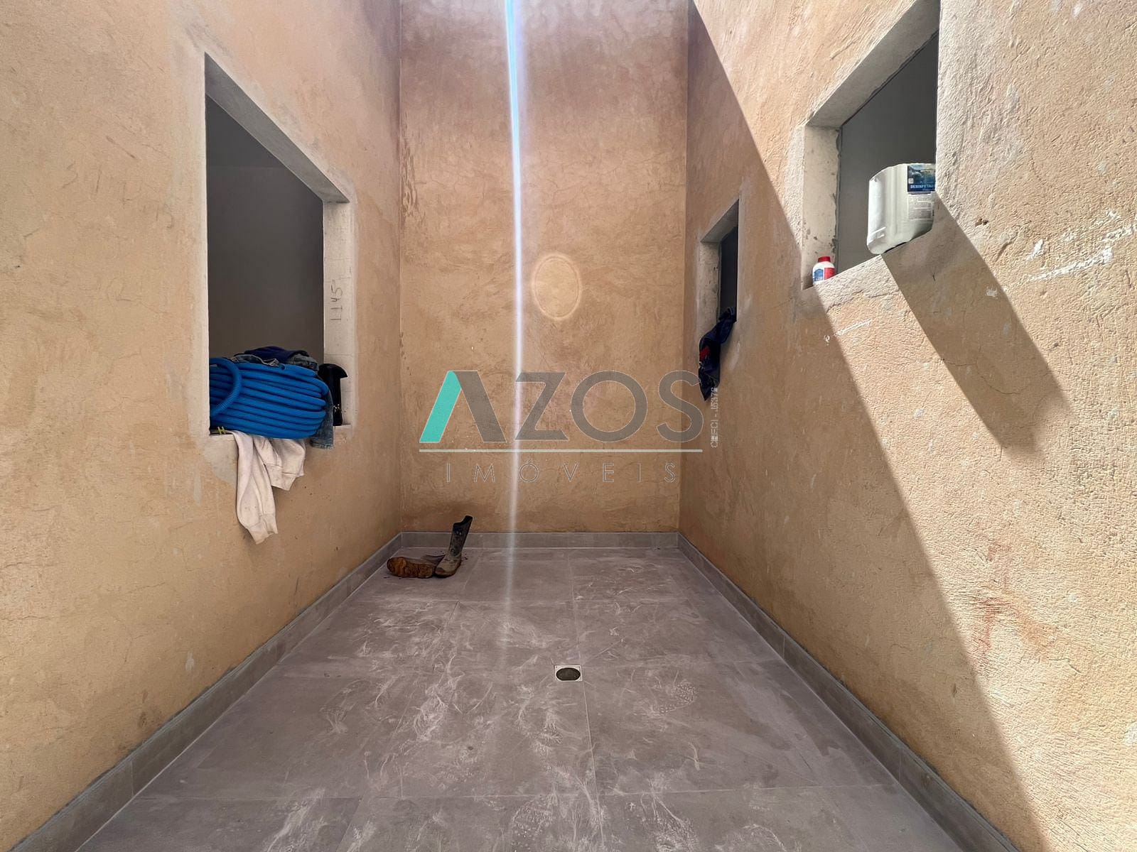 O imóvel é com TETO DE LAJE e piso PORCELANATO (partes FRIAS).