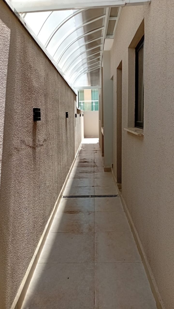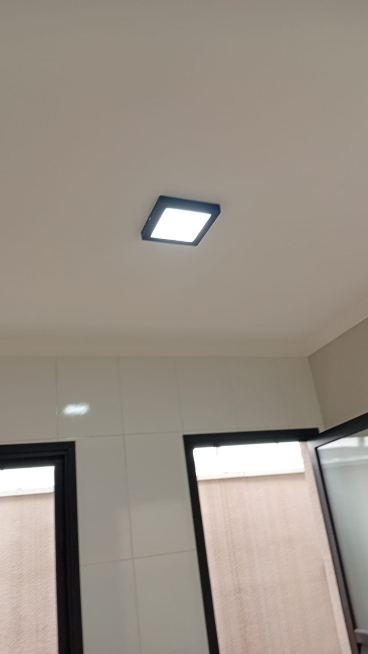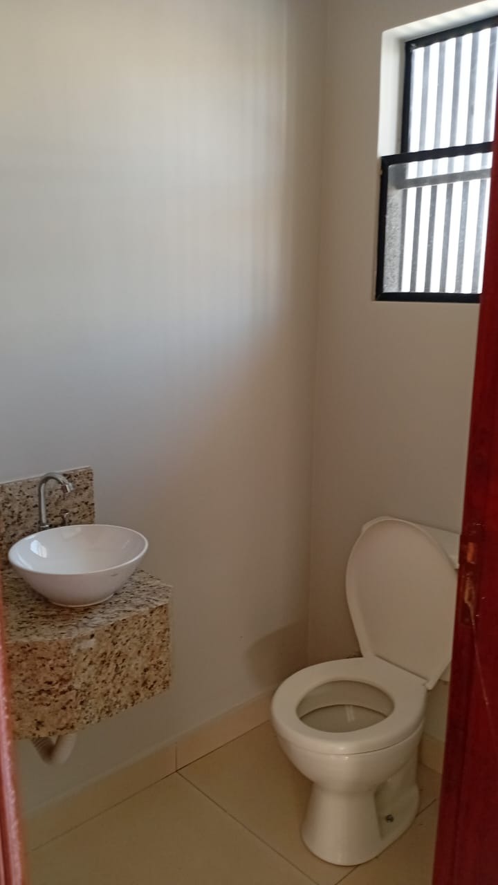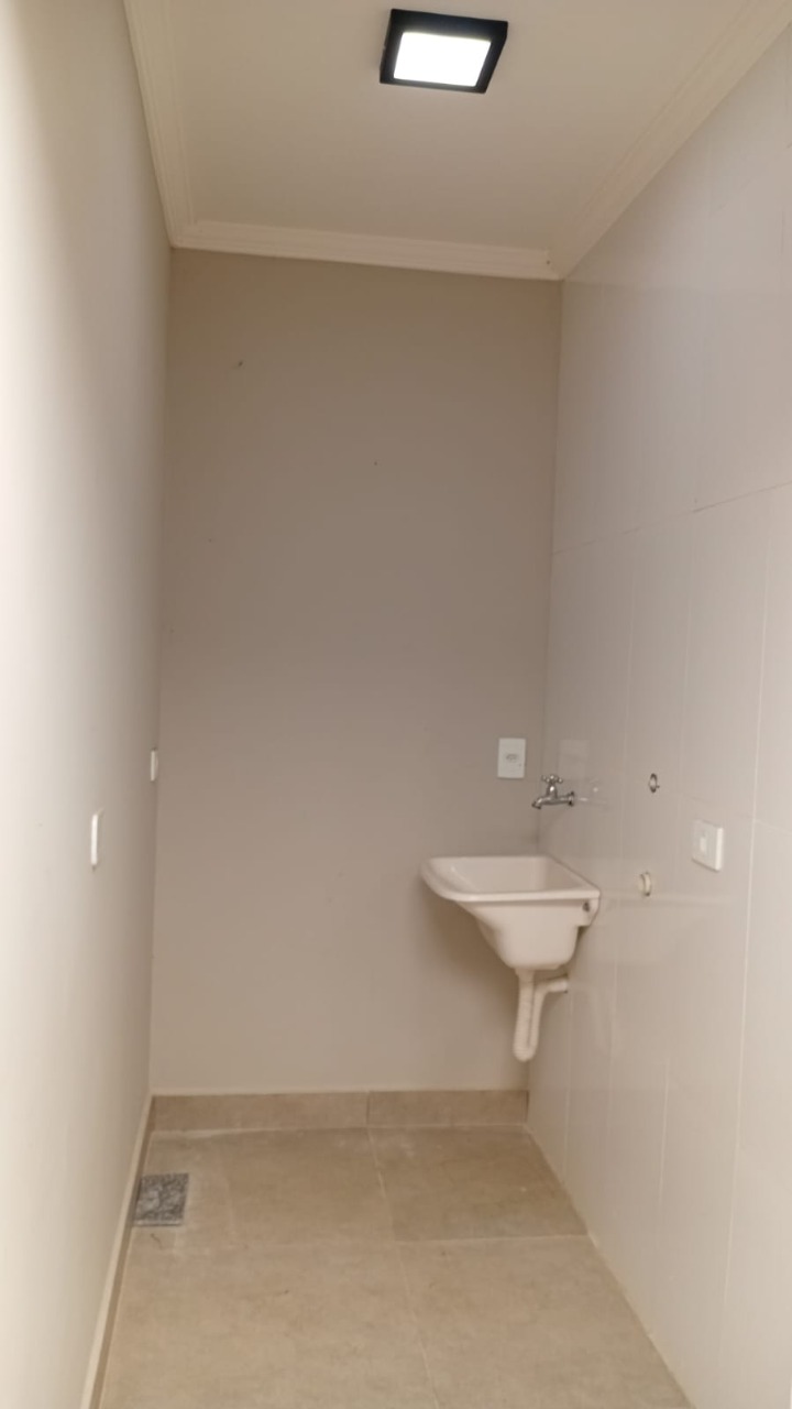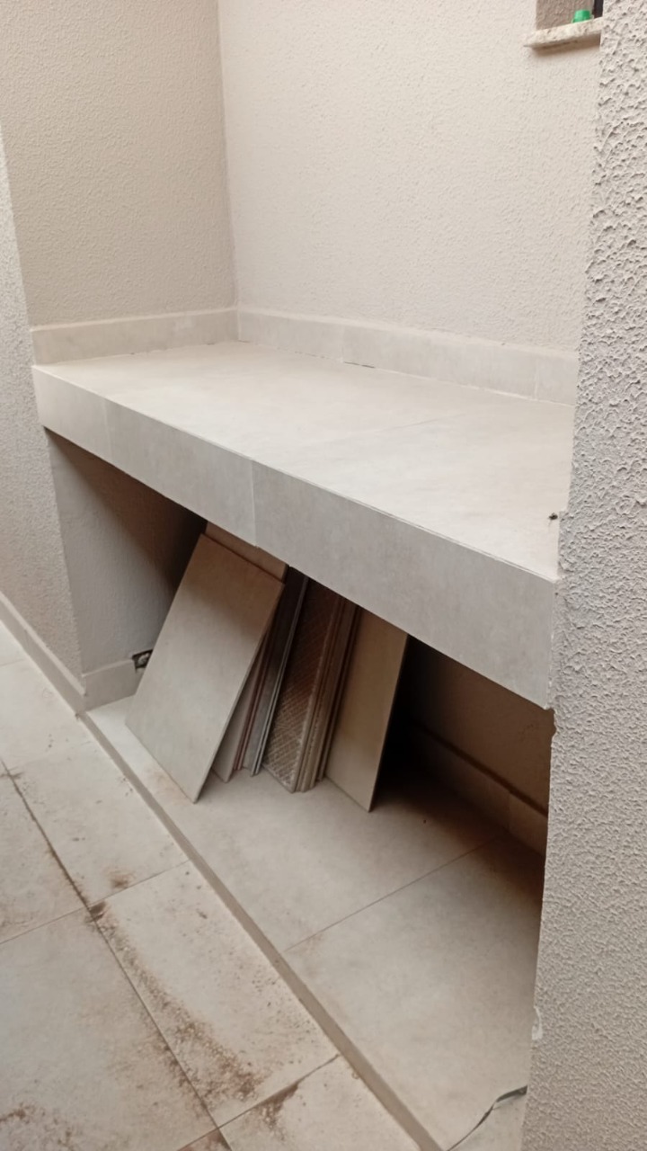 A lavanderia é coberta e conta com um corredor também coberto com policarbonato, além de um espaço bancada ao lado. Com acabamento em molduras em gesso em todo teto, vasos sanitários com caixa acoplada e piso em porcelanato, essa casa é simplesmente deslumbrante.