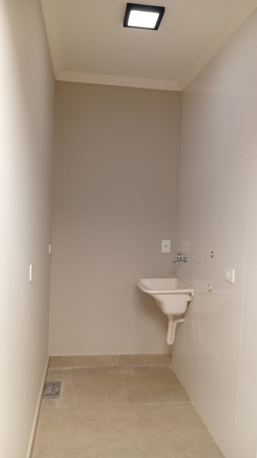 Lavanderia coberta com corredor também coberto com policarbonato e