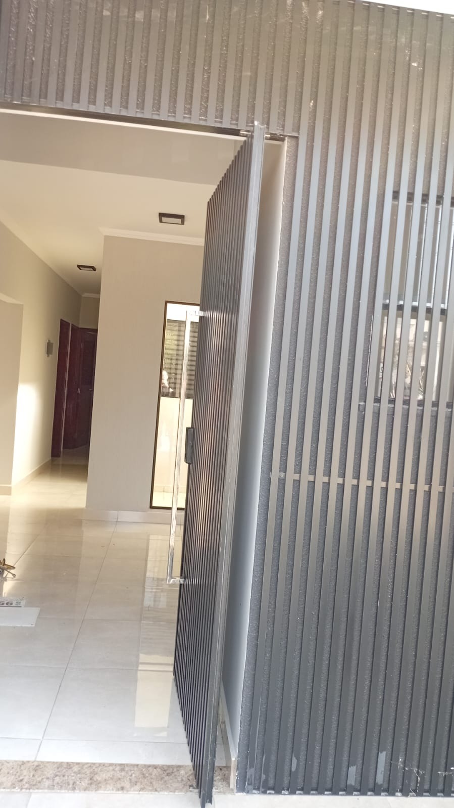 a Mureta fica ao lado da porta de vidro do corredor de acesso a esquerda da casa