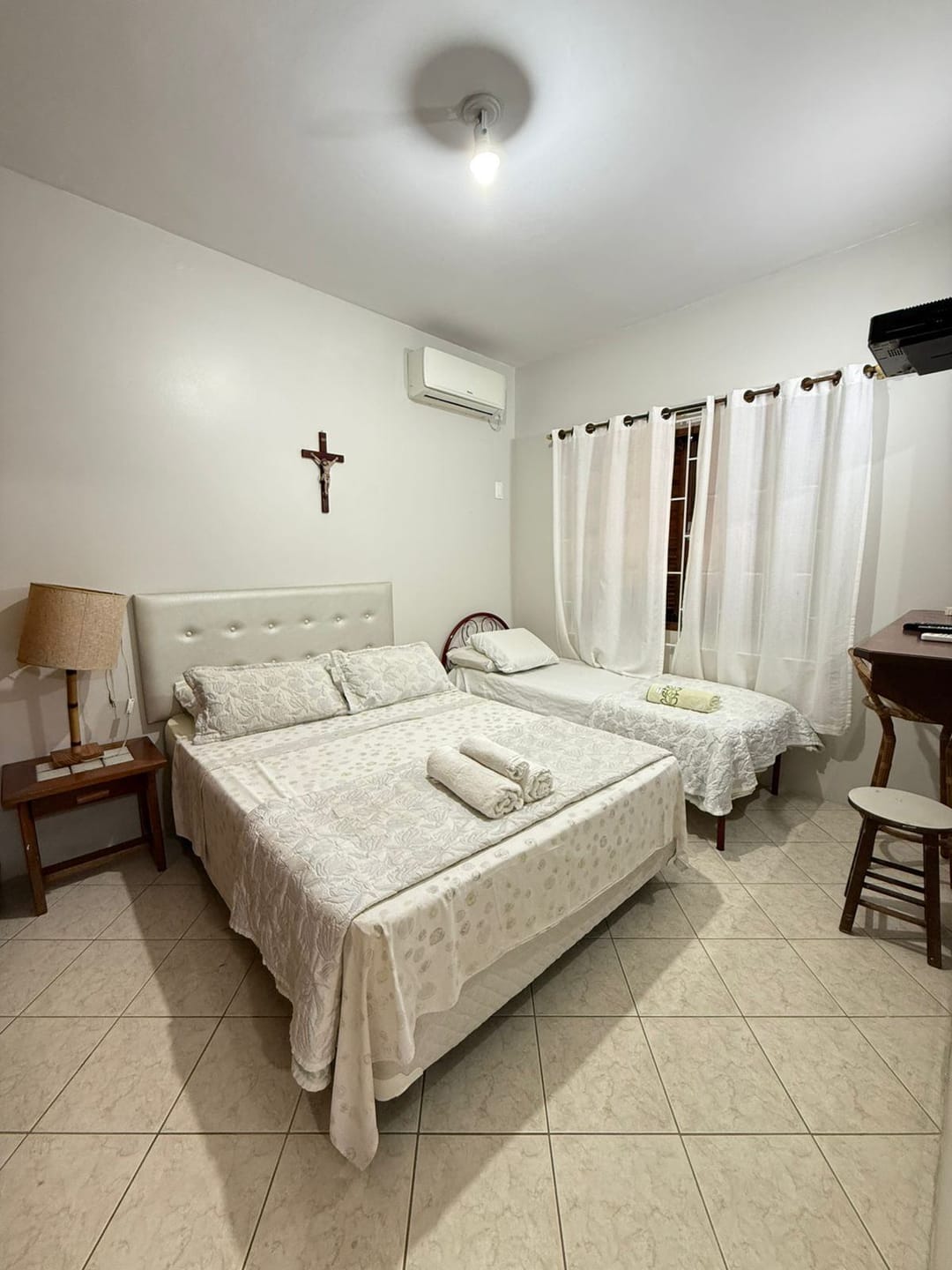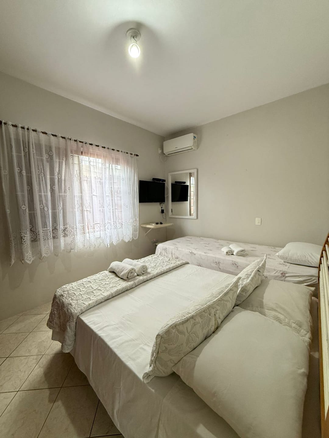03 dormitórios, todos com cama de casal, TV e ar-condicionado