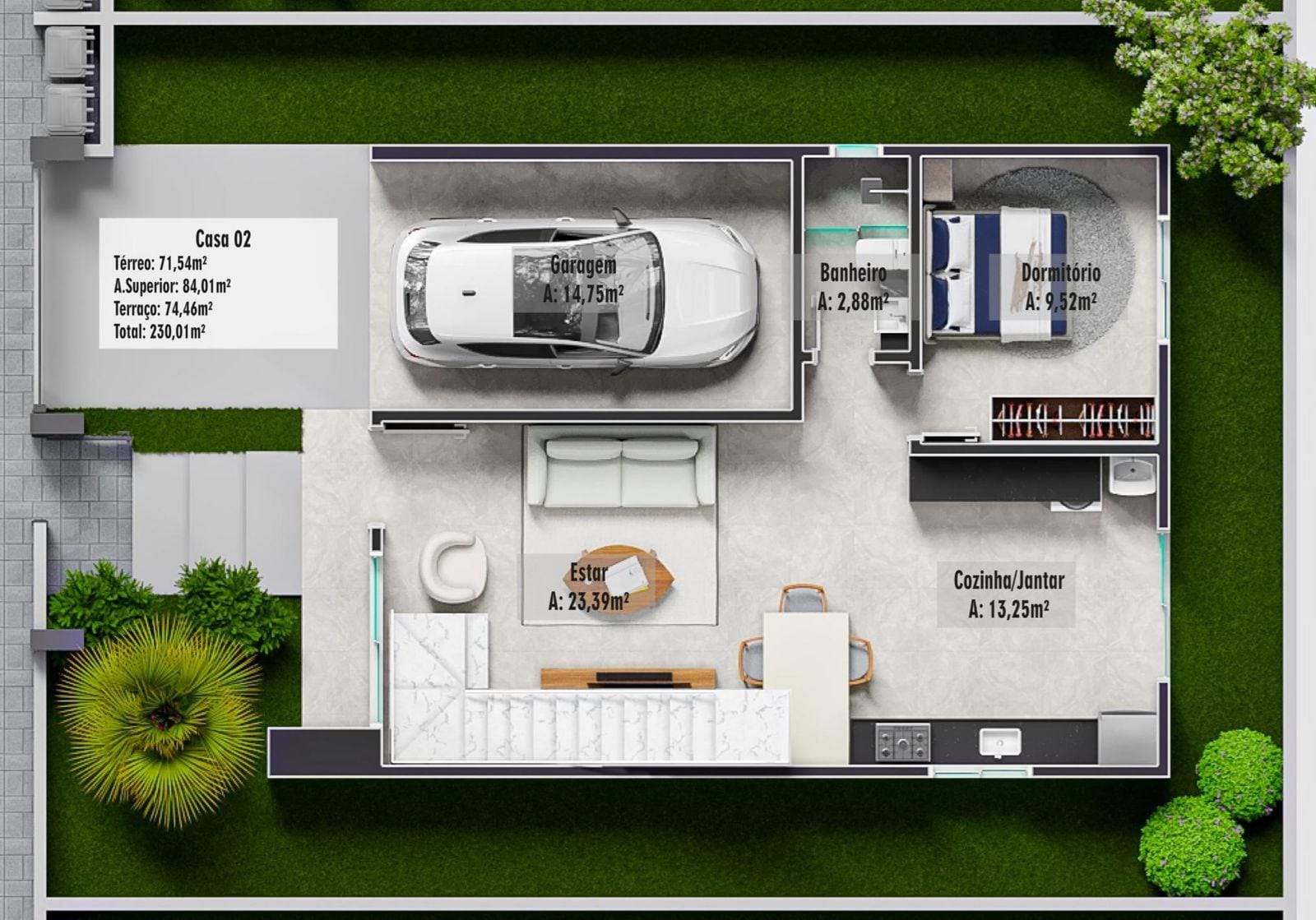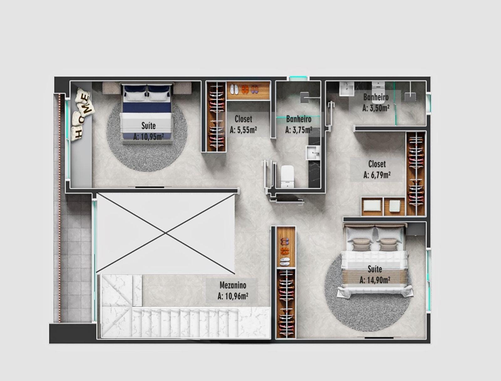 2 suítes no pavimento superior
