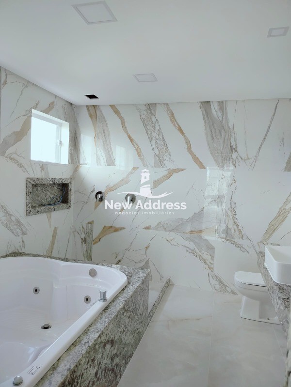 São 3 suítes amplas, uma delas com hidromassagem, totalizando 5 banheiros e mais um lavabo. 2 vagas de garagem cobertas.