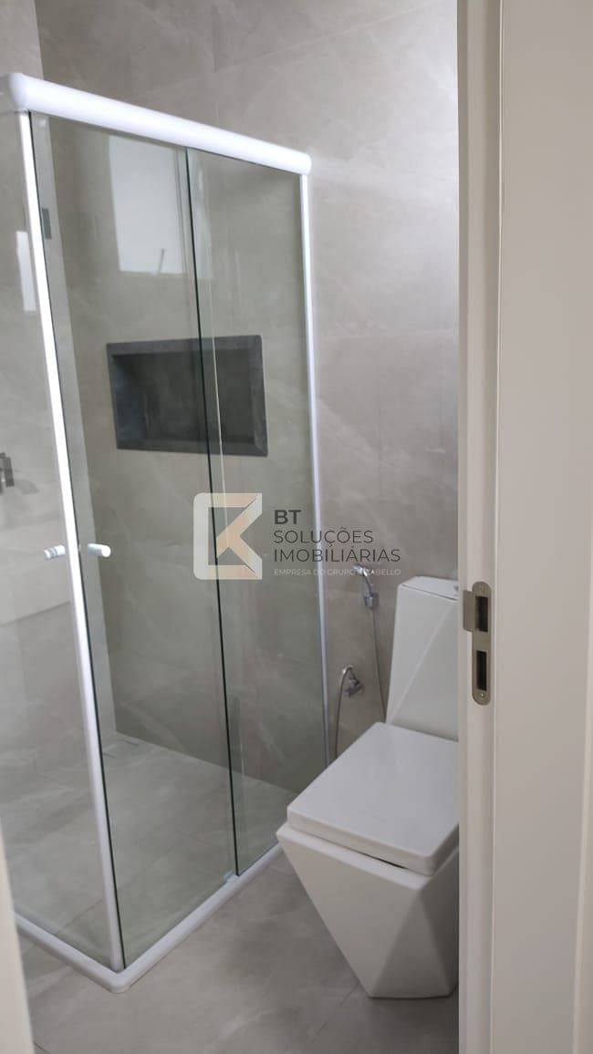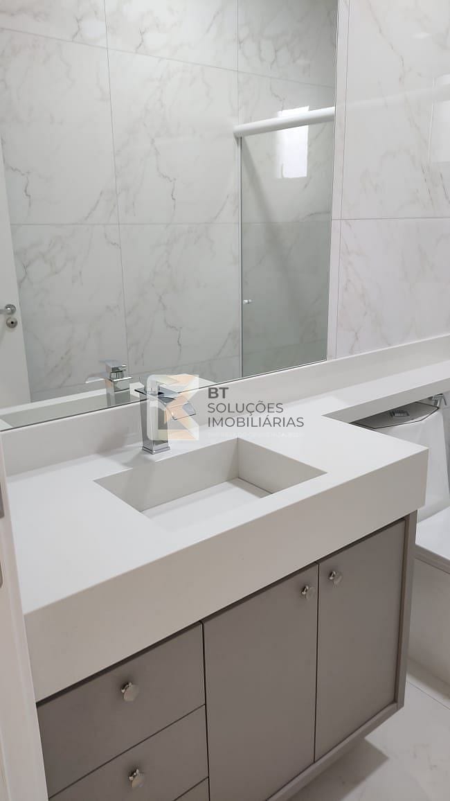 - Banheiros com móveis planejados, espelhos e boxes