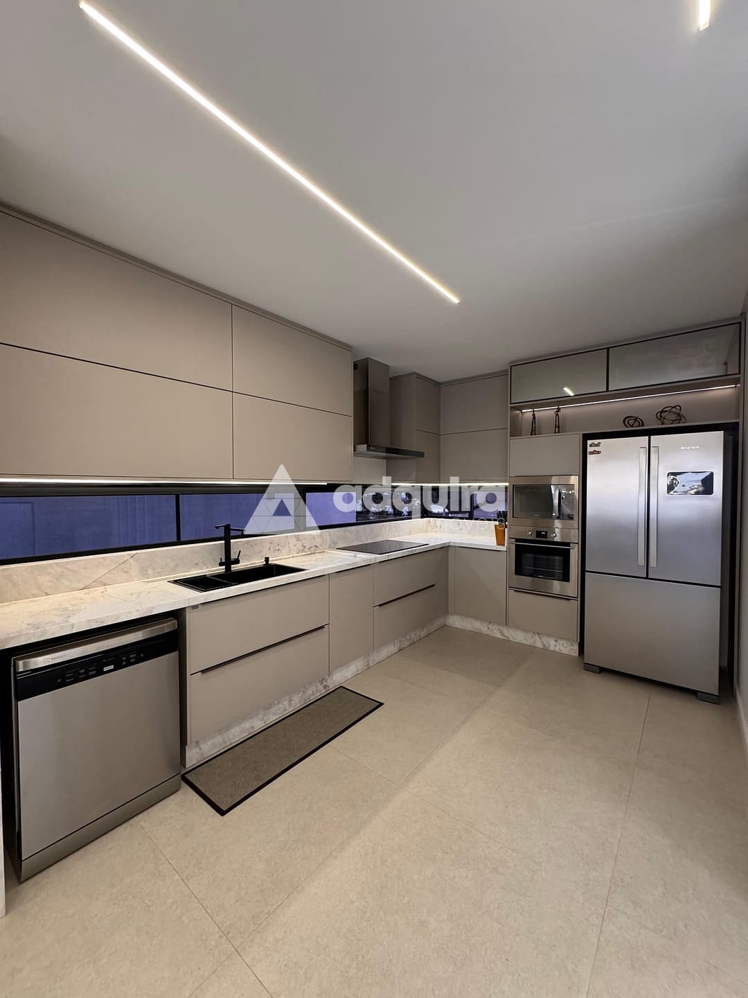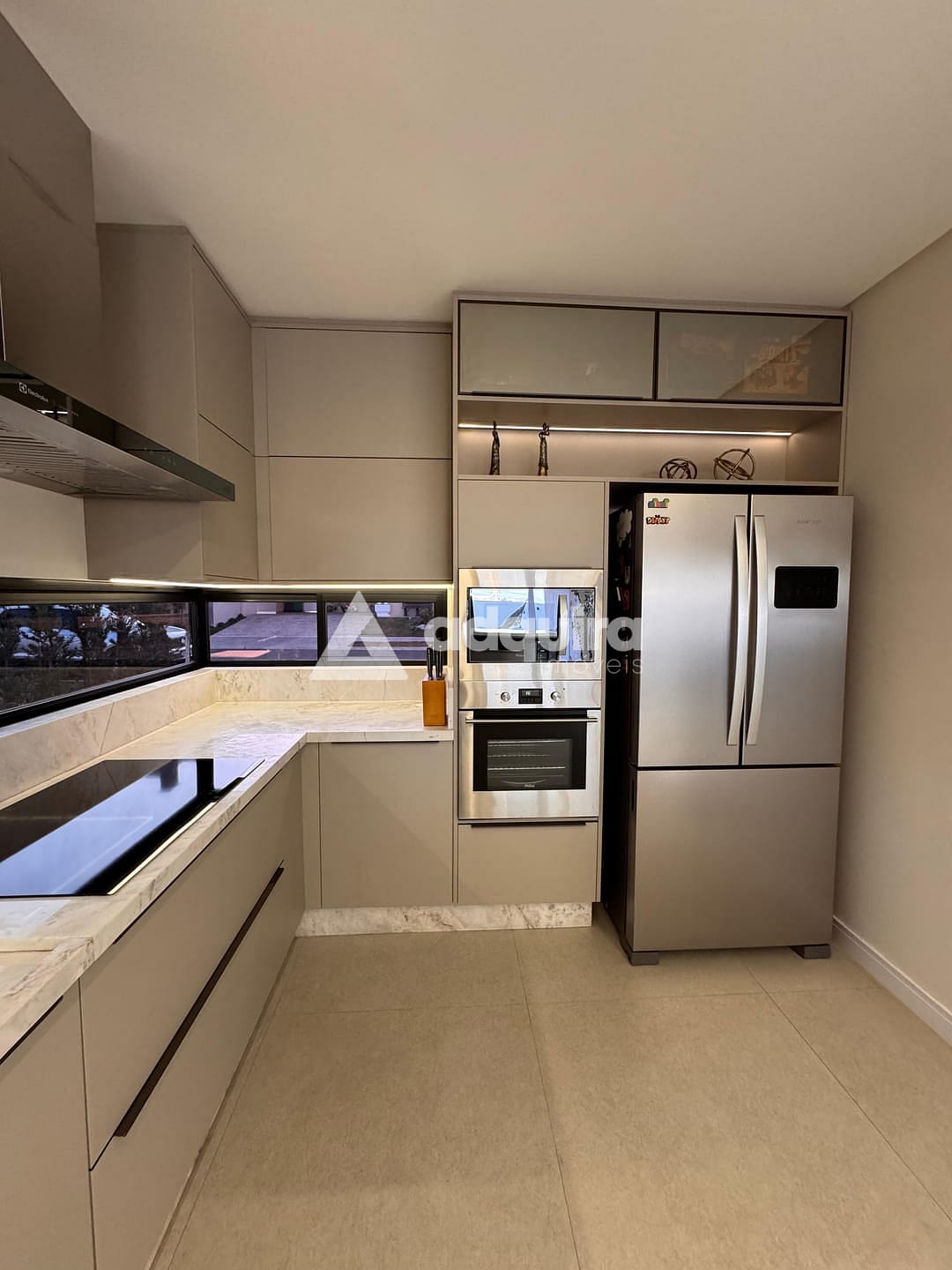 Sala e cozinha com móveis planejados Todeschini, já equipadas com eletrodomésticos embutidos de alta qualidade.