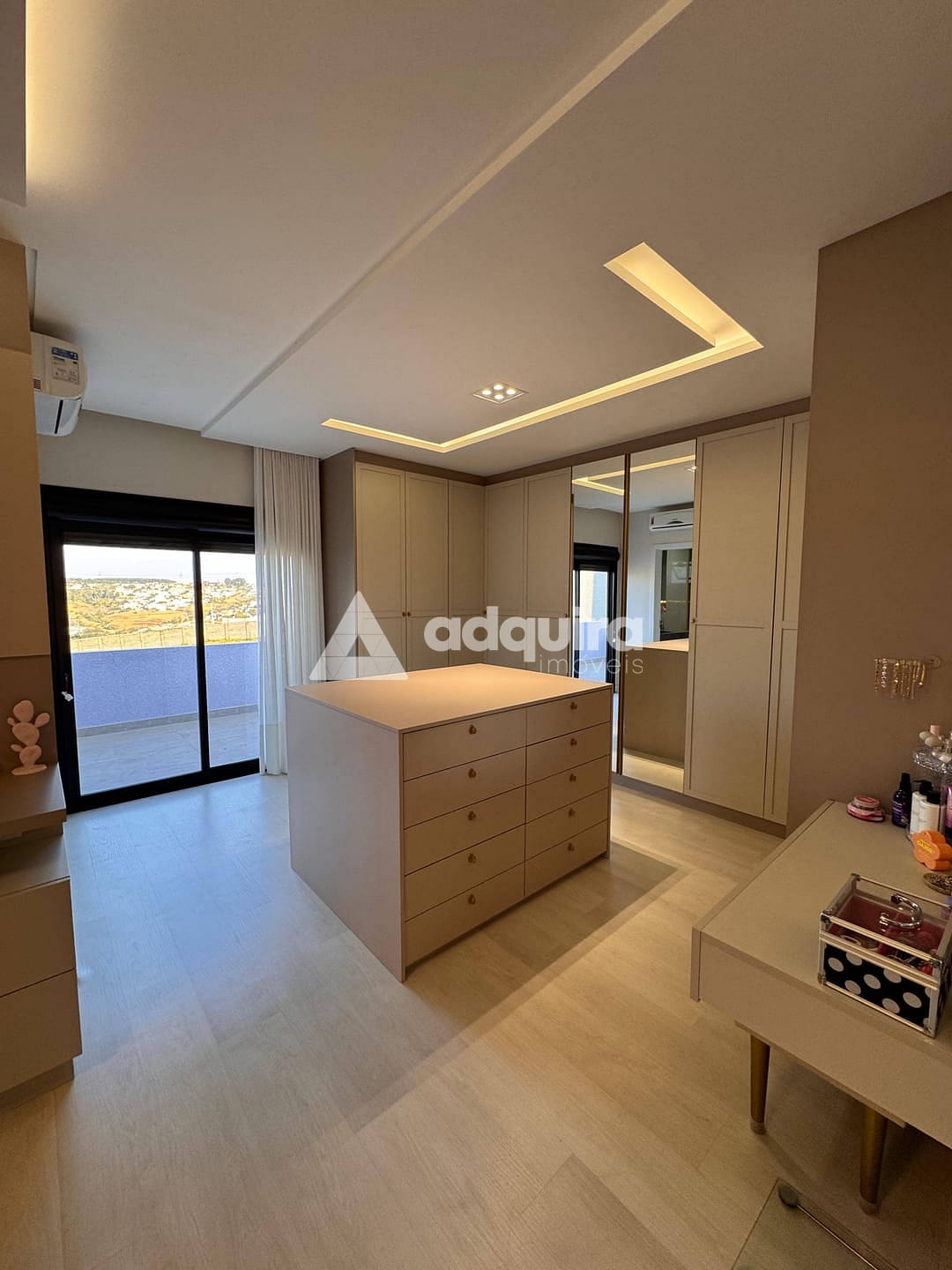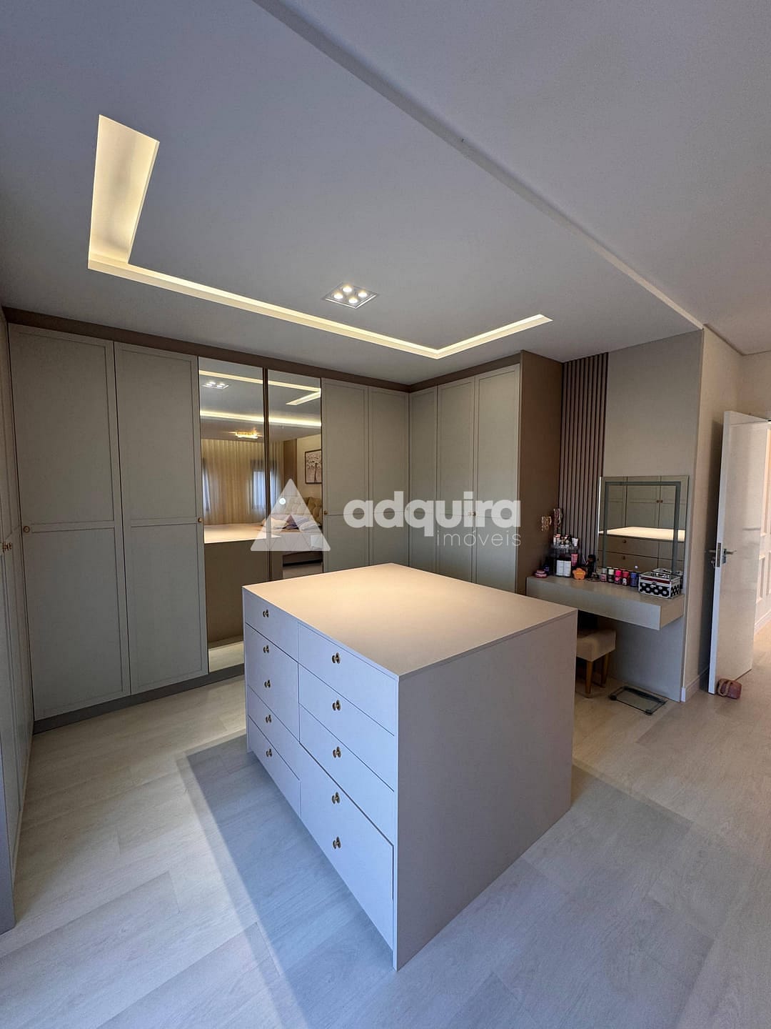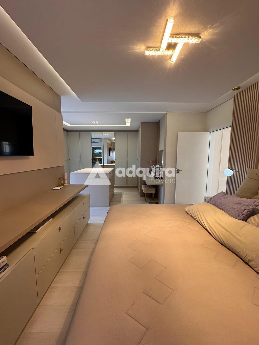Piso superior com uma suíte master ampla e arejada, além de uma demi-suíte com closet e banheiro de acabamento refinado.