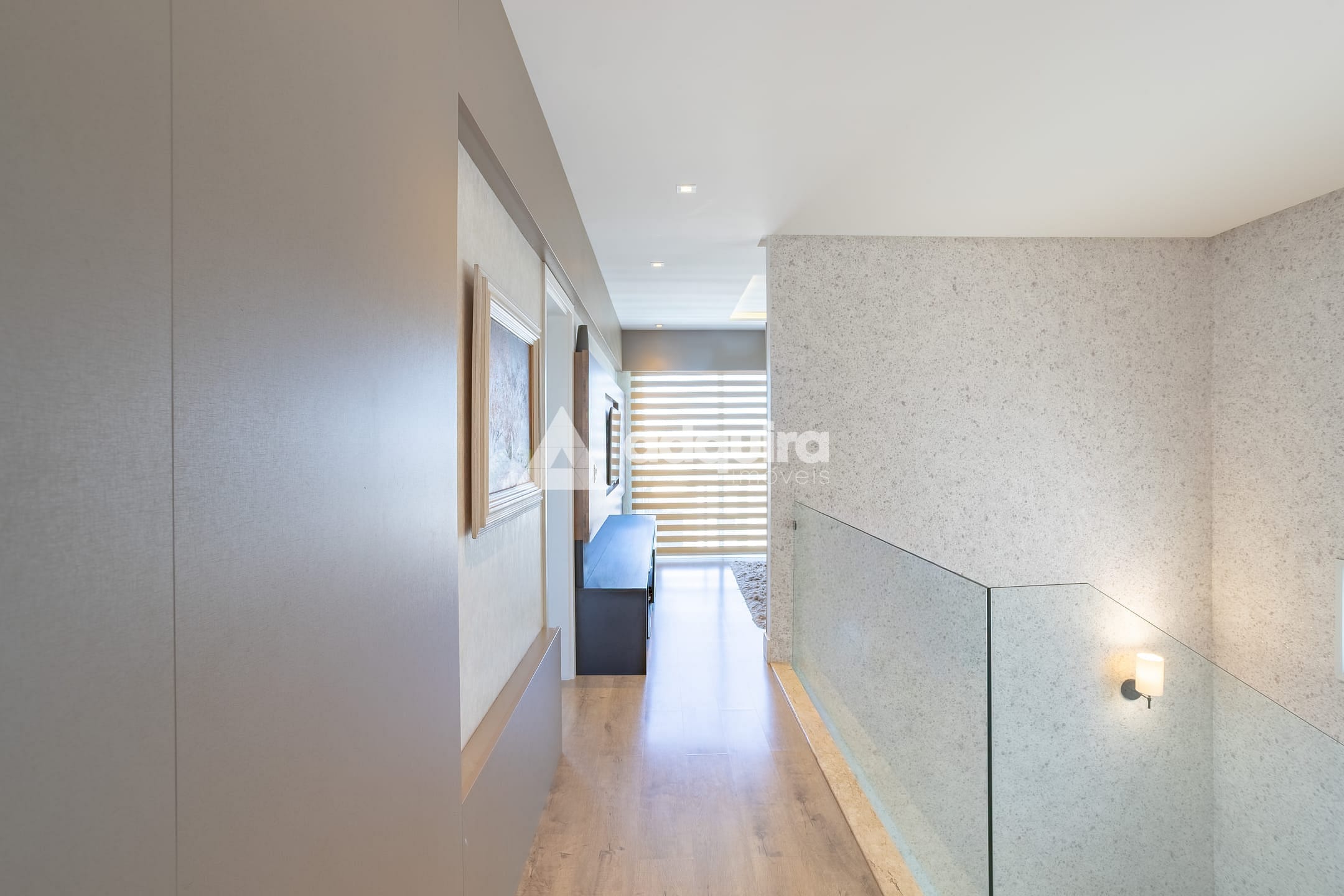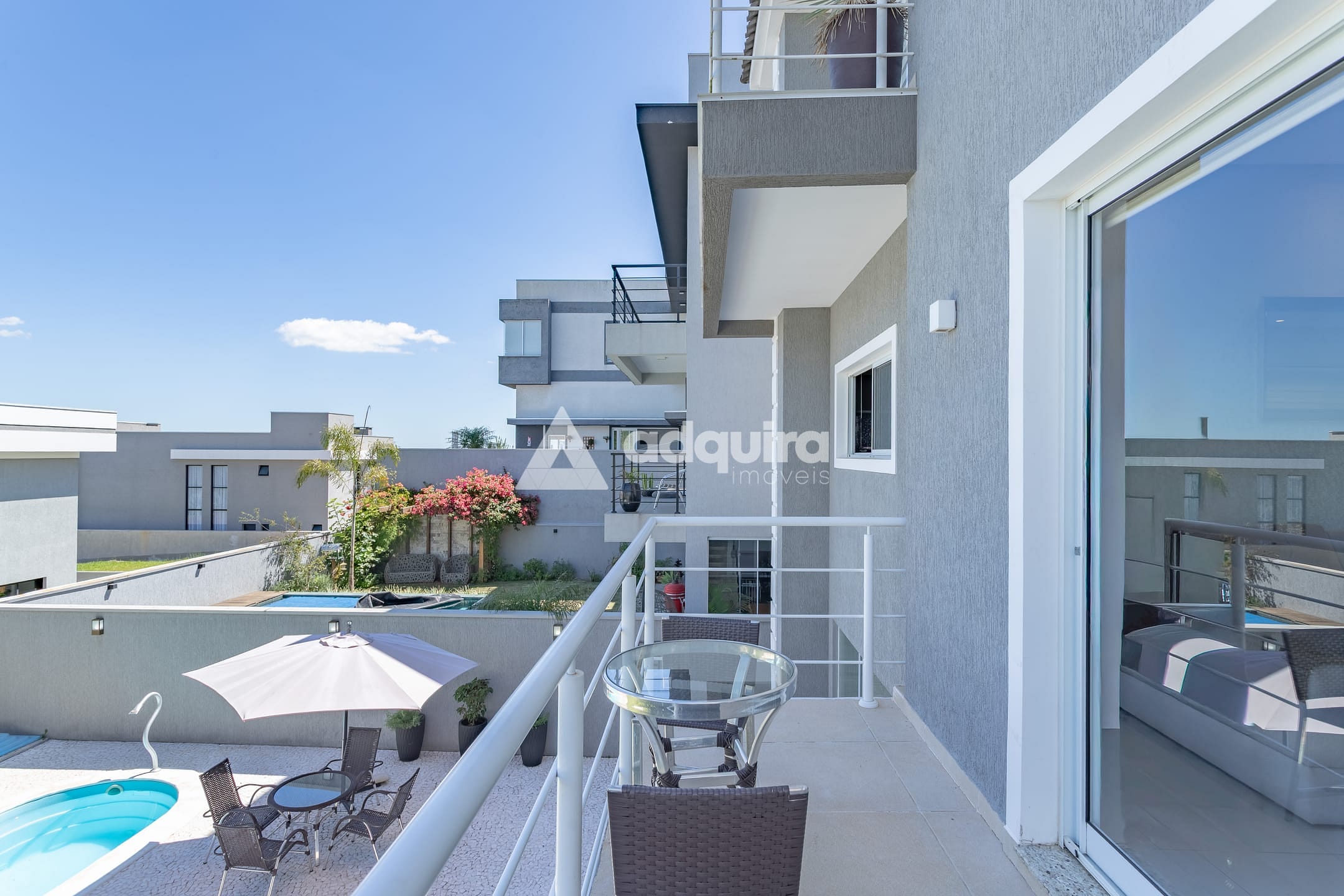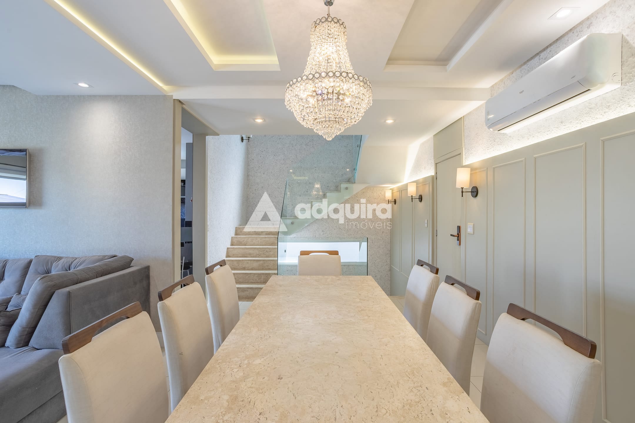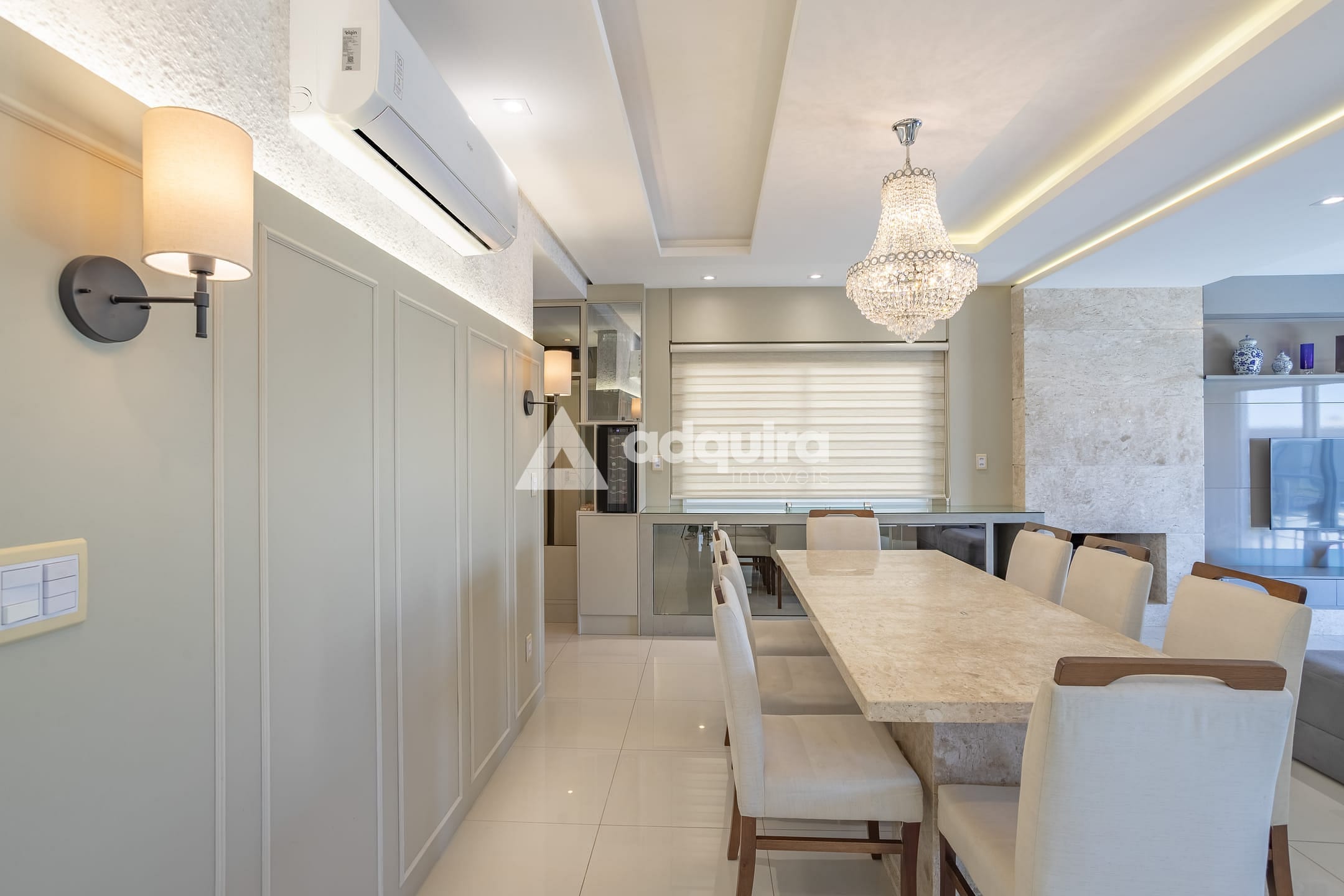 No piso superior, são três suítes, sendo uma suíte master com amplo closet e banheira de hidromassagem, além de sala íntima e sacada com vista encantadora. O imóvel conta com aquecimento a gás e ar-condicionado instalado no primeiro piso, na suíte e em mais um dormitório.