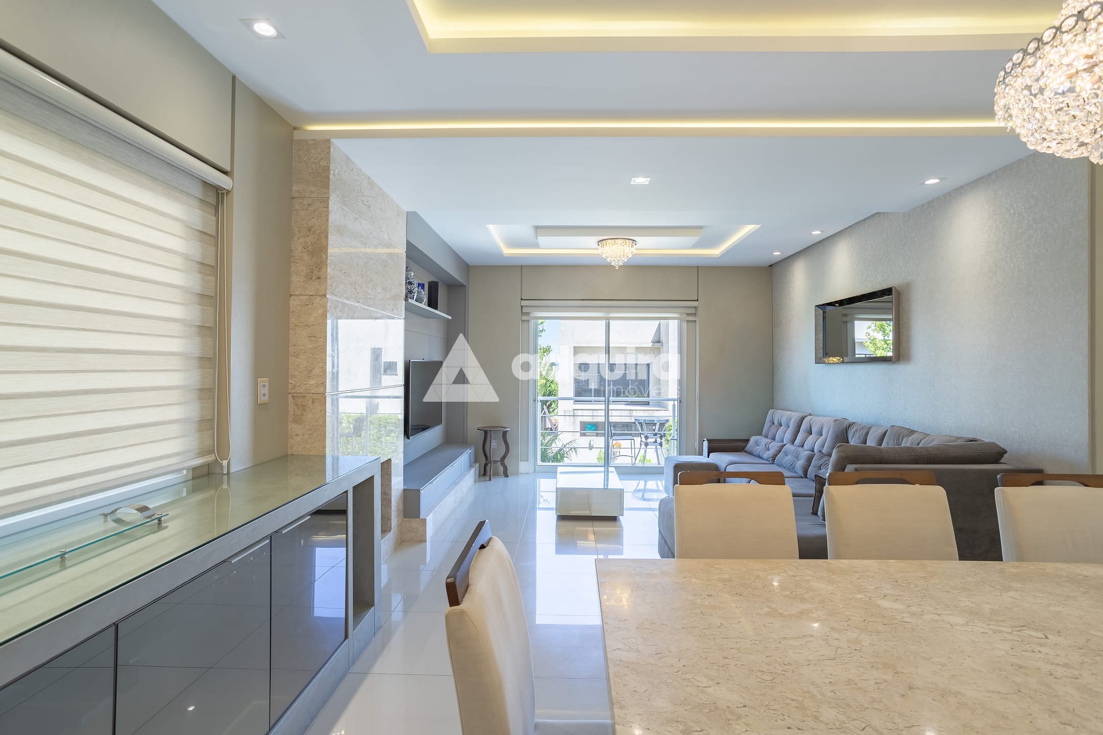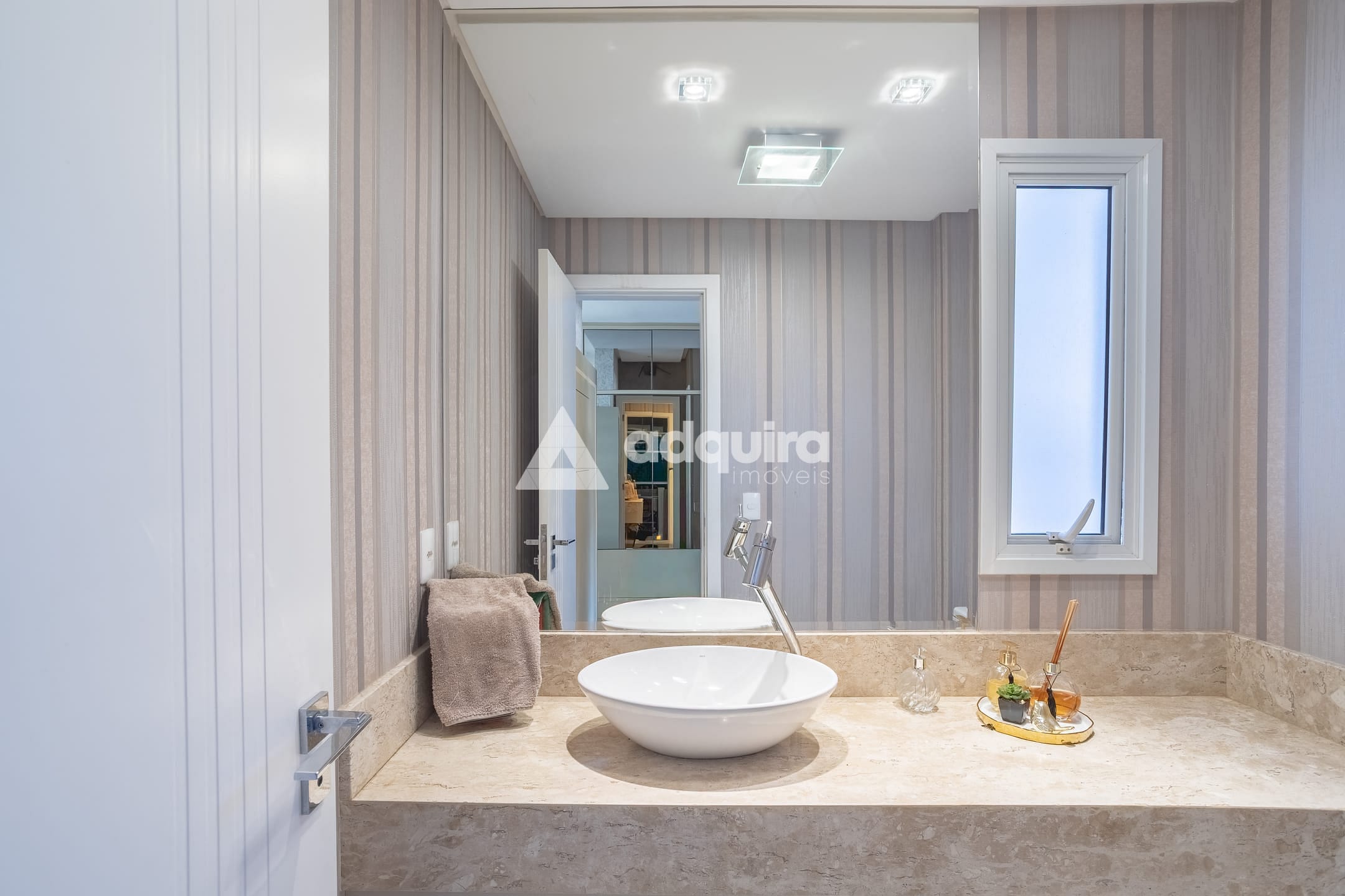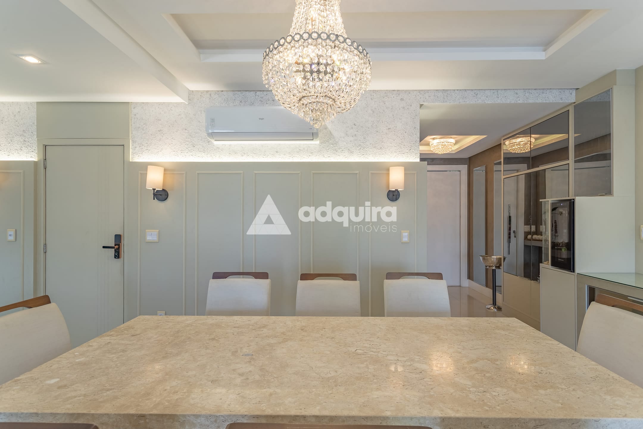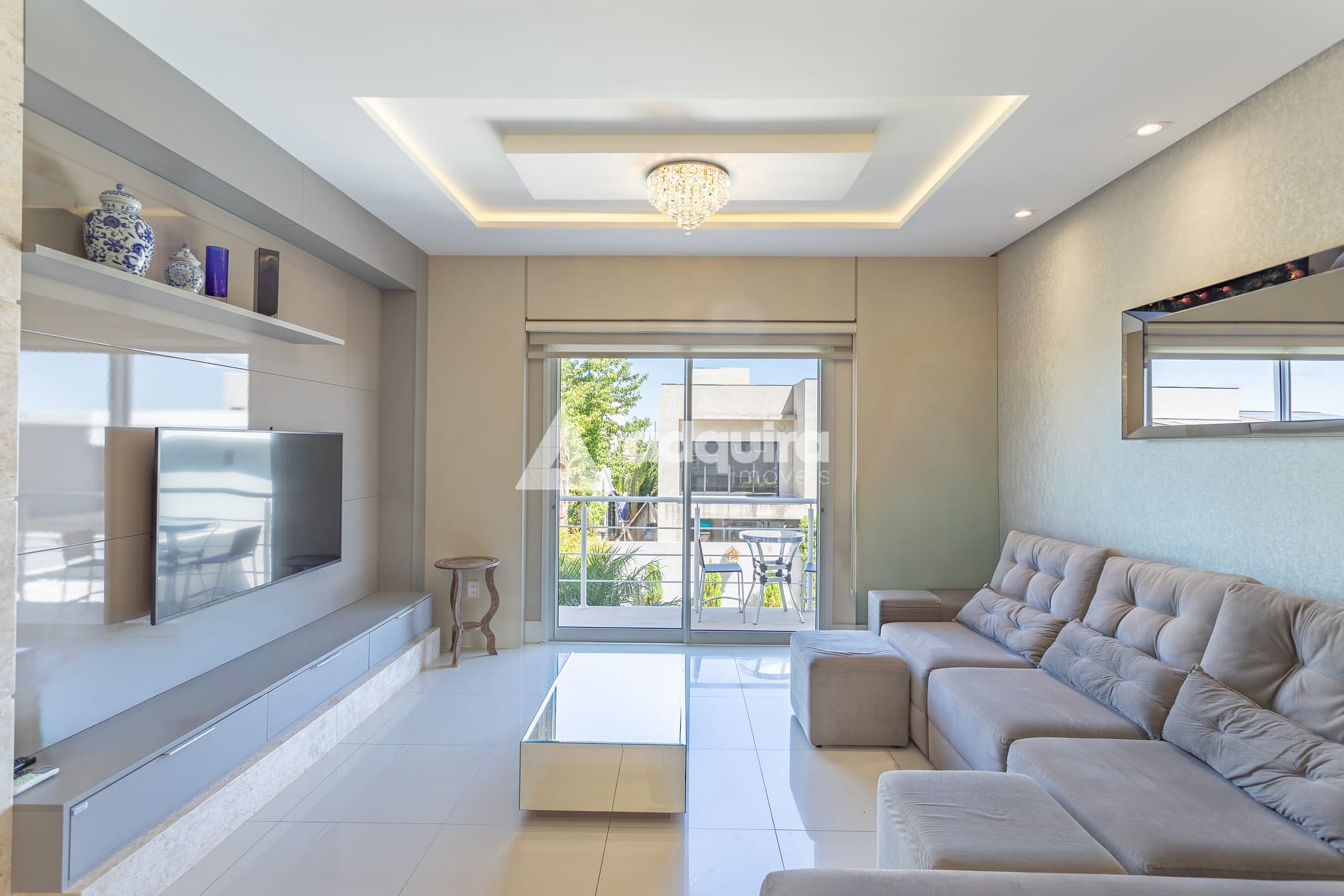 No piso superior, são três suítes, sendo uma suíte master com amplo closet e banheira de hidromassagem, além de sala íntima e sacada com vista encantadora. O imóvel conta com aquecimento a gás e ar-condicionado instalado no primeiro piso, na suíte e em mais um dormitório.