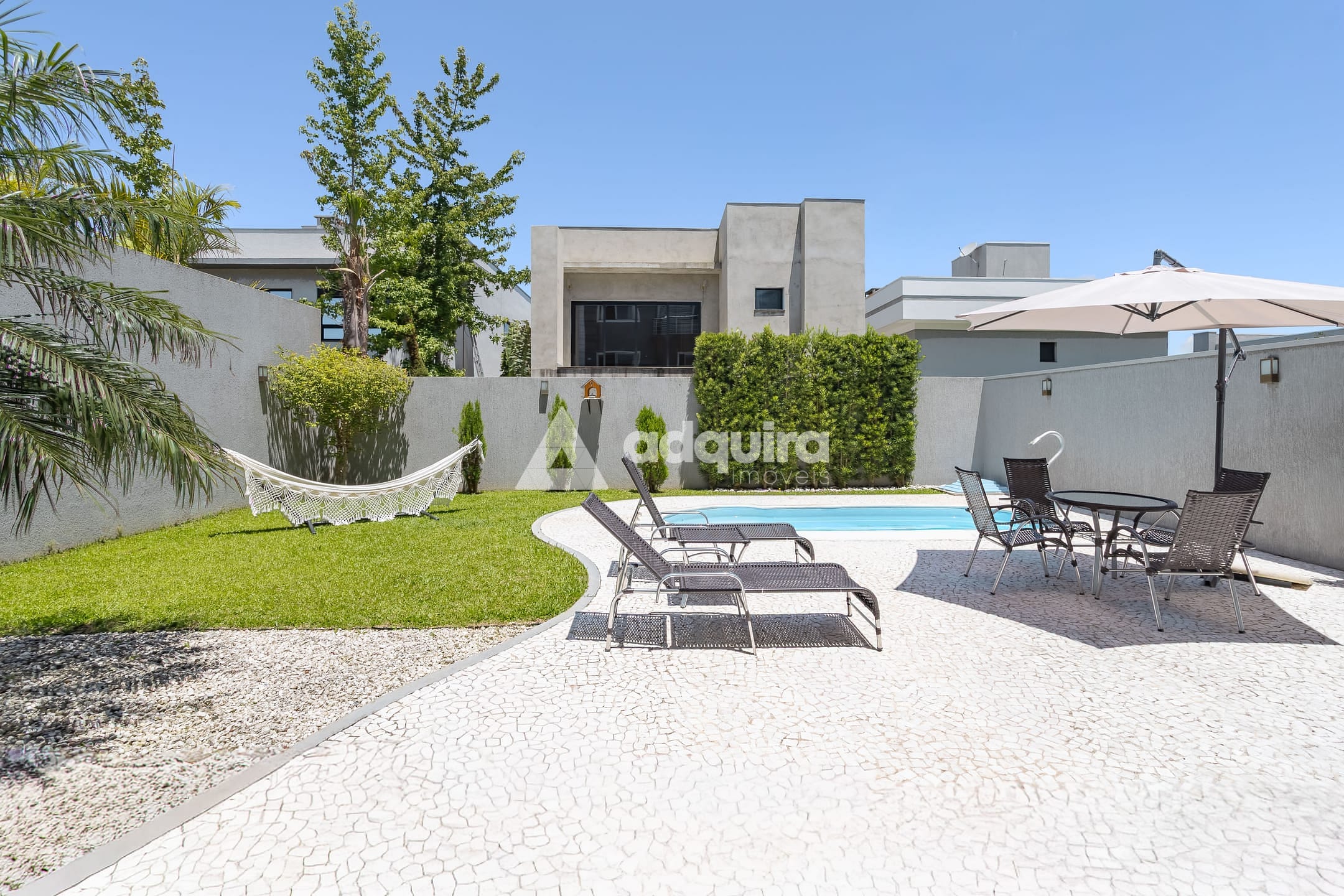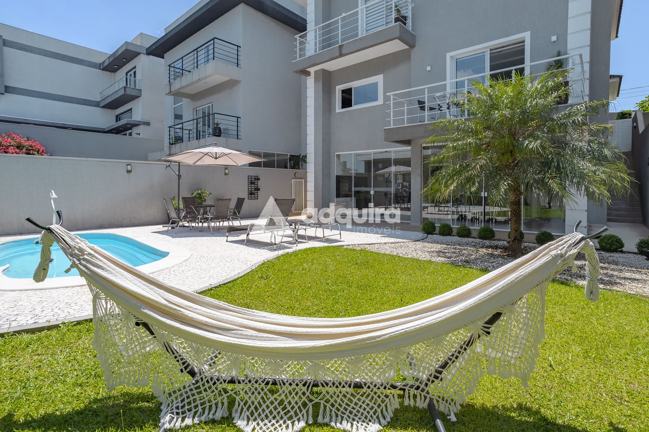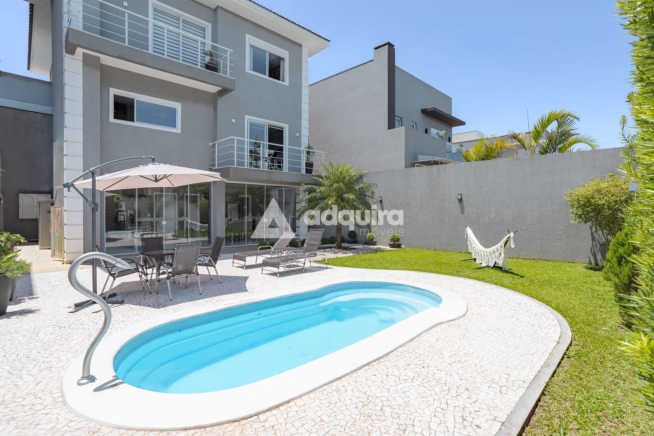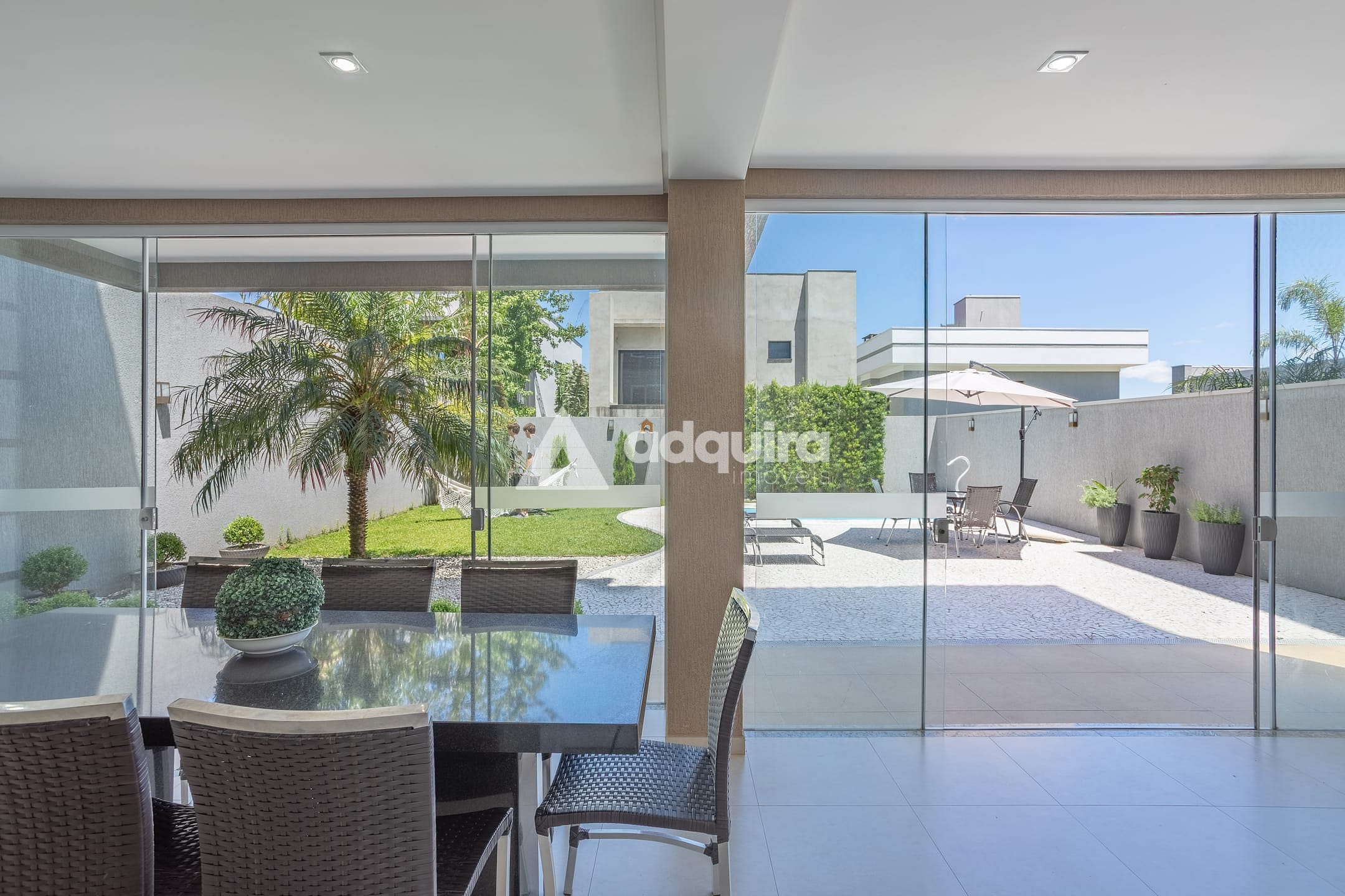 No piso inferior, conta com depósito, hall com armários sob a escada, espaço gourmet completo com churrasqueira e banheiro, lavanderia e amplas portas de vidro que se abrem para o jardim e a piscina, a qual possui preparação para aquecimento. O espaço gourmet possui ainda entrada independente, garantindo maior praticidade e privacidade.