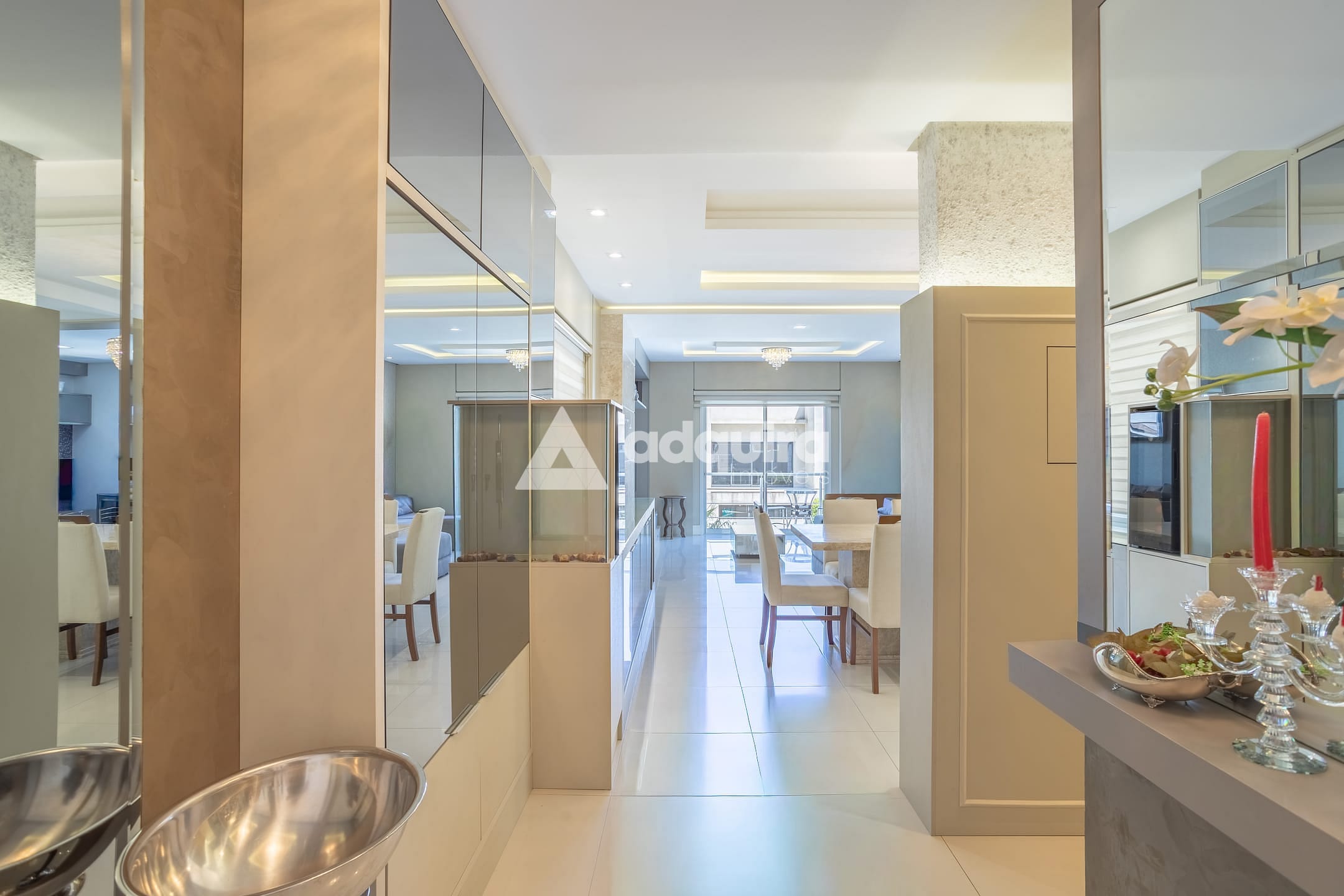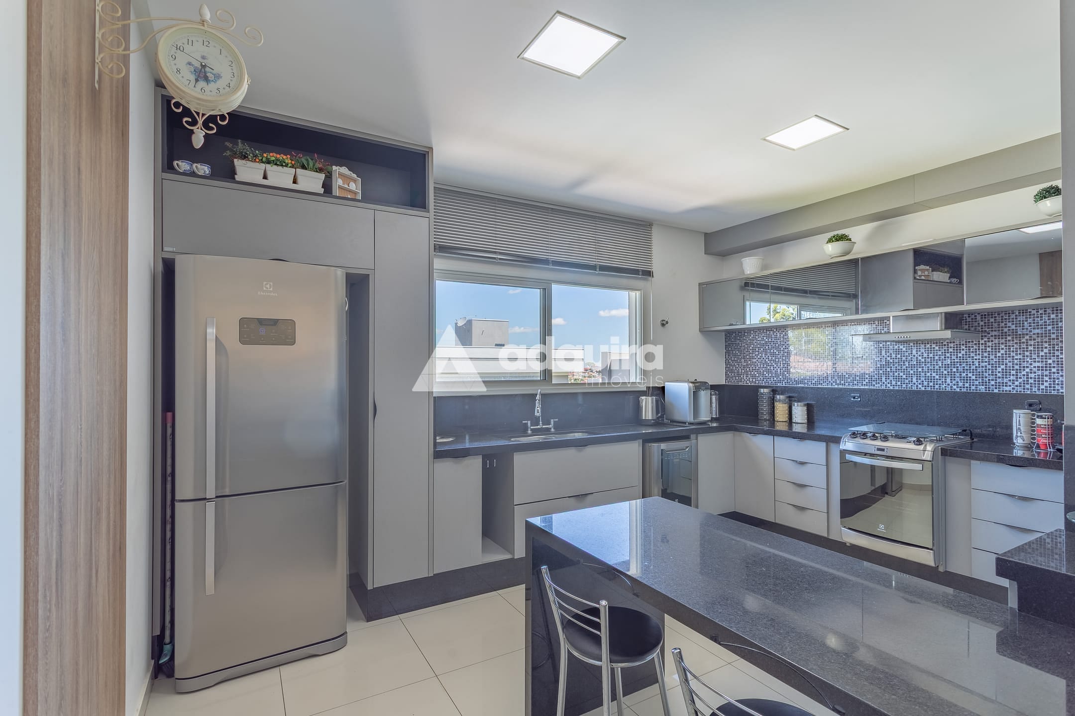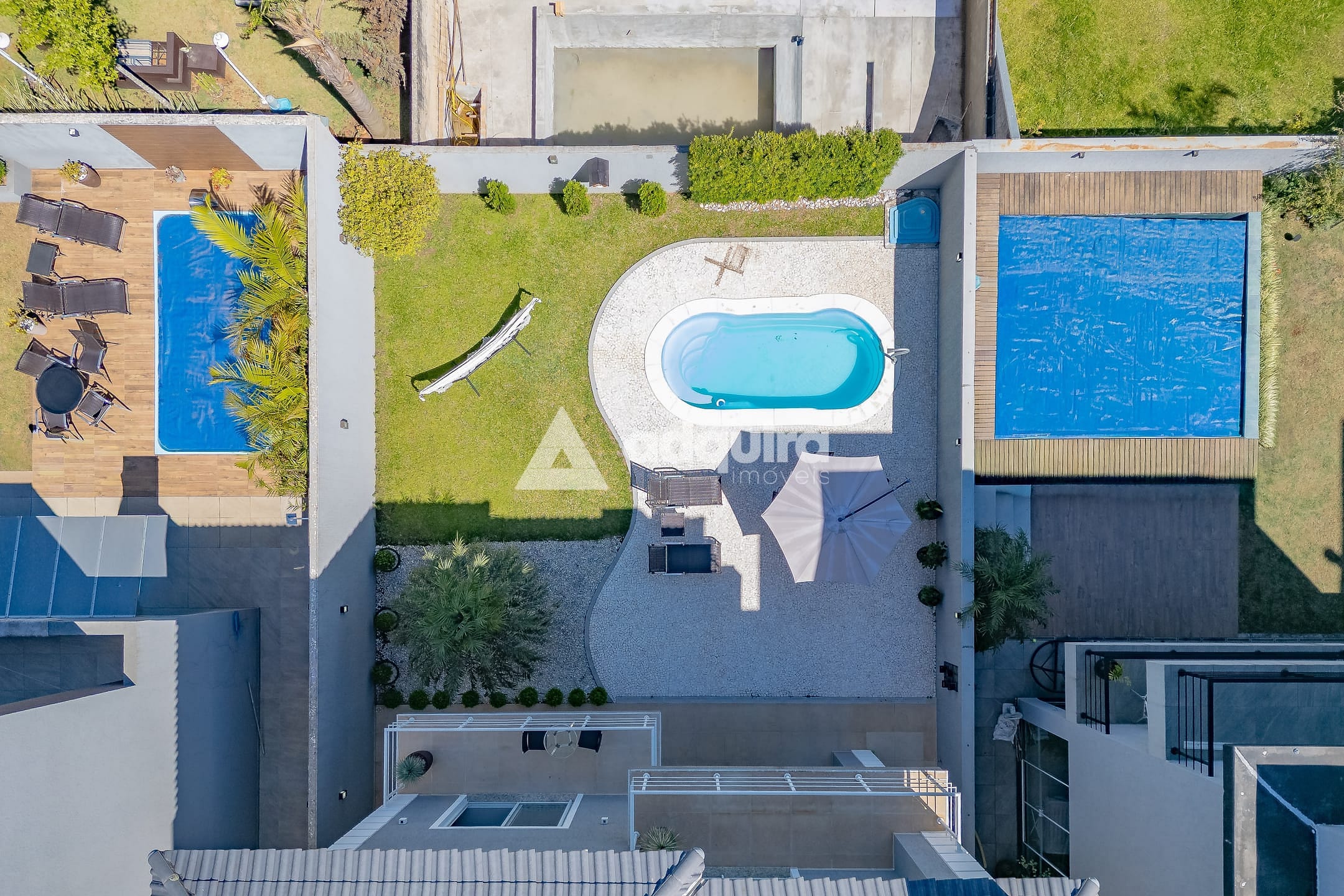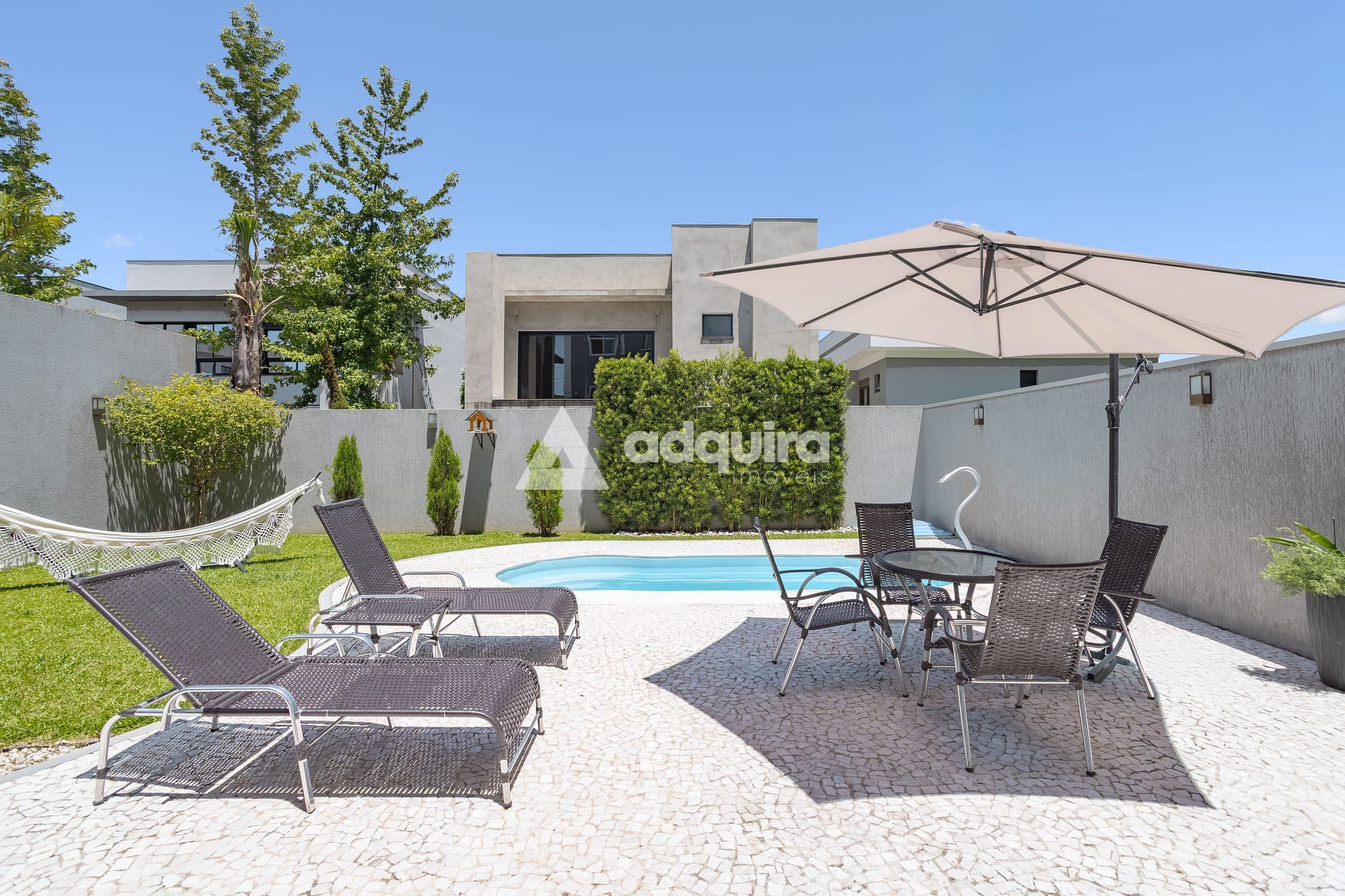 No piso inferior, conta com depósito, hall com armários sob a escada, espaço gourmet completo com churrasqueira e banheiro, lavanderia e amplas portas de vidro que se abrem para o jardim e a piscina, a qual possui preparação para aquecimento. O espaço gourmet possui ainda entrada independente, garantindo maior praticidade e privacidade.