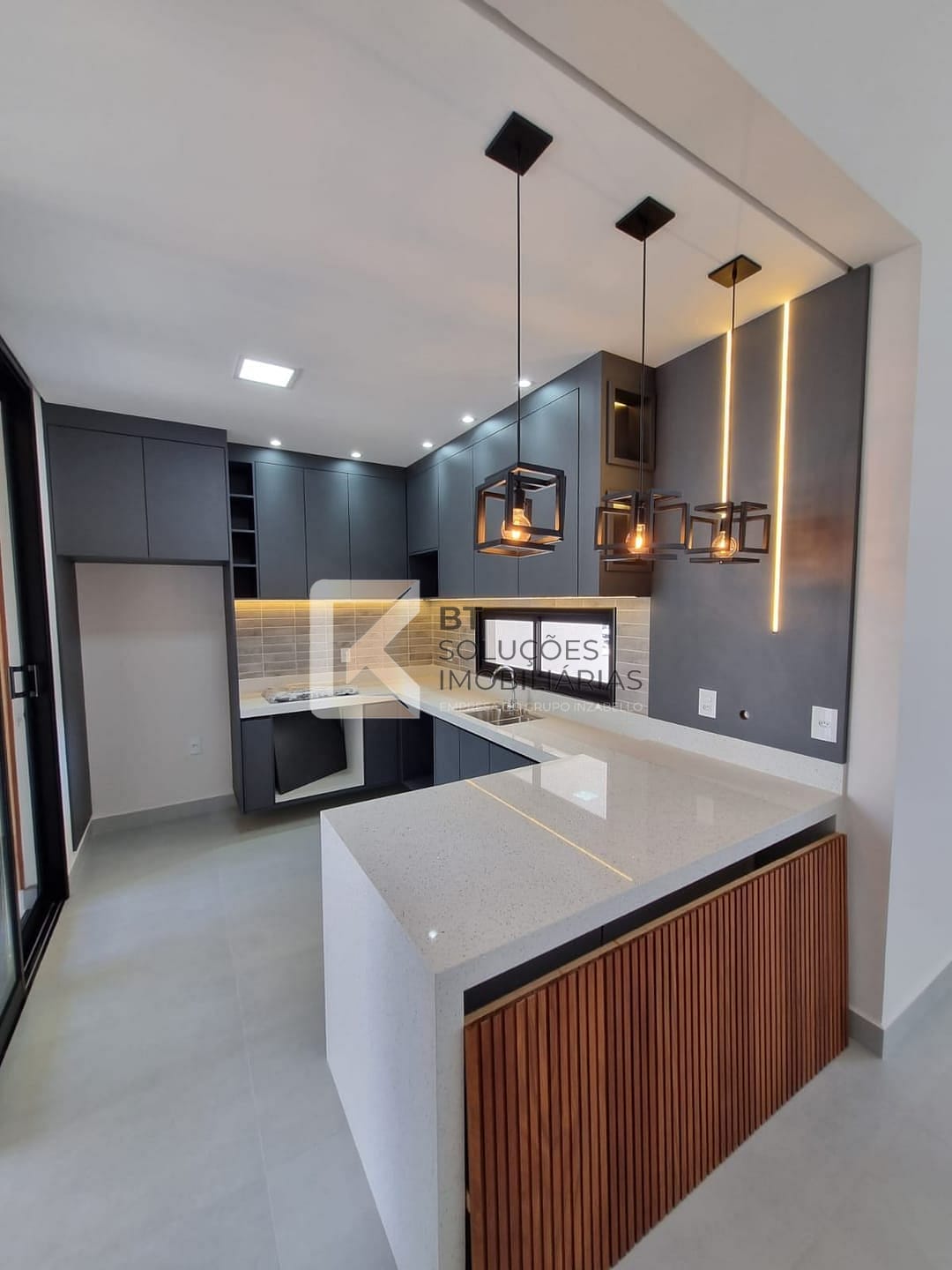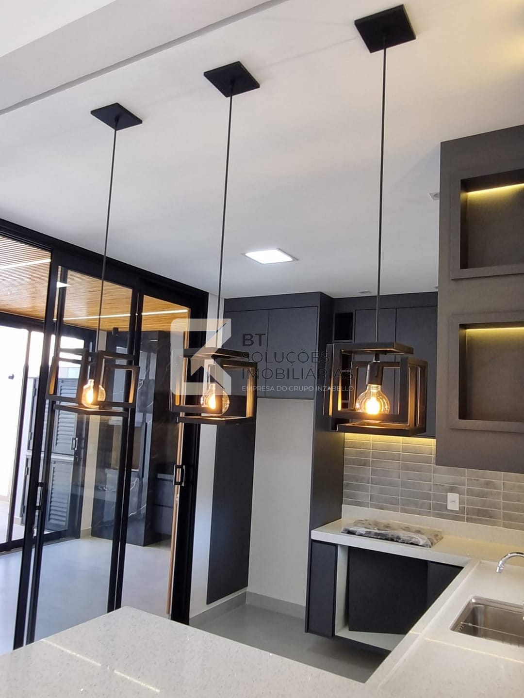 - Esquadrias em alumínio (preta) automatizadas e janela da sala com pele de vidro