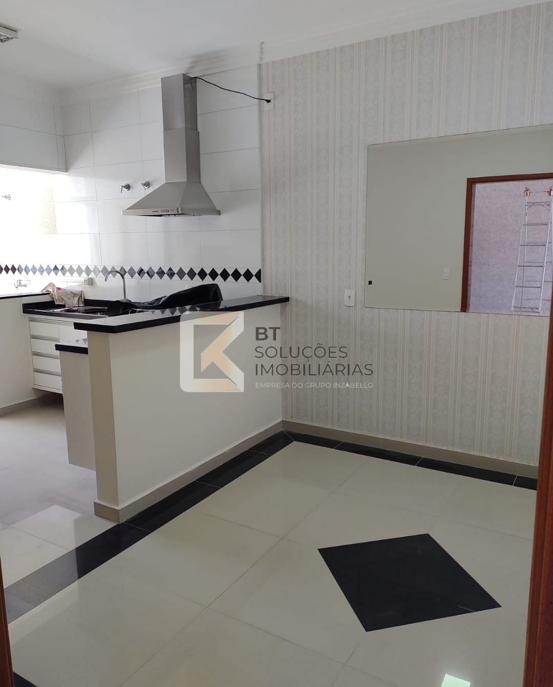 - Cozinha com armários e coifa