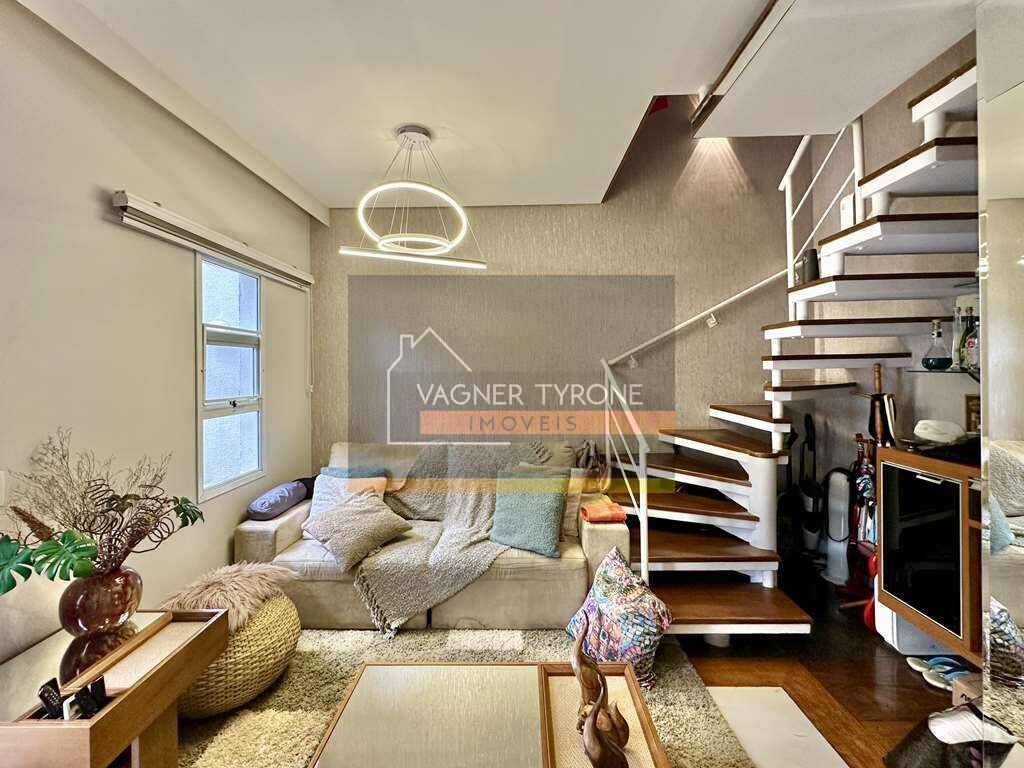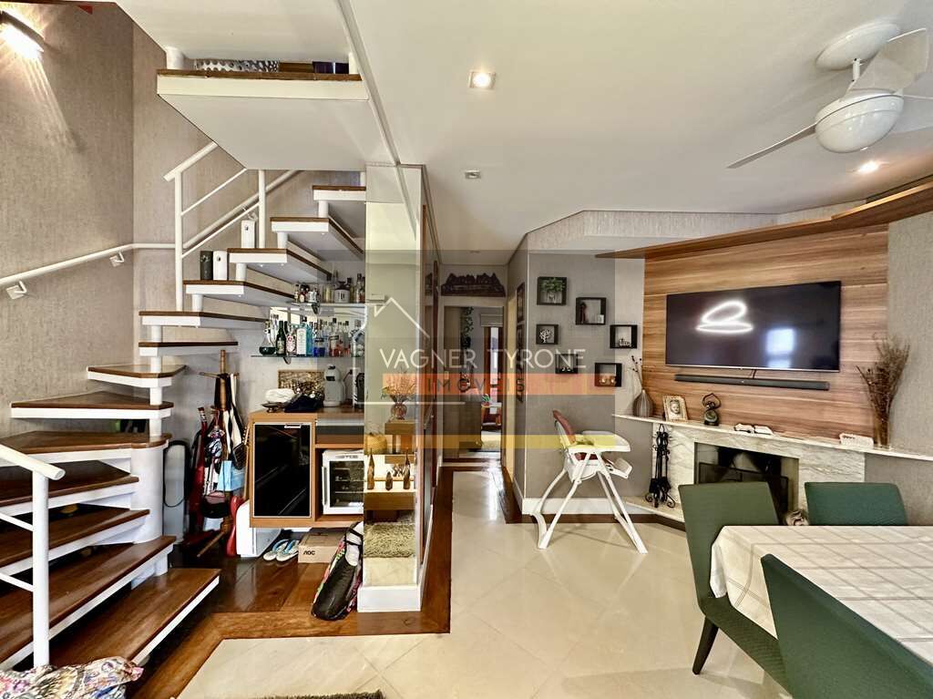 No piso superior, a escada com estrutura metálica revestida em madeira leva ao hall íntimo, onde há um mezanino planejado para home office, com armários, gabinetes e estação de trabalho. São 3 dormitórios, todos com armários planejados e ar-condicionado quente e frio, sendo 1 suíte com terraço.