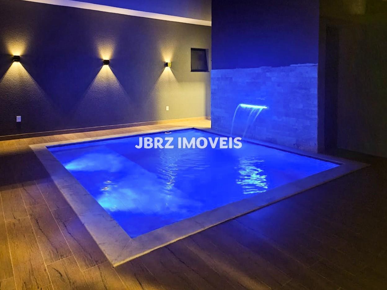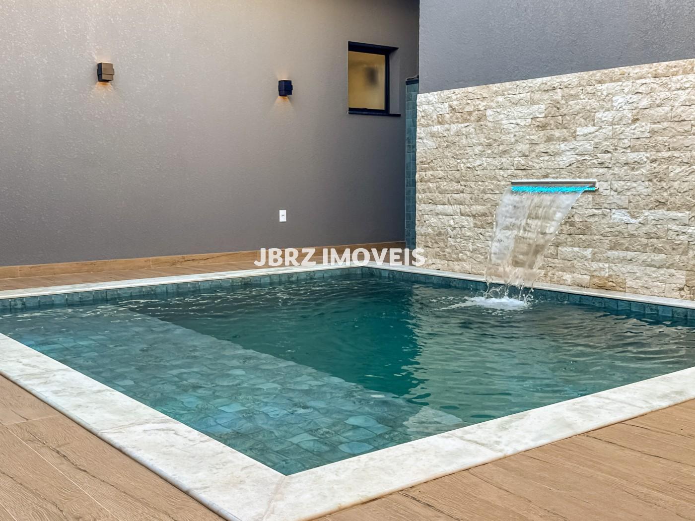 A área externa é um verdadeiro convite ao lazer, com piscina com prainha, cascata e iluminação em LED, ducha e lavabo exclusivo para a piscina, além de casa de bombas com depósito.