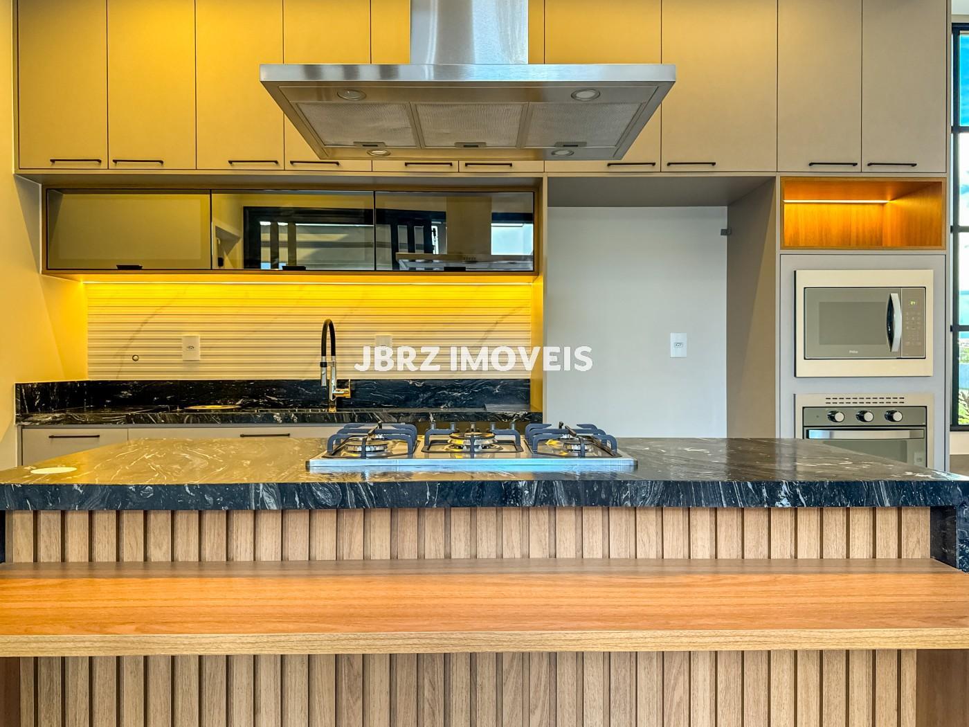 A área social encanta com salas de estar e jantar integradas, valorizadas pelo pé-direito duplo, proporcionando amplitude, iluminação natural e um ambiente acolhedor. A cozinha com ilha é prática e elegante, integrada ao espaço gourmet, ideal para receber amigos e familiares. O imóvel ainda conta com escritório, perfeito para home office.