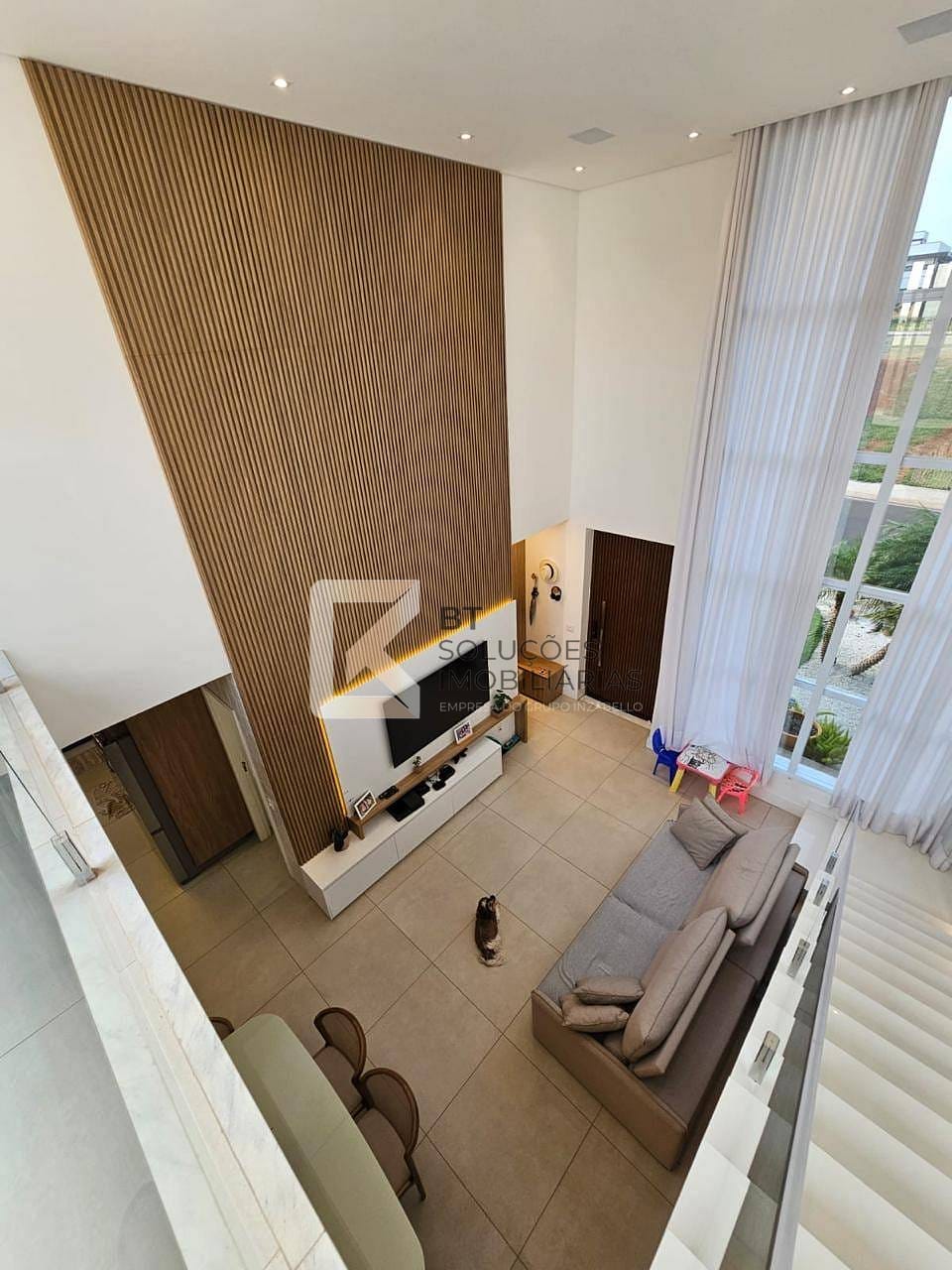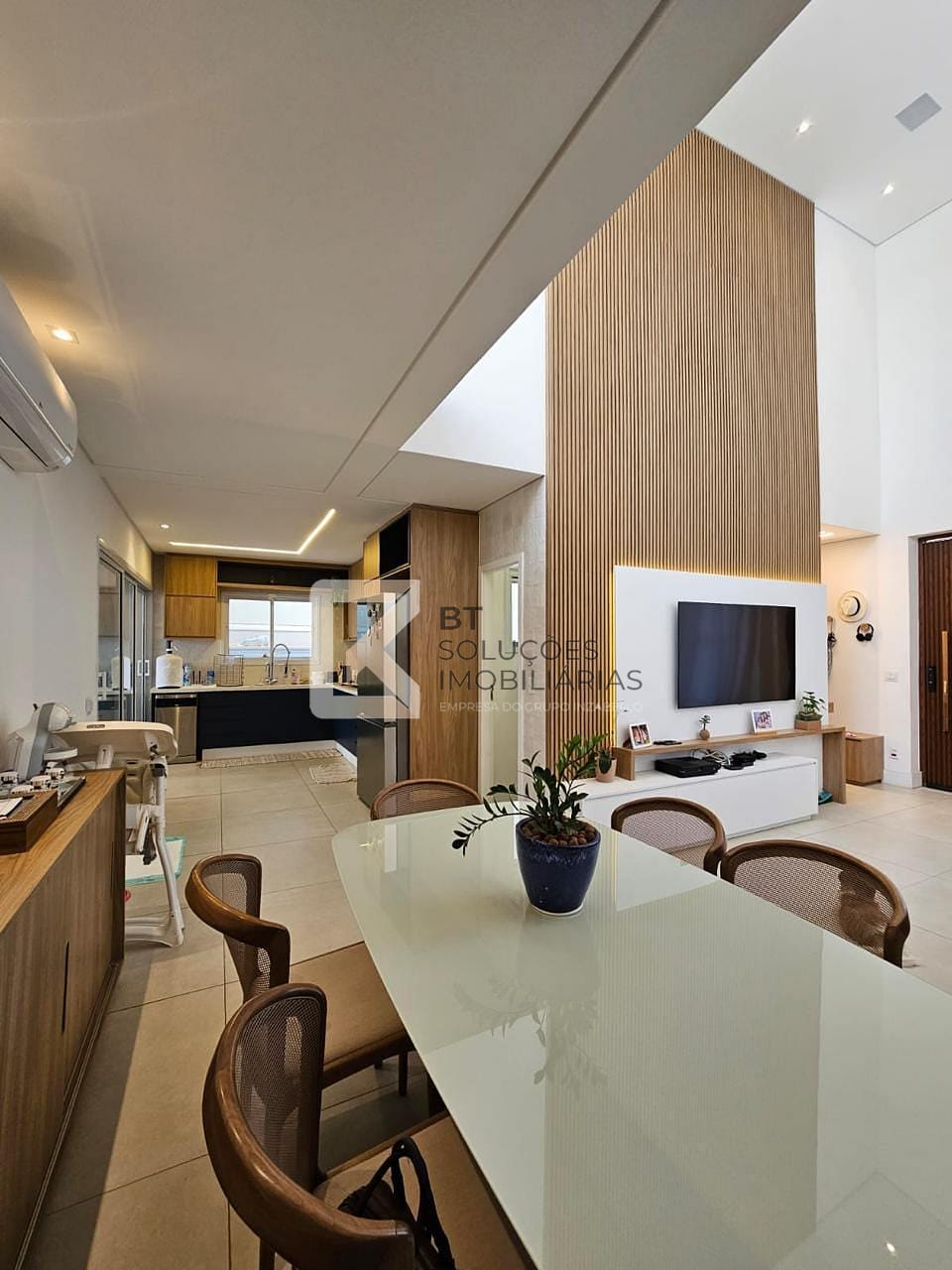 Sala 02 ambientes em conceito aberto com pé direito duplo