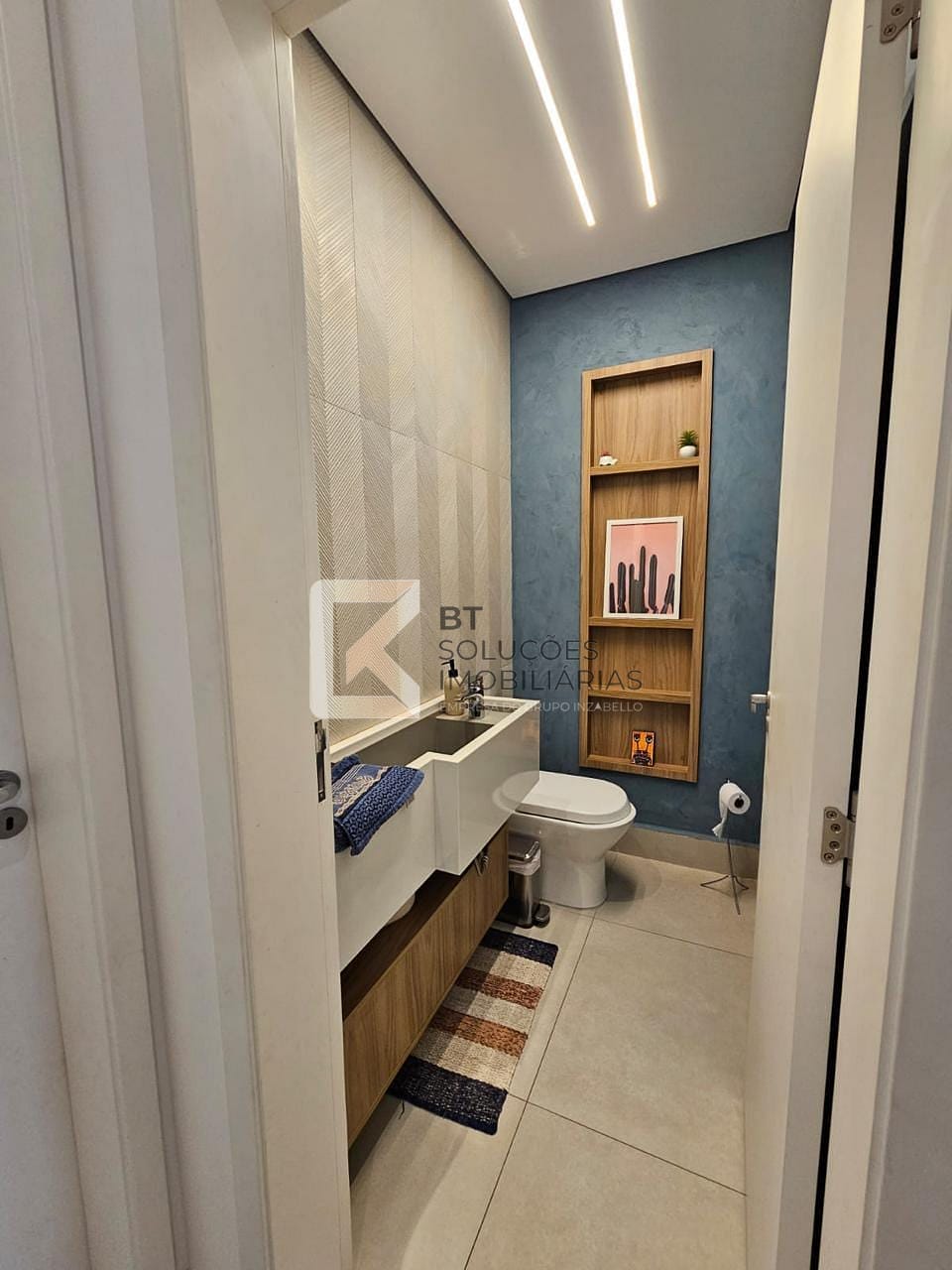 W.C social com planejados, espelho e box