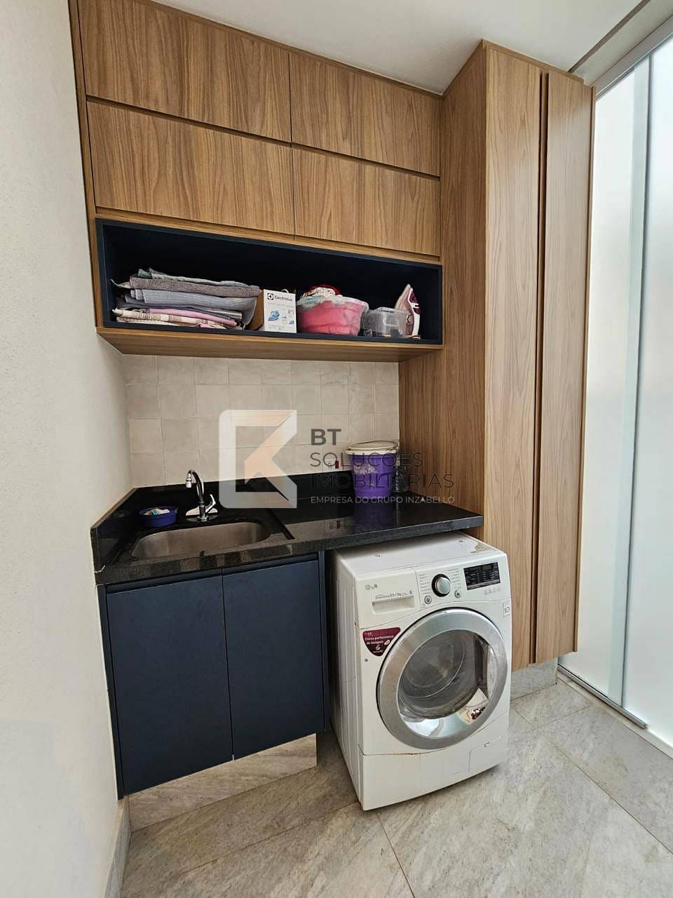 Área de serviço fechada e com móveis planejados
