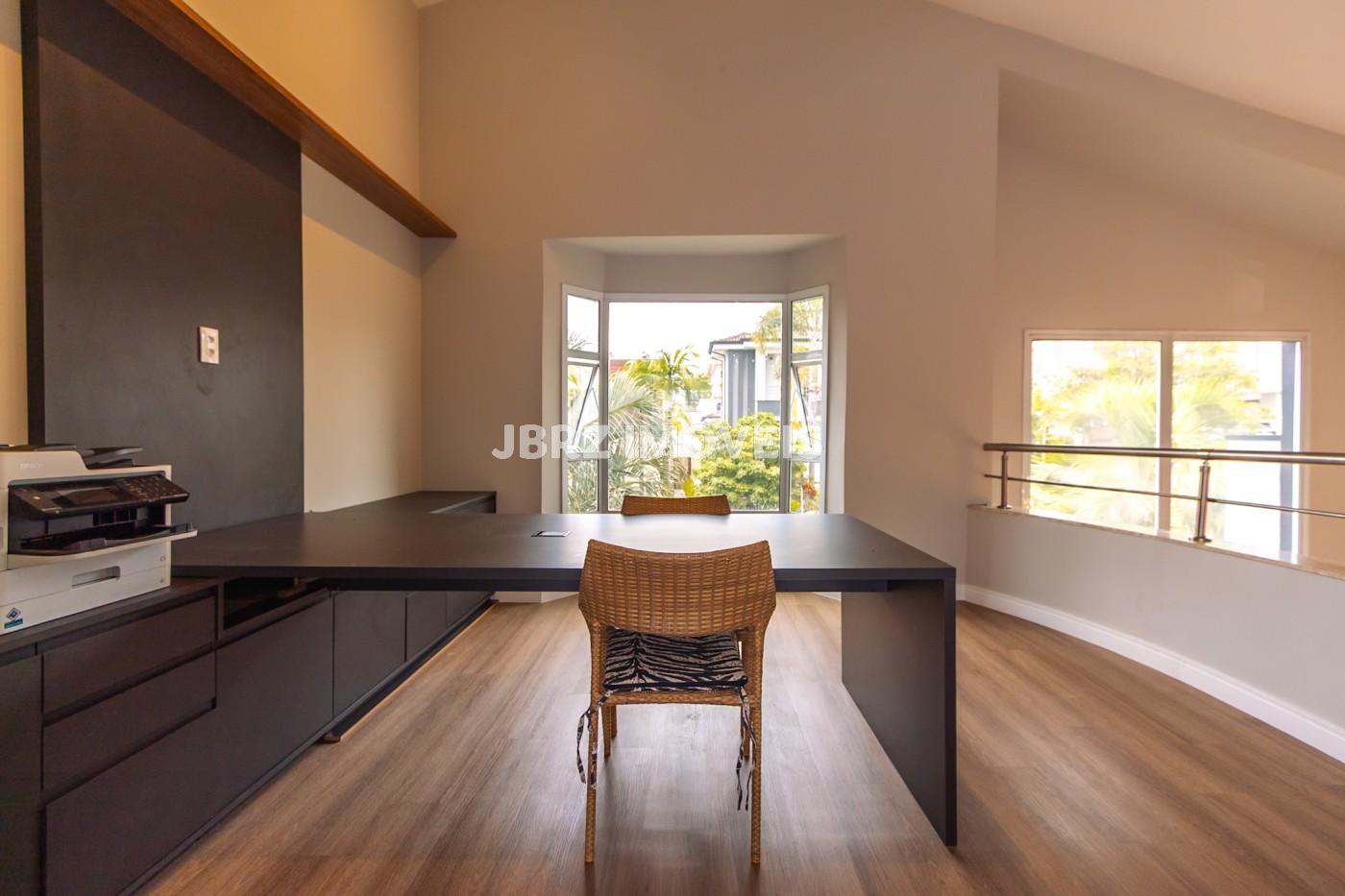 Home Office amplo em um mezanino com vista para a área social