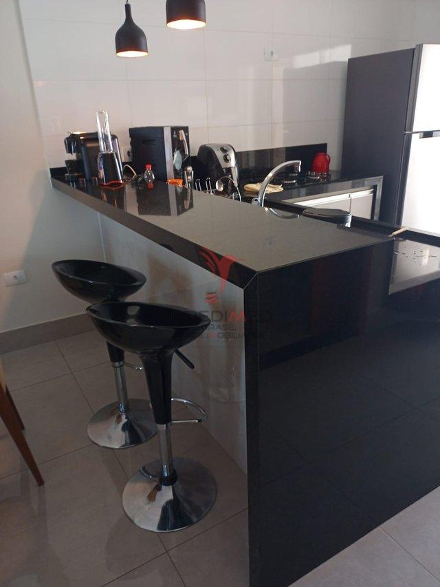 •Cozinha planejada com forno embutido, cooktop e bancada em granito
