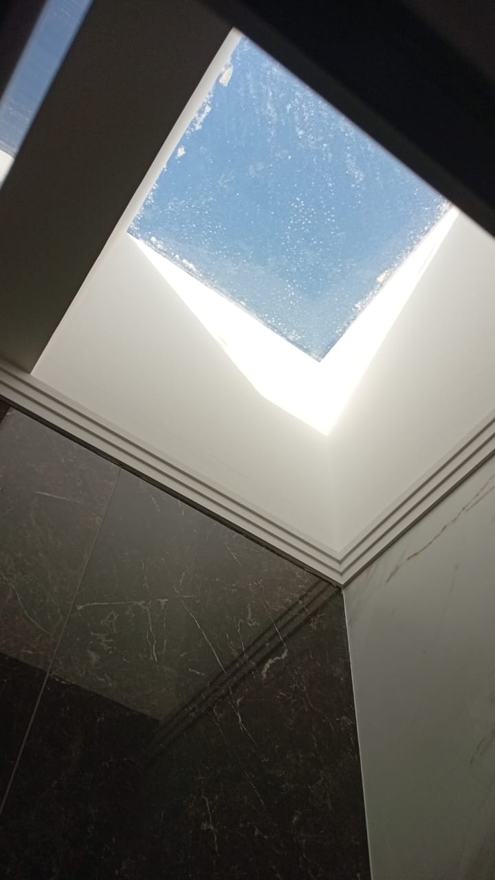 Acabamento em molduras em gesso em todo teto, piso em porcelanato. Aquecimento solar pressurizado.