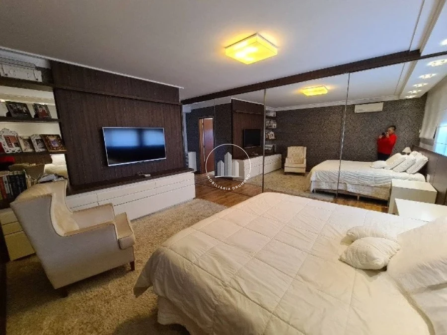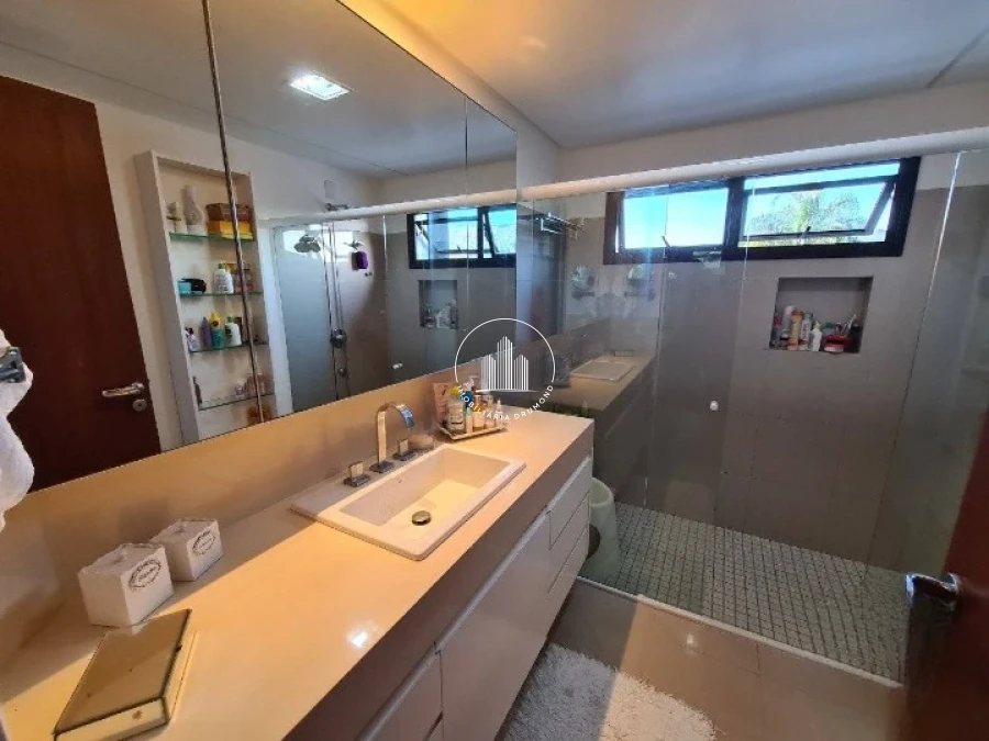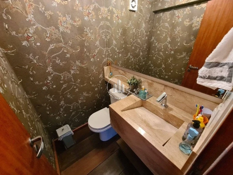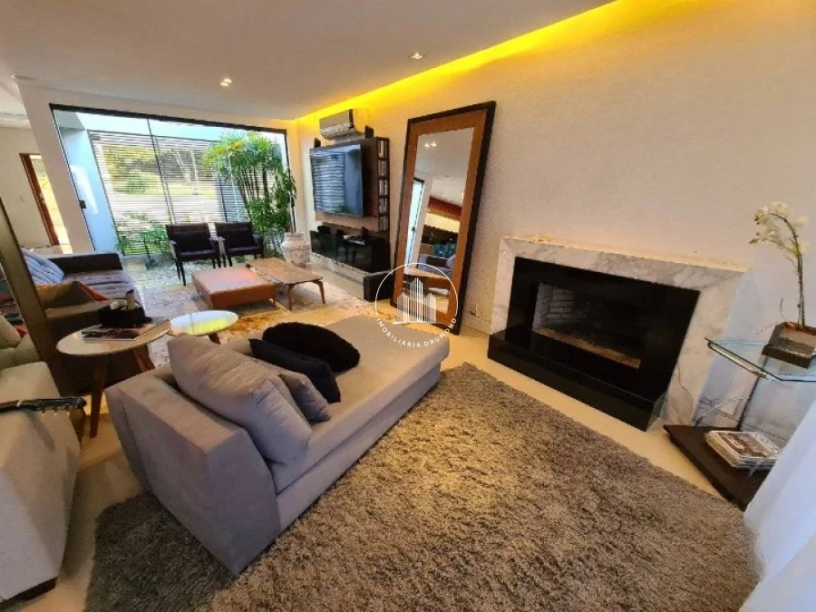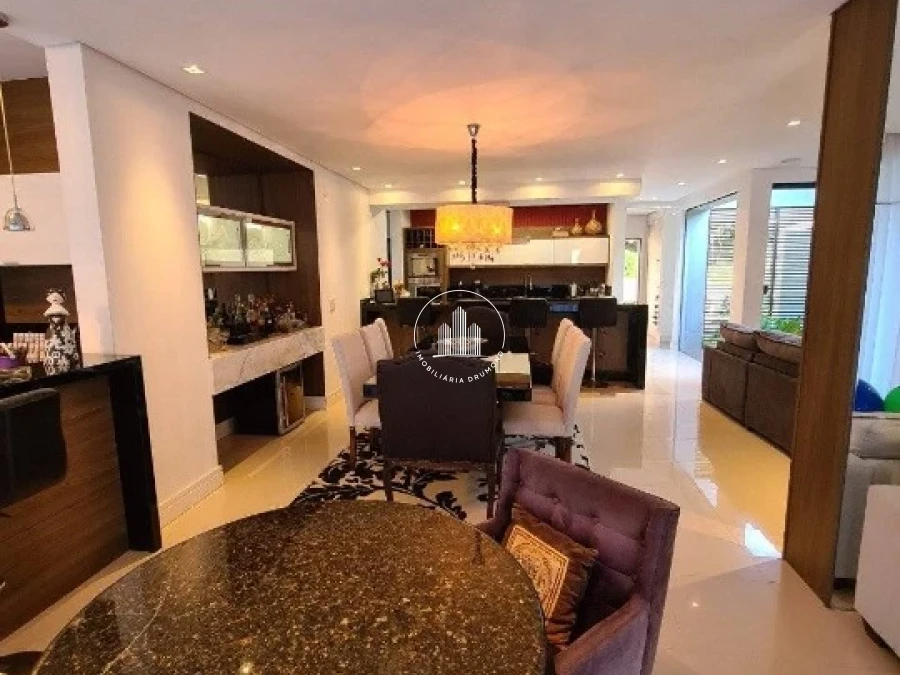 No primeiro pavimento, a casa oferece um amplo living, com sala de estar e TV — ideal para receber visitas e aproveitar momentos de convivência. Um charmoso jardim de inverno conecta o interior da residência à natureza.