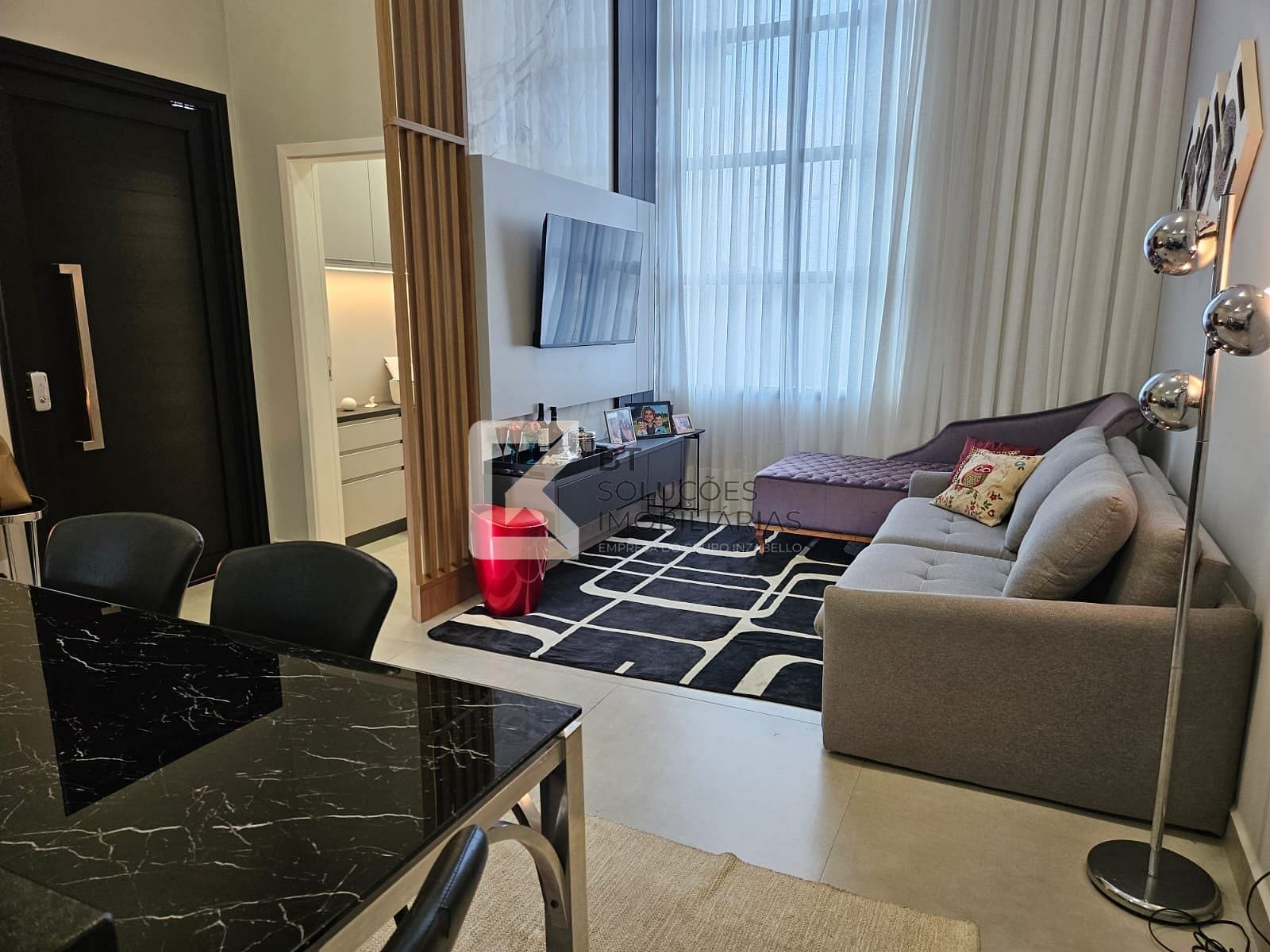 Sala ampla integrada com cozinha funcional planejada