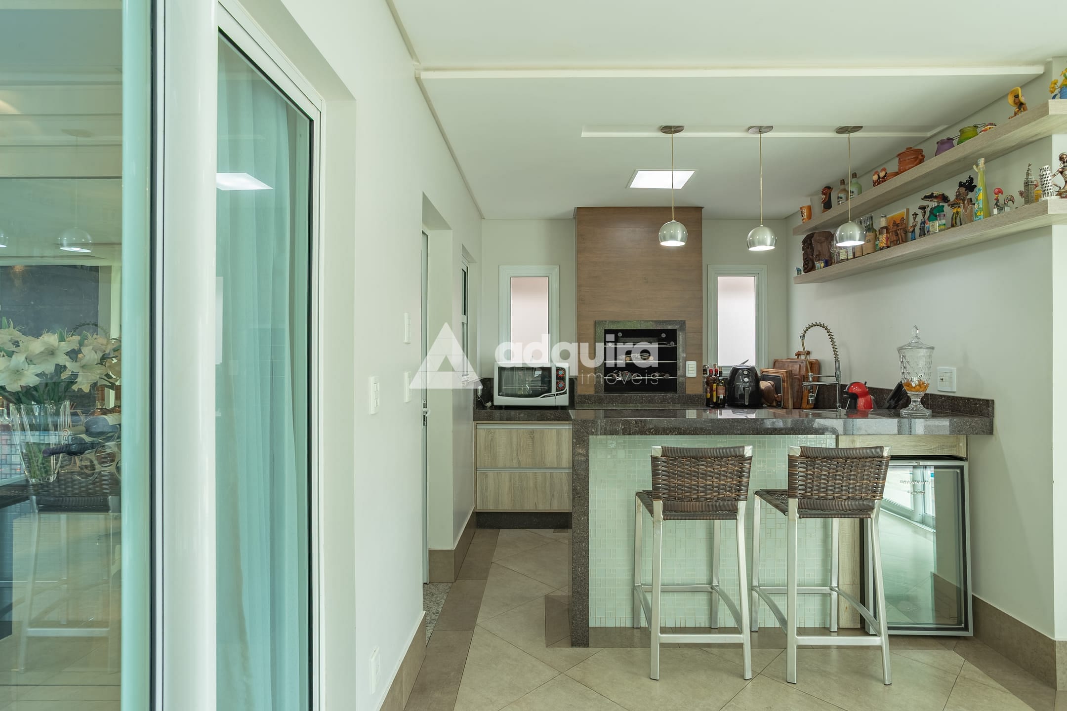Espaço gourmet com banheiro completo