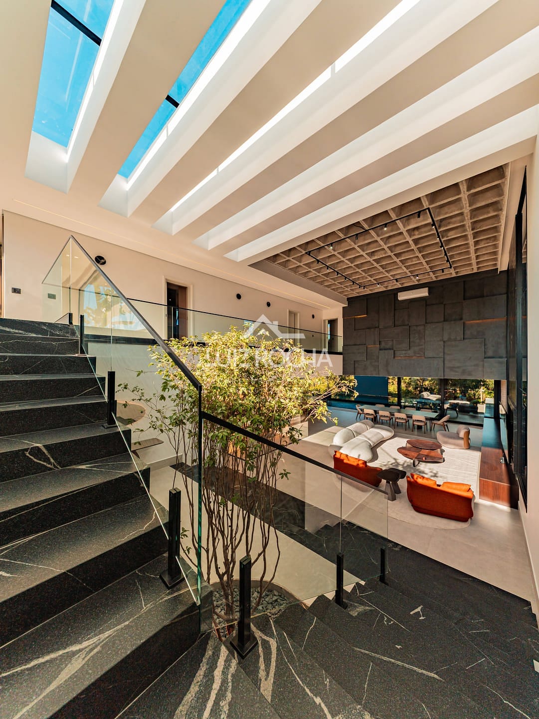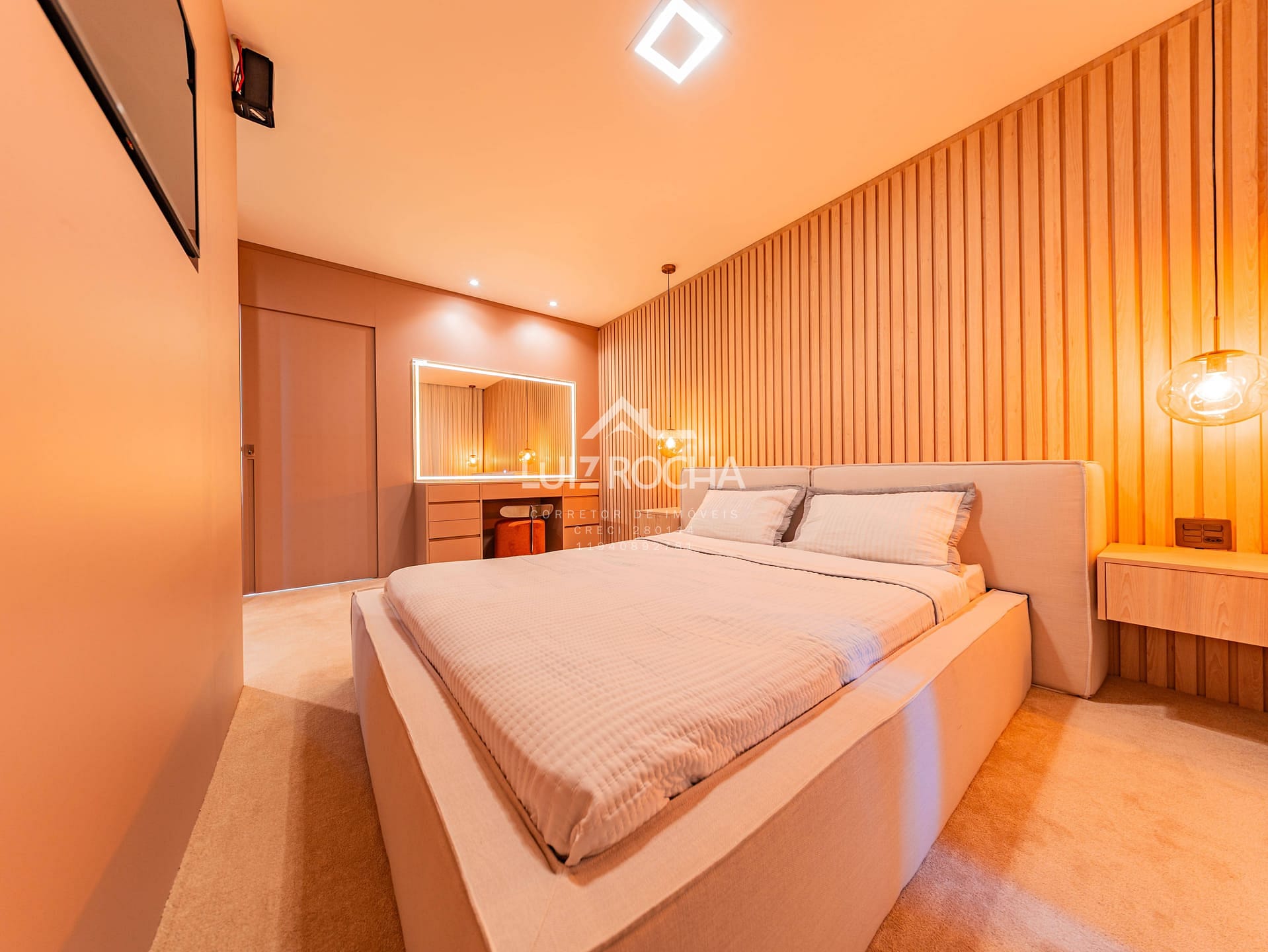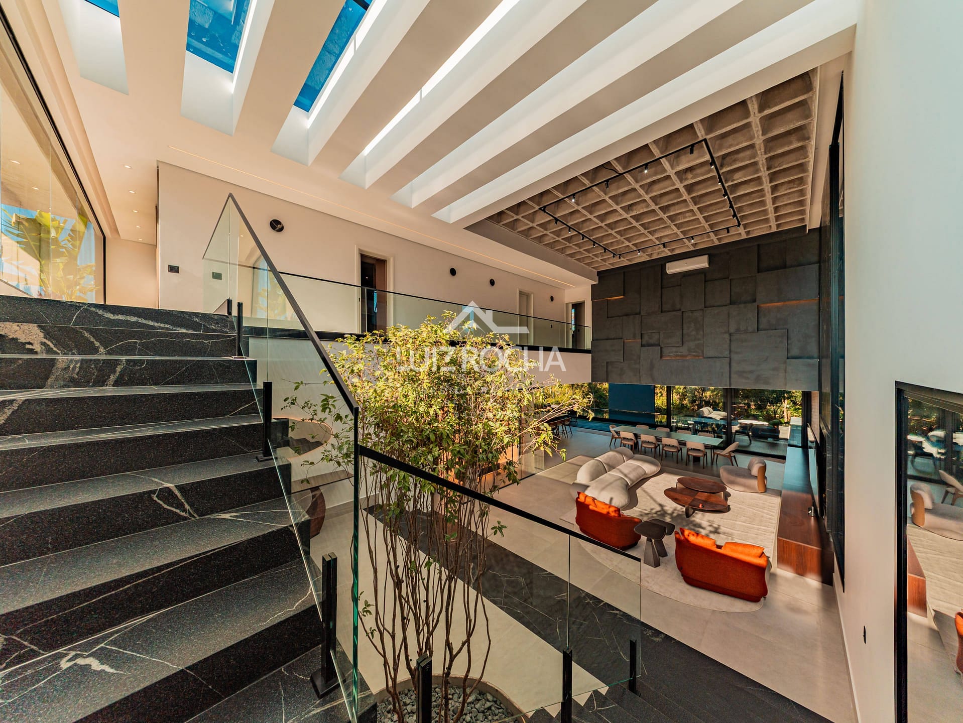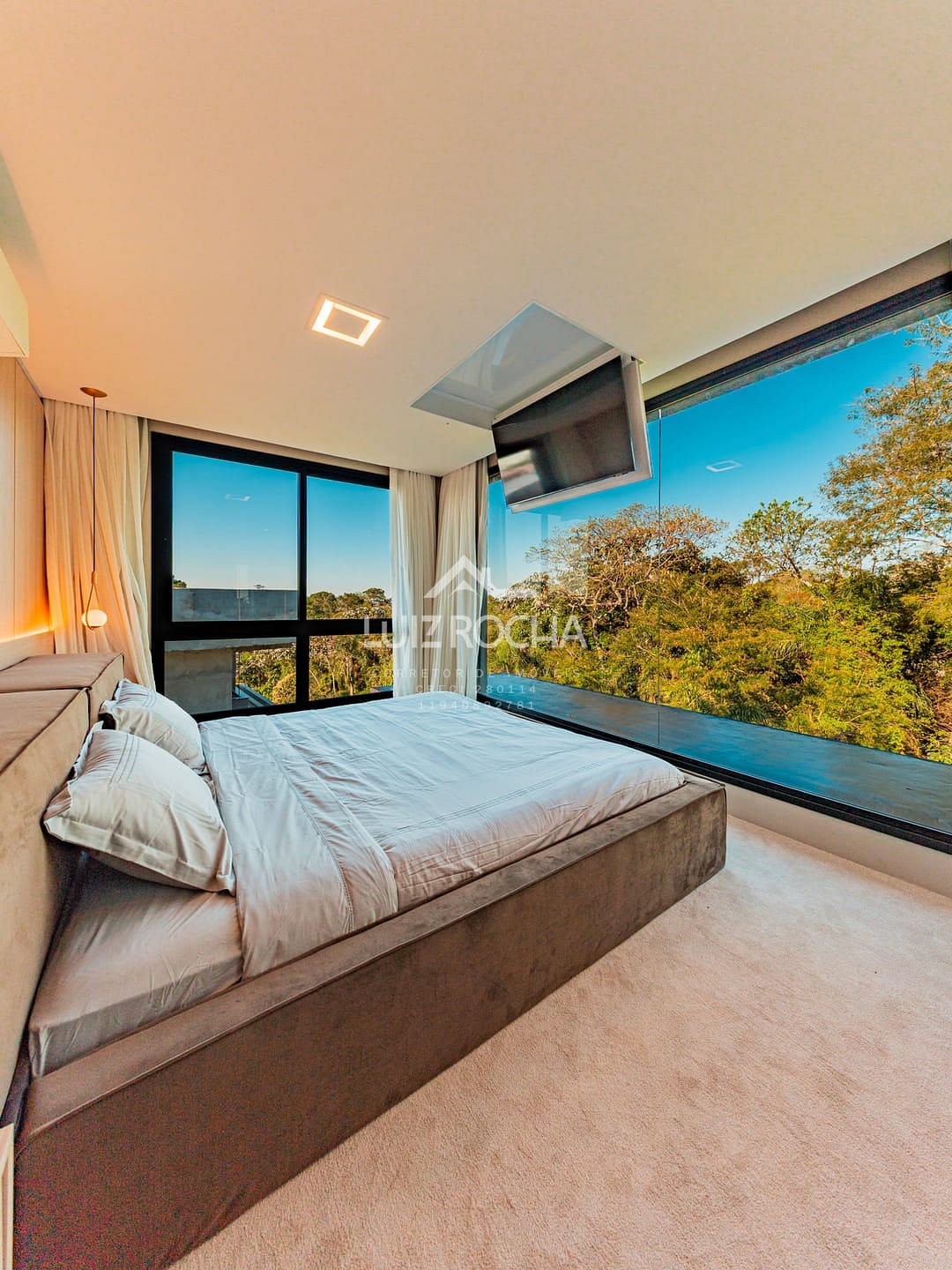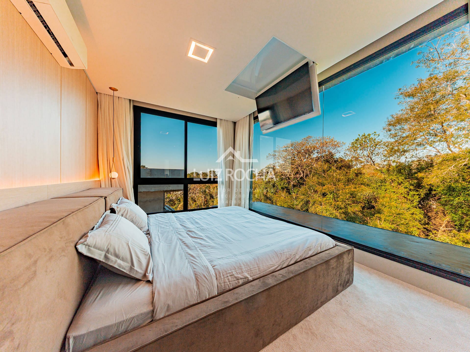 O imóvel dispõe de hall de entrada com jabuticabeira, sala para 3 ambientes com pé direito duplo, toda planejada e mobiliada, cozinha com área gourmet, mobília solta de primeira, área de serviço, lavabo todo em marcenaria com pedra inox, acabamentos de primeira, 3 suítes repletas de planejados, suíte master com closet e um banheiro com vista pra reserva, roupeiro, piscina revestida com prainha com vista para reserva, fire place, telão de Led e garagem para 6 vagas, sendo 2 cobertas, com área total de 502,00 m², sendo 360,00 m² construídos.