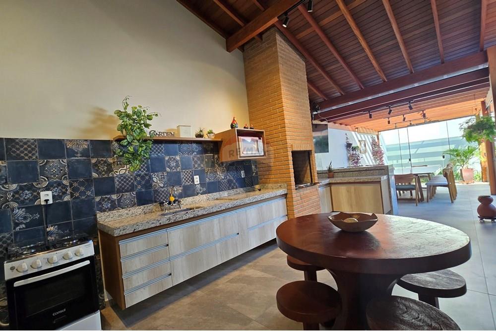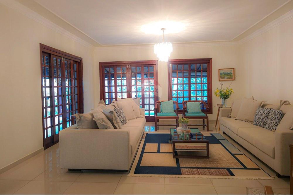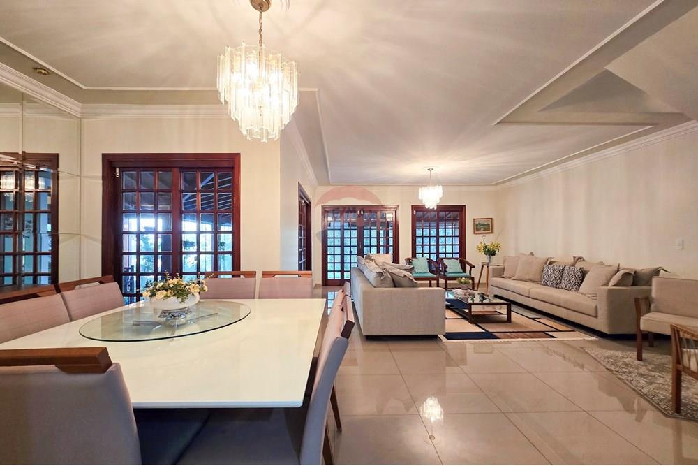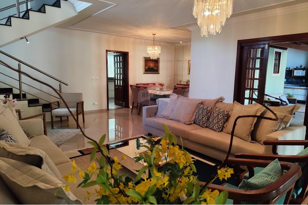 A casa conta com 3 suítes amplas, incluindo uma suíte master com closet e banheira de hidromassagem, além de espaços integrados e bem distribuídos: salas de estar, jantar e TV, escritório, lavabo, ampla área de serviço, quarto e banheiro de apoio, além de 3 despensas.