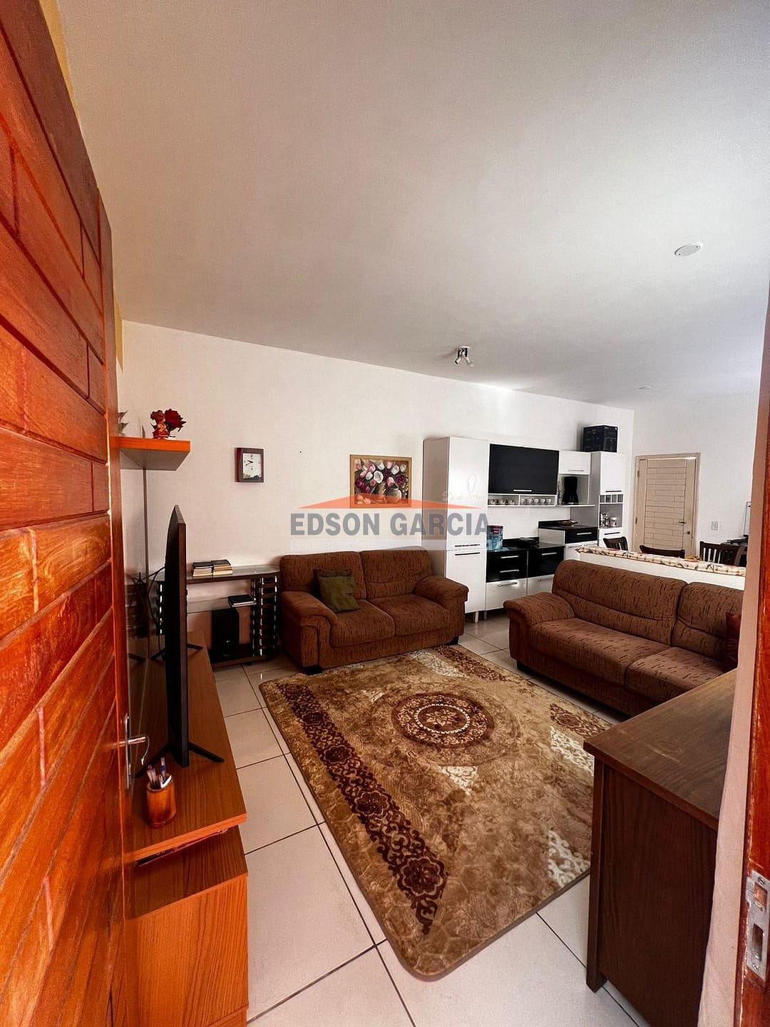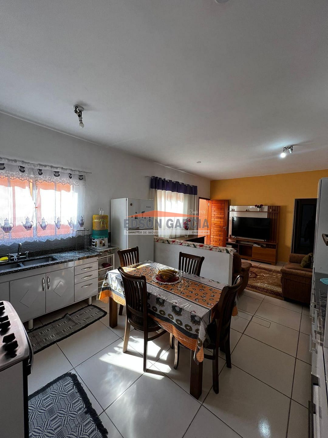 Sala dois ambientes, cozinha, sacada e lavanderia coberta.