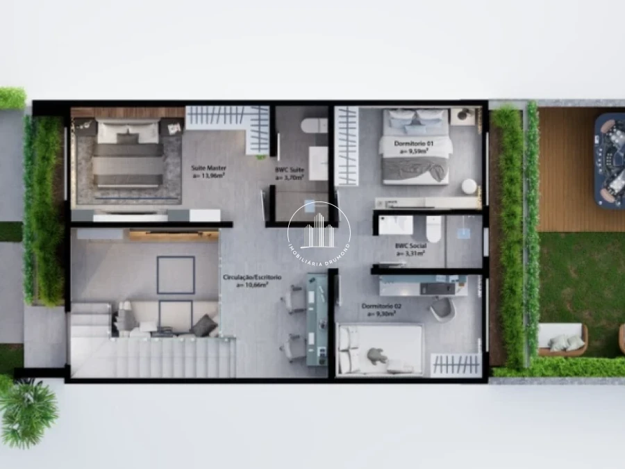 3 dormitórios (1 suíte), escritório, alto padrão de acabamento, interruptores inteligentes compatíveis com Alexa, jacuzzi no jardim e muito mais. Condomínio completo com prainha artificial, piscina, quadras, salão de festas e portaria 24h. combinando a tranquilidade do bairro com a proximidade dos principais centros urbanos da Grande Florianópolis.
