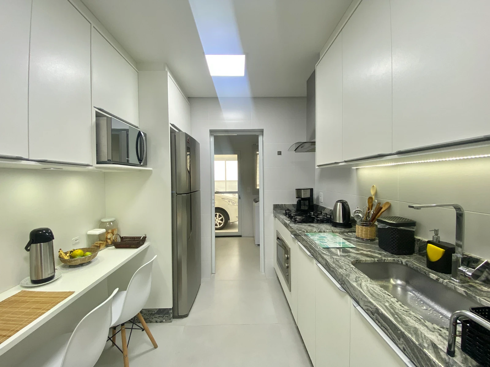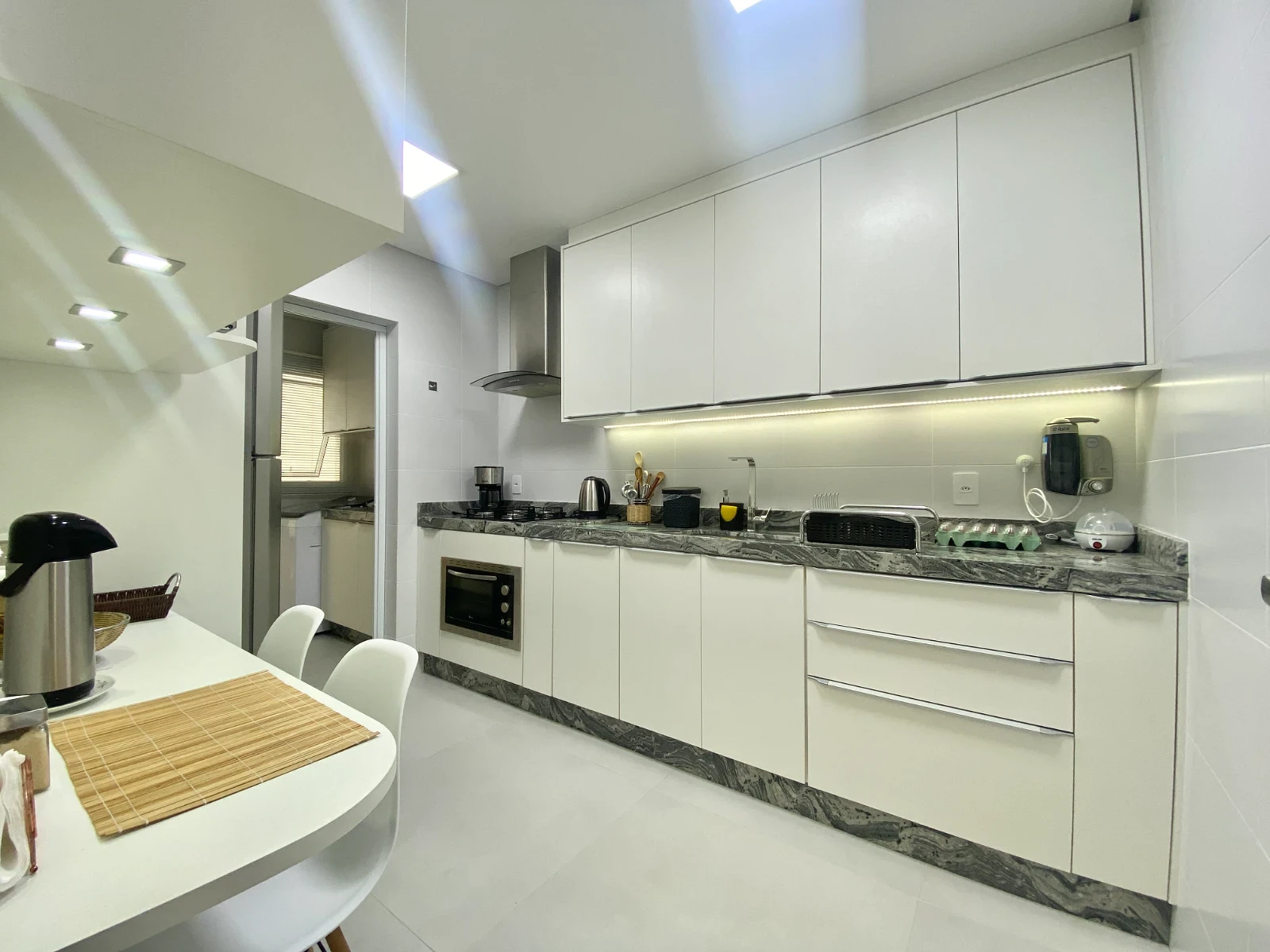 Cozinha completa com móveis planejados;