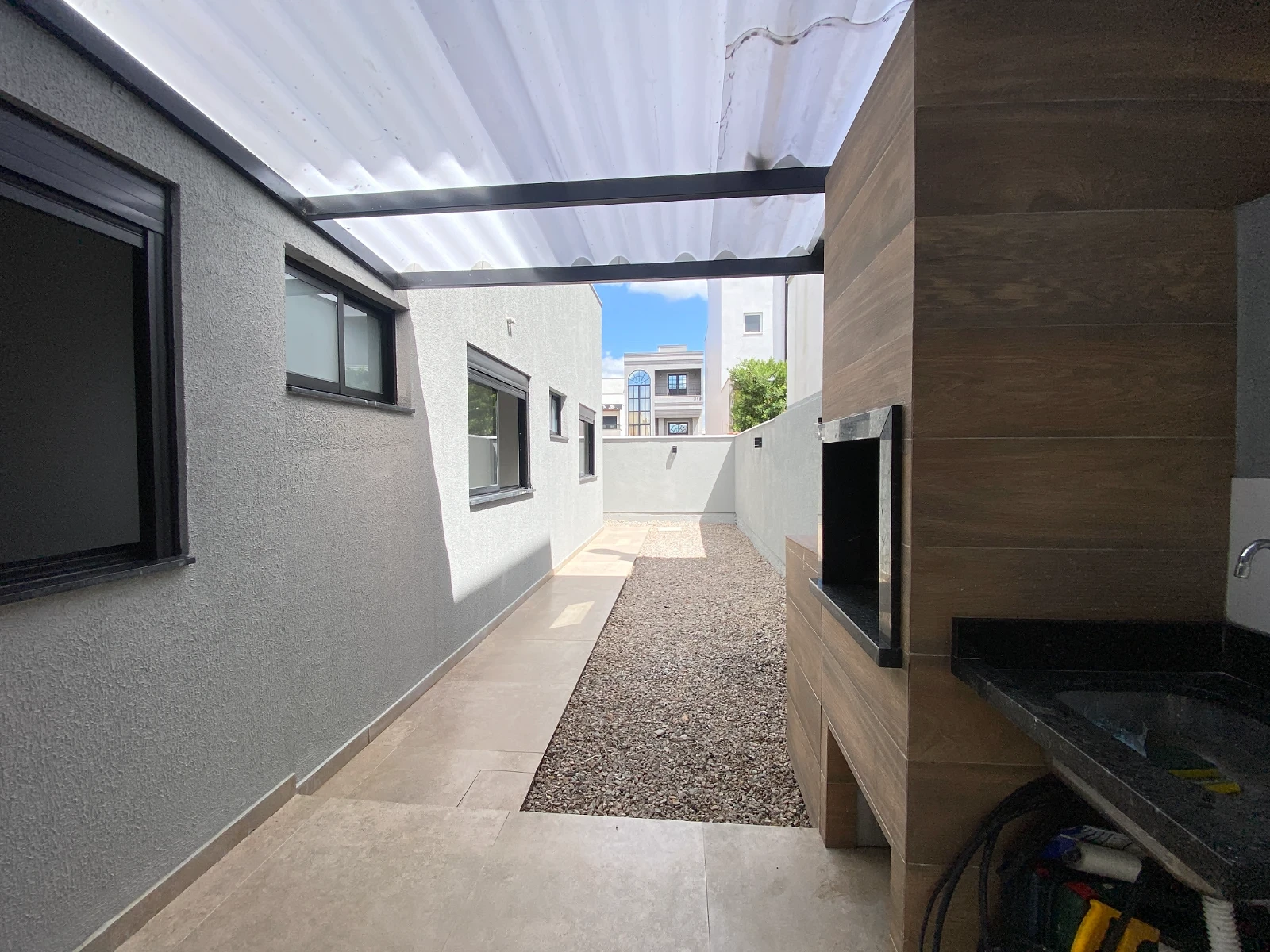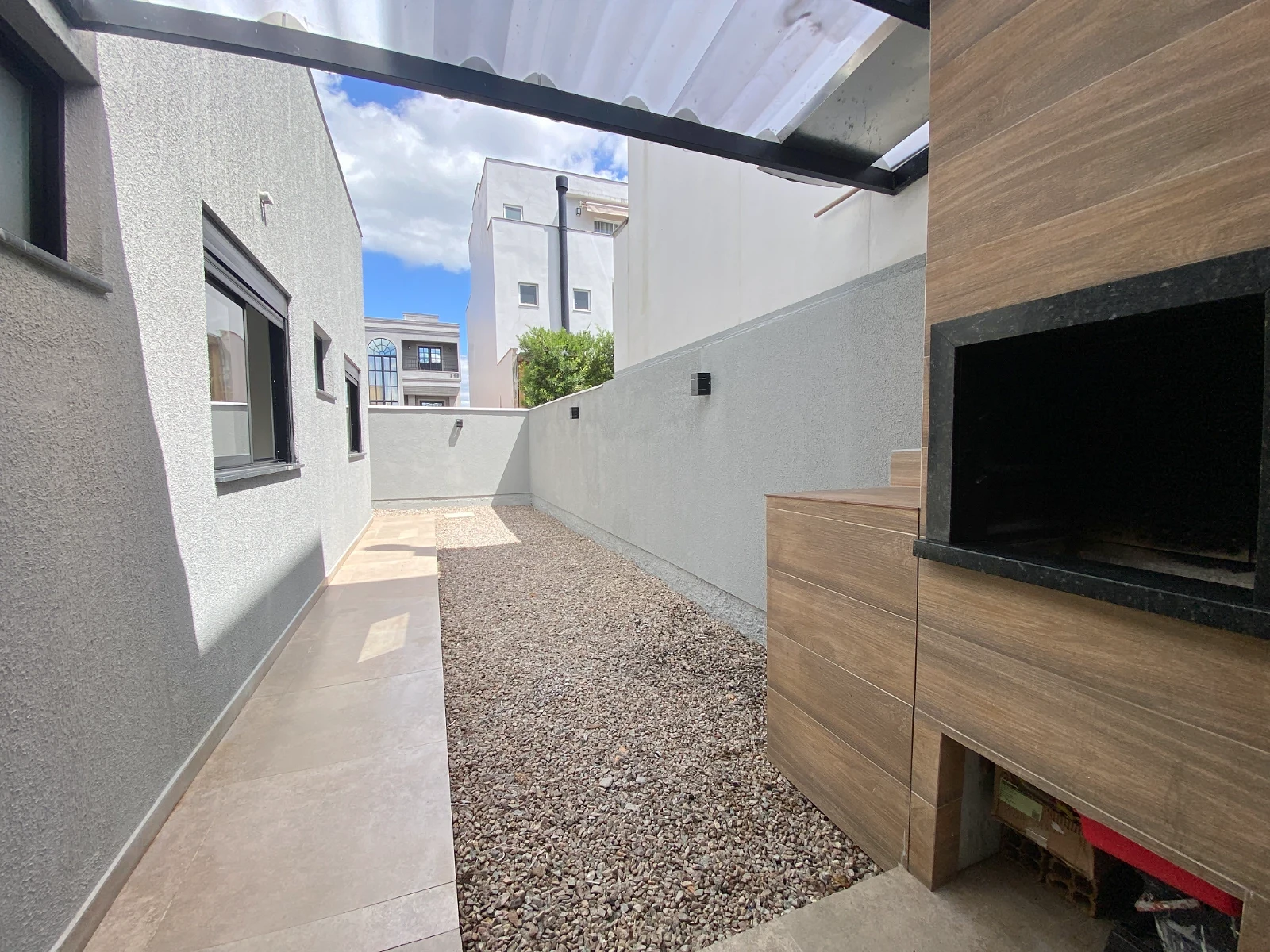 Destaque para a área externa privativa, com churrasqueira e espaço lateral, ideal para jardim, espaço pet ou área de lazer, garantindo melhor ventilação e privacidade.