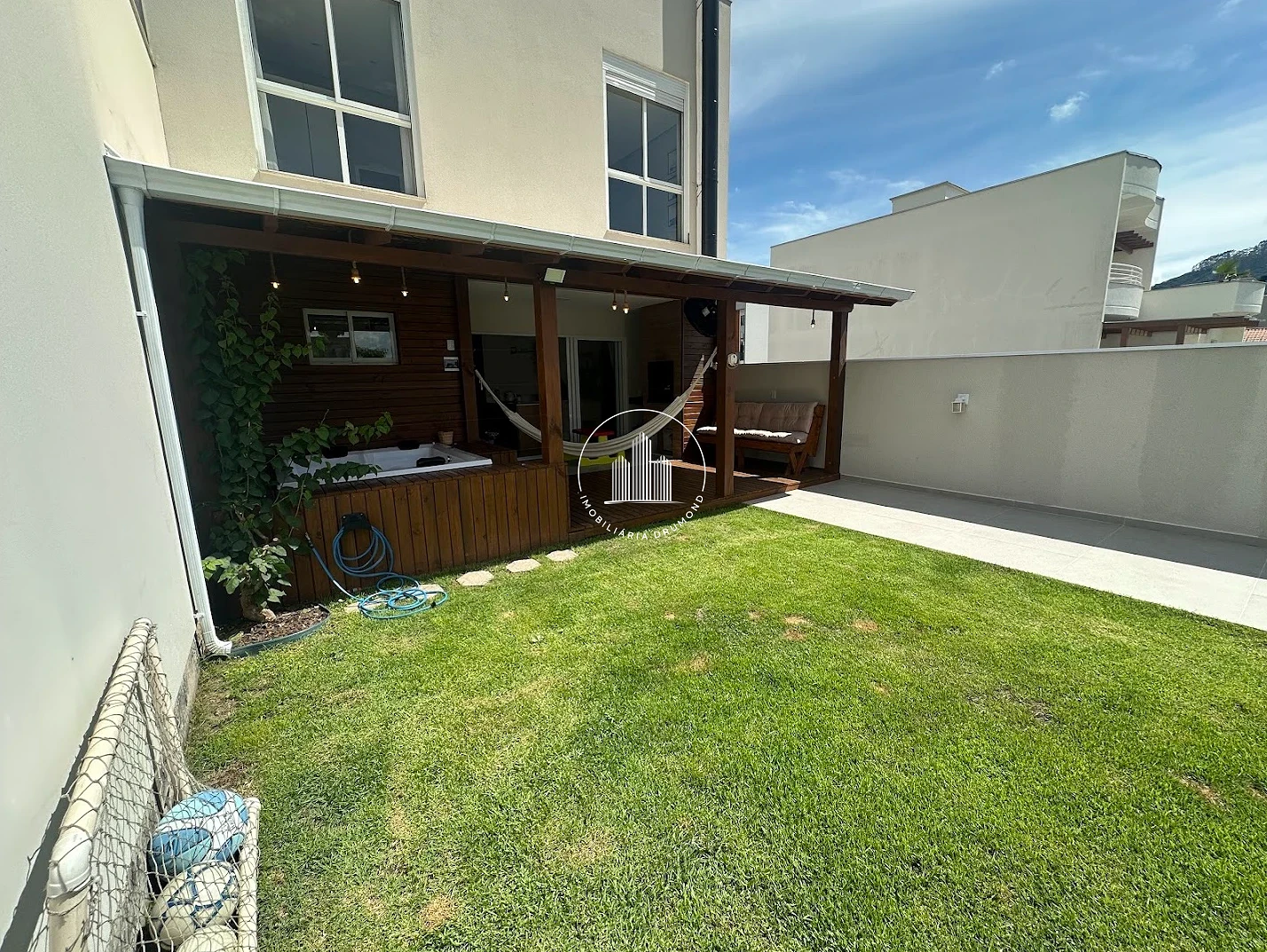 O condomínio fechado conta com infraestrutura completa incluindo piscina, quadra poliesportiva e salão de festas. Sistema de segurança 24h com câmeras de monitoramento garante tranquilidade para toda família. O empreendimento oferece área de lazer completa para adultos e crianças em ambiente seguro e bem cuidado.