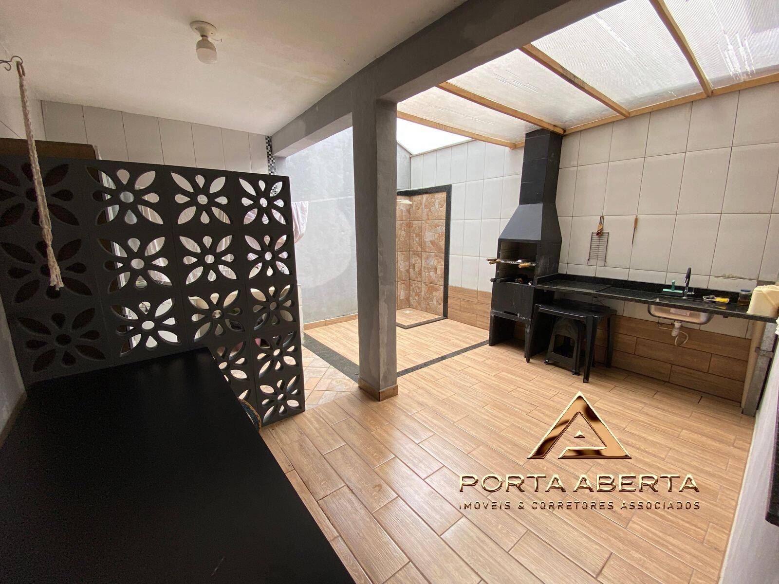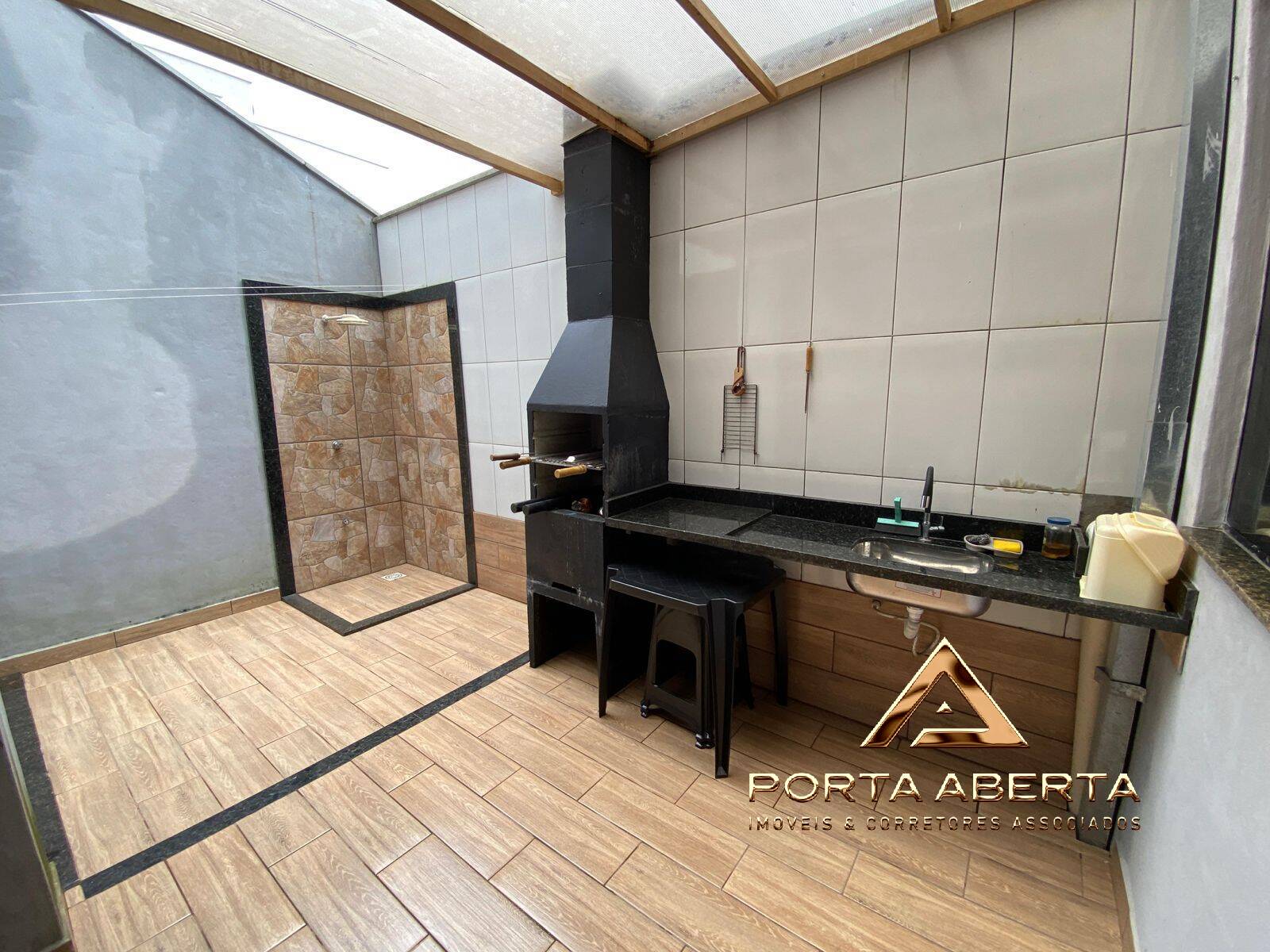 Área gourmet com churrasqueira e ducha;