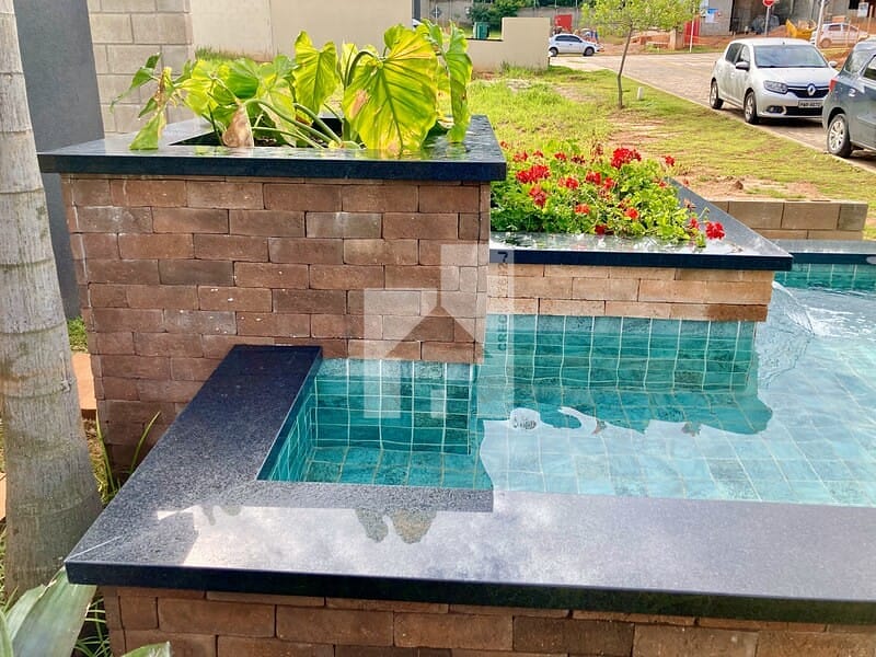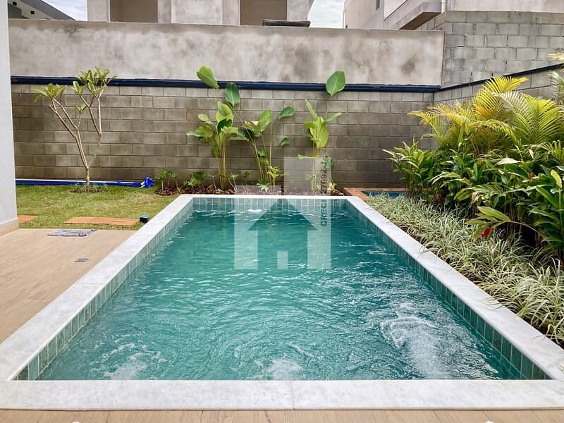 Piscina, garagem para dois autos.