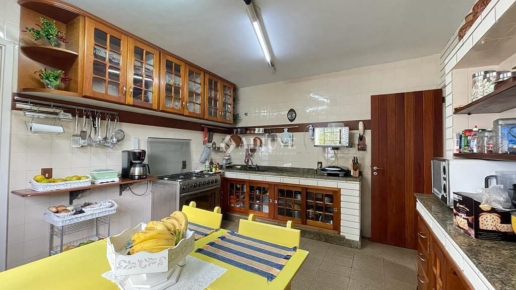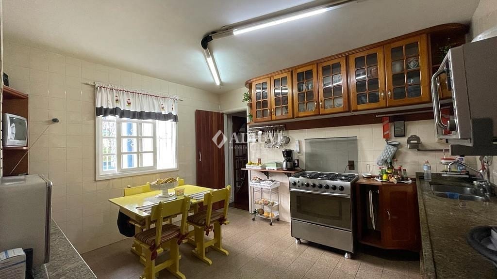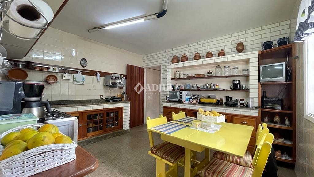 Casa no primeiro pavimento: com sala de estar com bar com lareira. Segundo pavimento: sala de jantar com lareira e sacada, quarto, banheiro social, cozinha com armários planejados, área de serviço e banheiro. Terceiro pavimentos: duas suítes com closet e uma com varanda fechada e lareira. Espaço com fogão a lenha e forno com banheiro e quarto. Ducha.